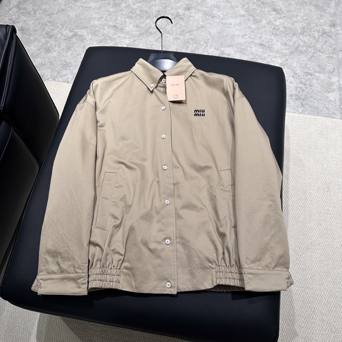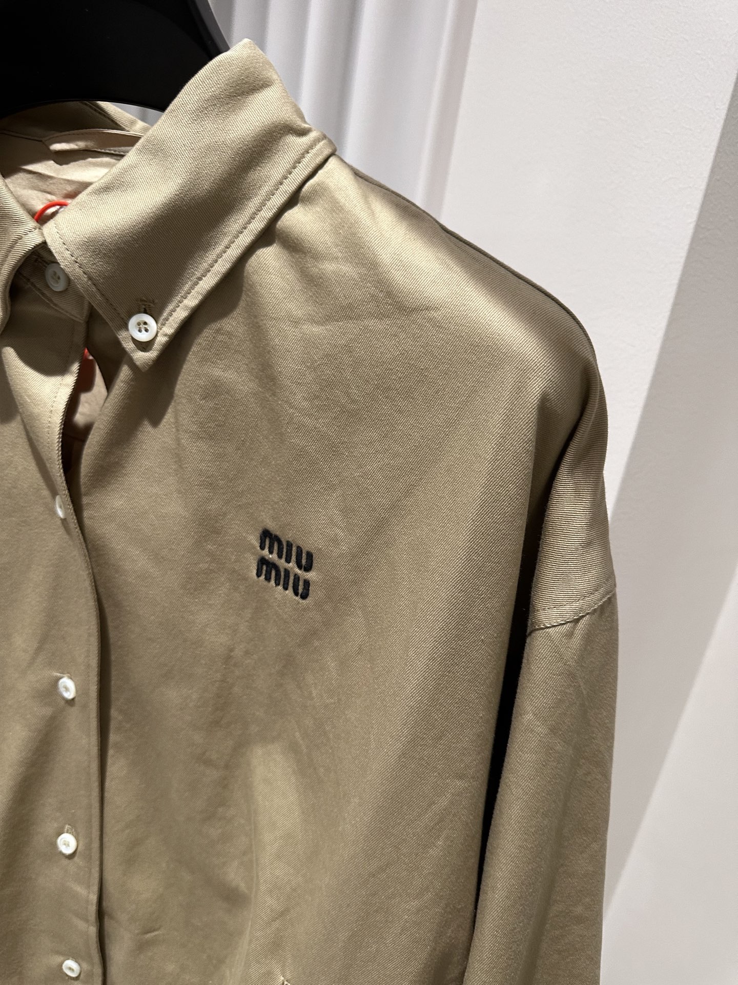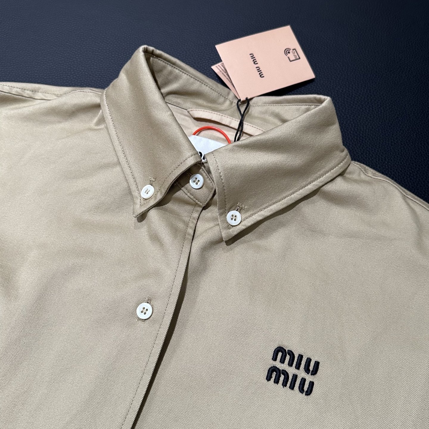 这款衣服是AAAAA 1:1 质量 (非常棒). 使用了和原版一模一样的材料. 商标部分也保持了和缪缪/Miu Miu一样. 图片拍摄是实物衣服拍摄, 您所收到的实物保证和我们图片一模一样.
