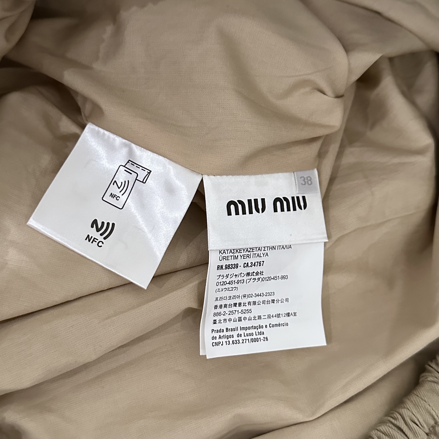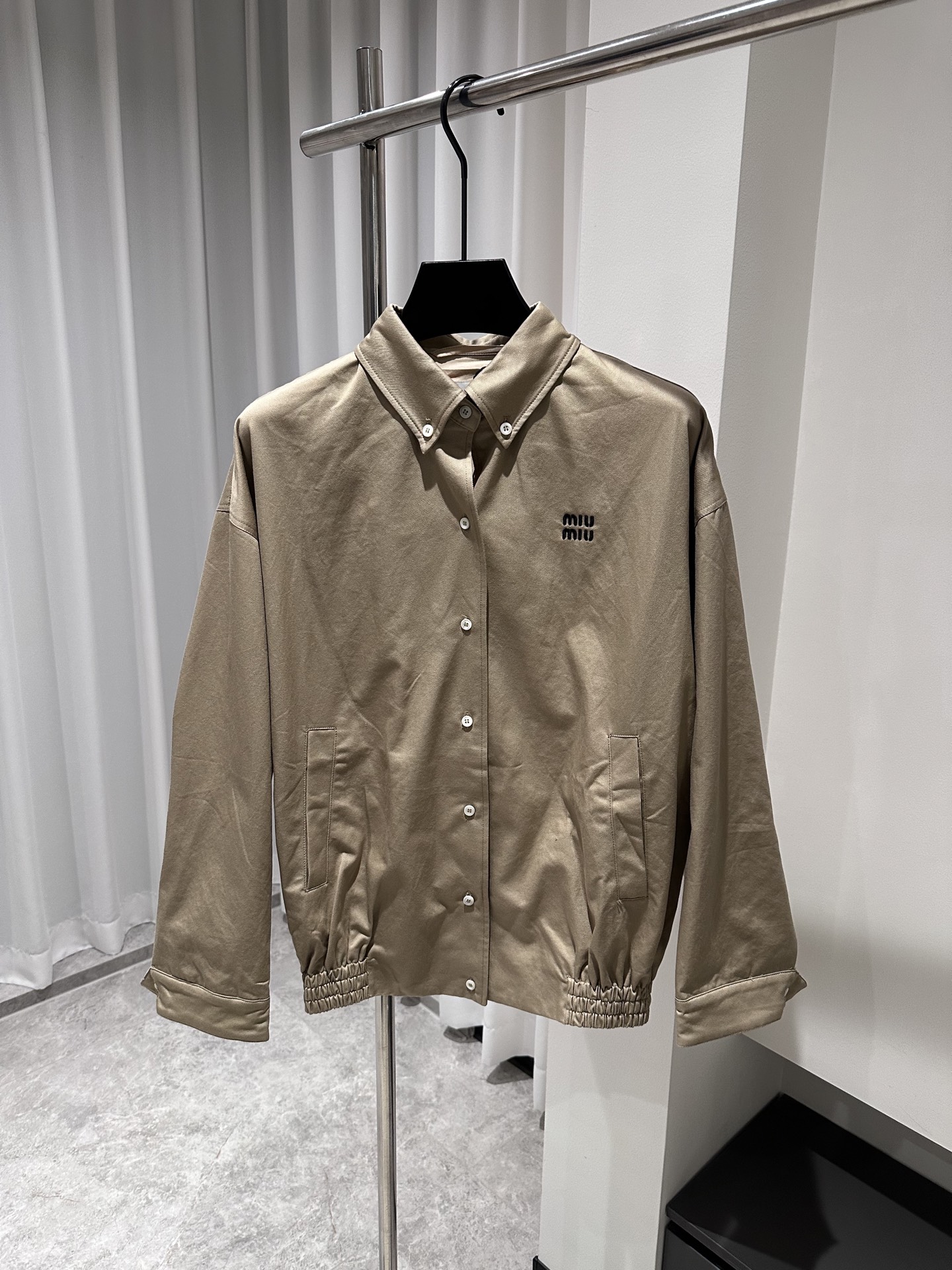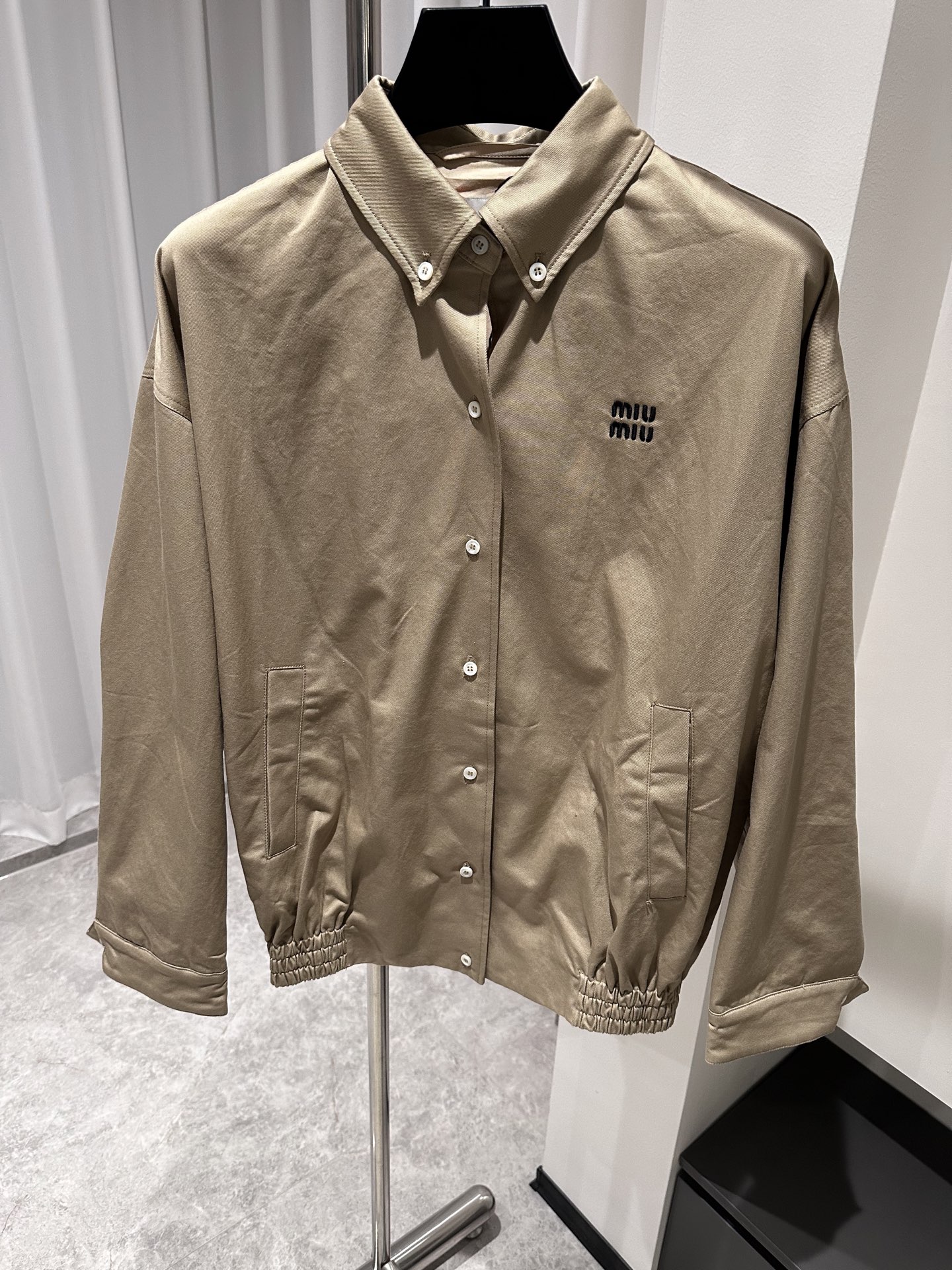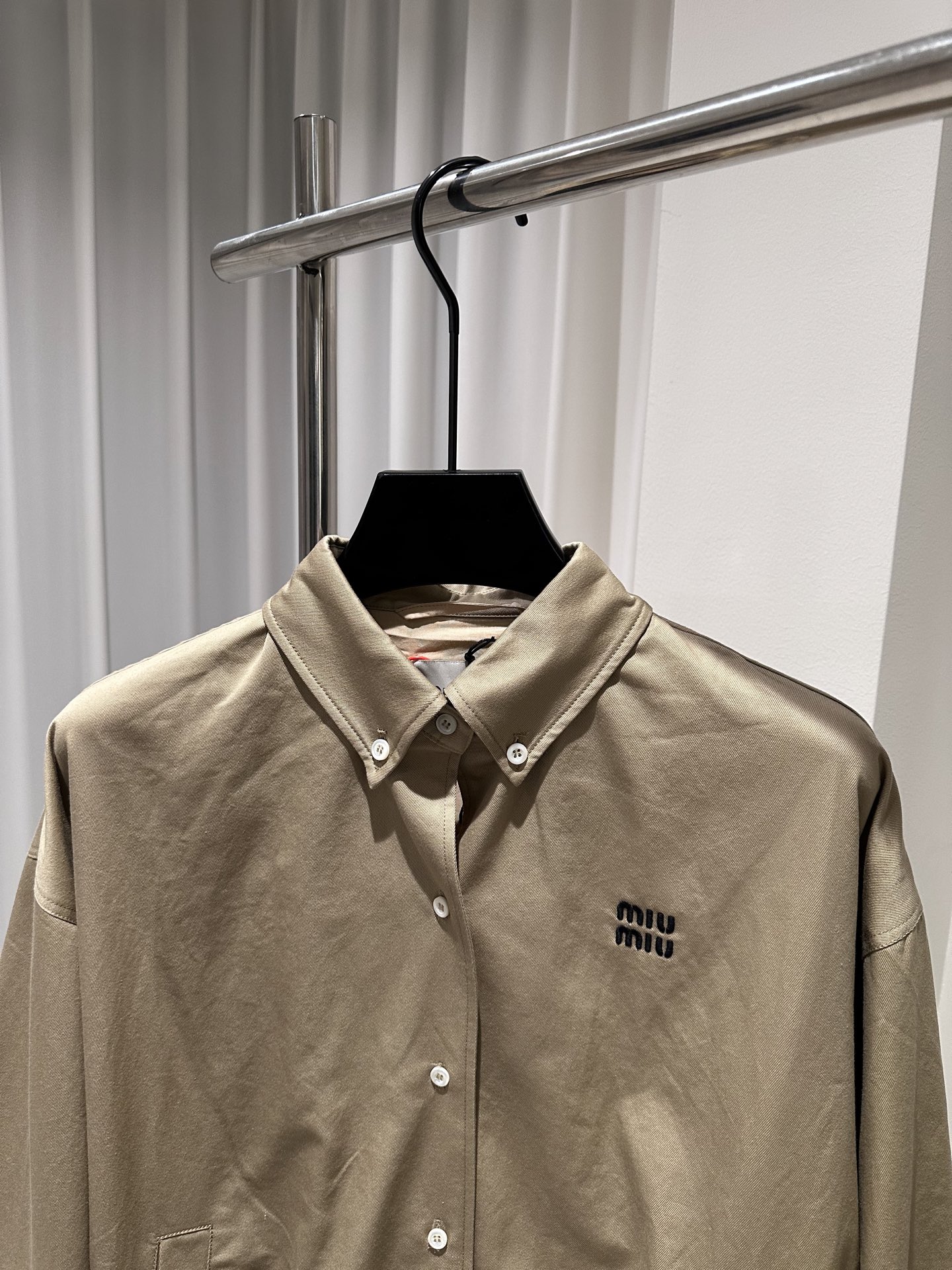 这款衣服是AAAAA 1:1 质量 (非常棒). 使用了和原版一模一样的材料. 商标部分也保持了和缪缪/Miu Miu一样. 图片拍摄是实物衣服拍摄, 您所收到的实物保证和我们图片一模一样.