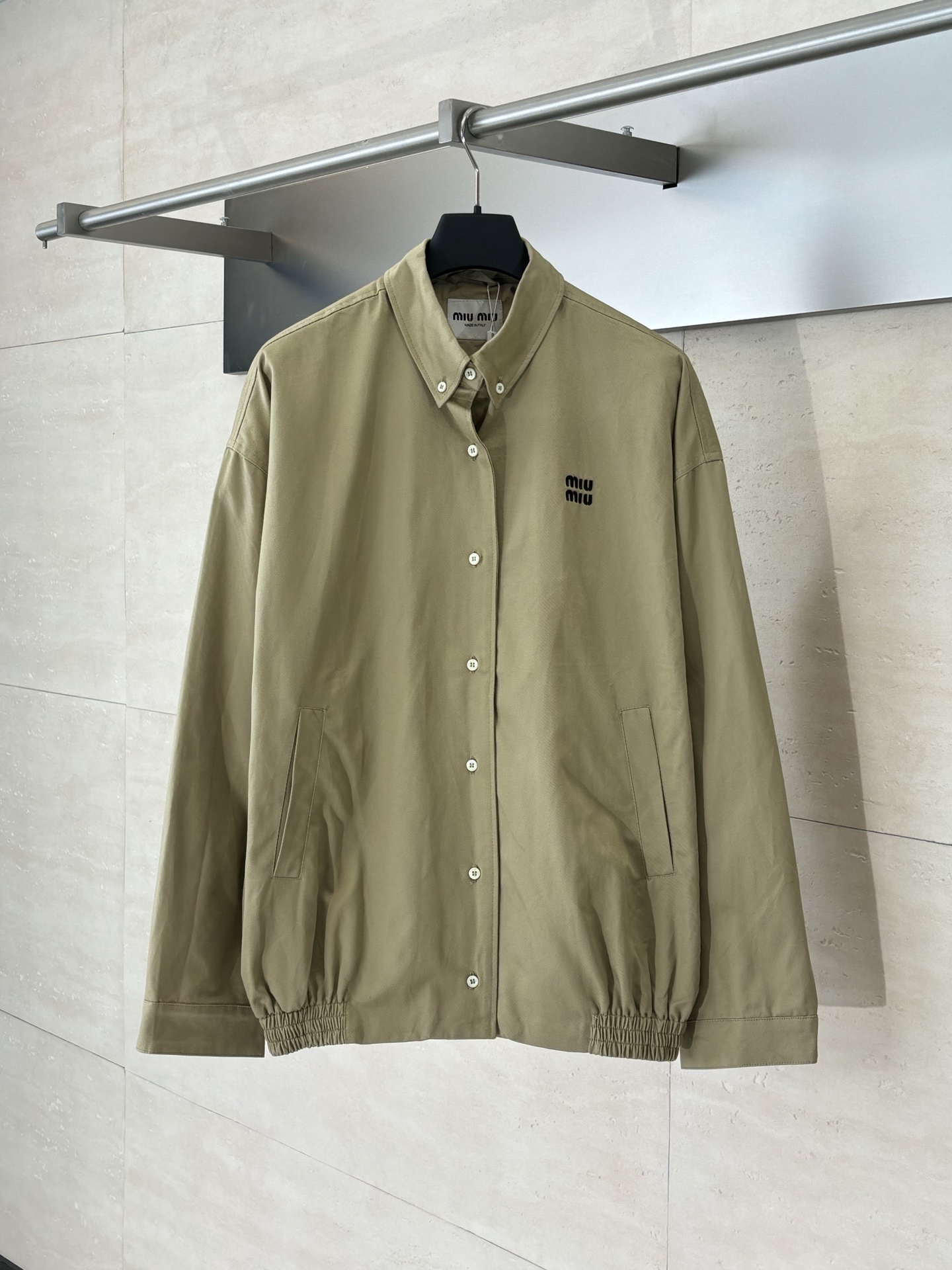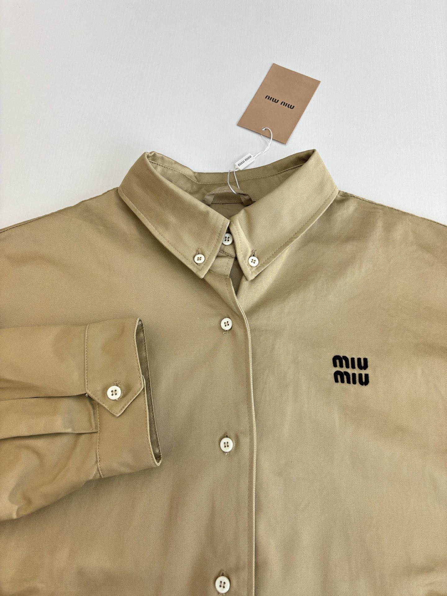 这款衣服是AAAAA 1:1 质量 (非常棒). 使用了和原版一模一样的材料. 商标部分也保持了和缪缪/Miu Miu一样. 图片拍摄是实物衣服拍摄, 您所收到的实物保证和我们图片一模一样.
