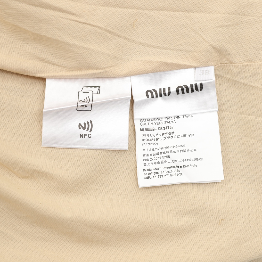 这款衣服是AAAAA 1:1 质量 (非常棒). 使用了和原版一模一样的材料. 商标部分也保持了和缪缪/Miu Miu一样. 图片拍摄是实物衣服拍摄, 您所收到的实物保证和我们图片一模一样.