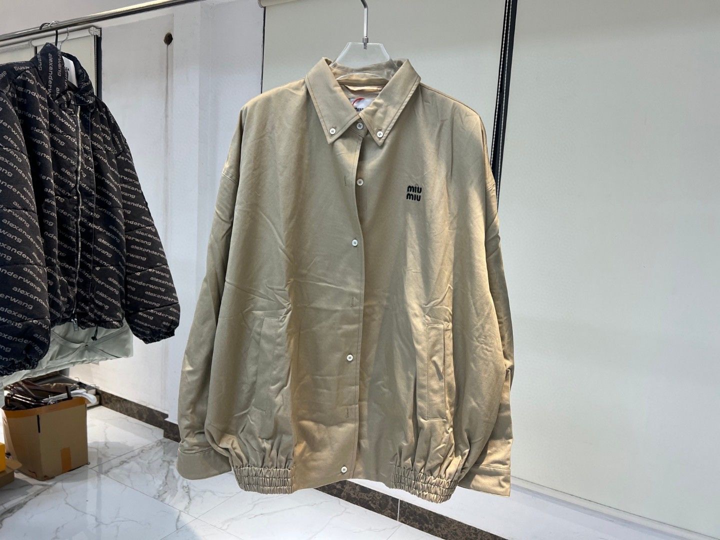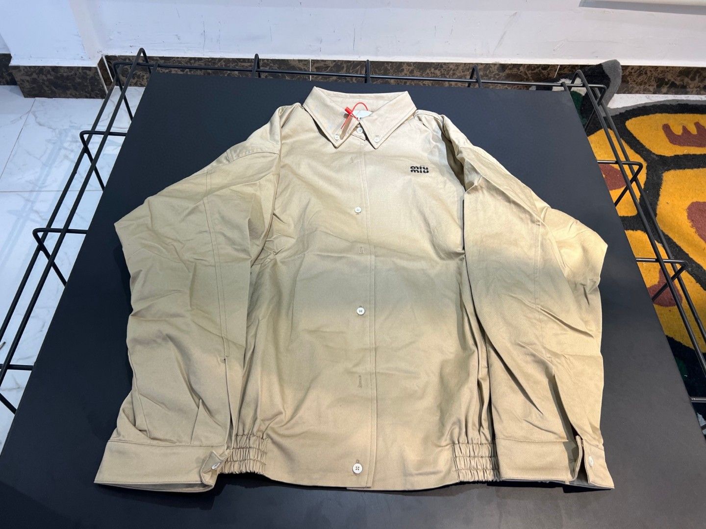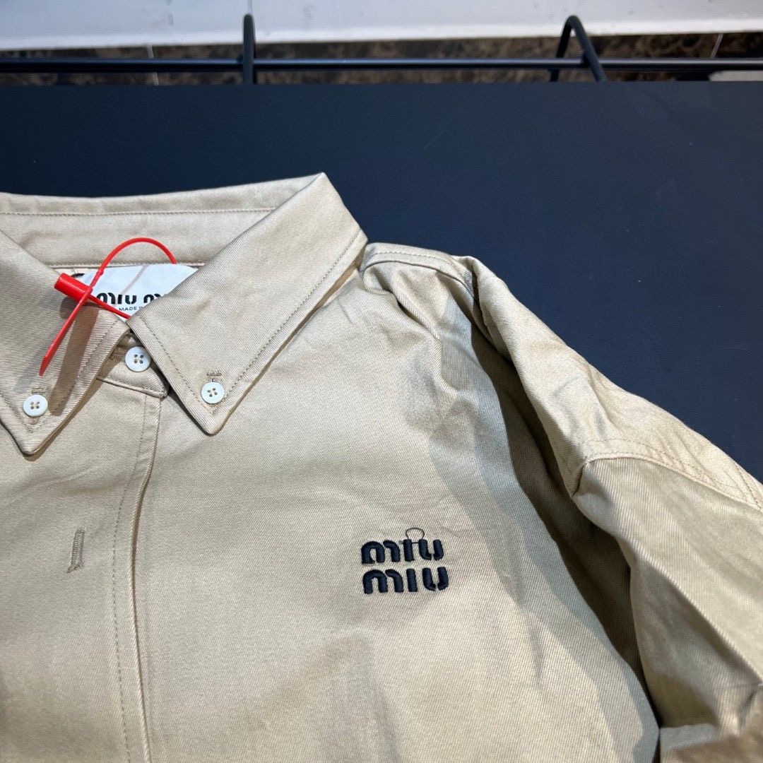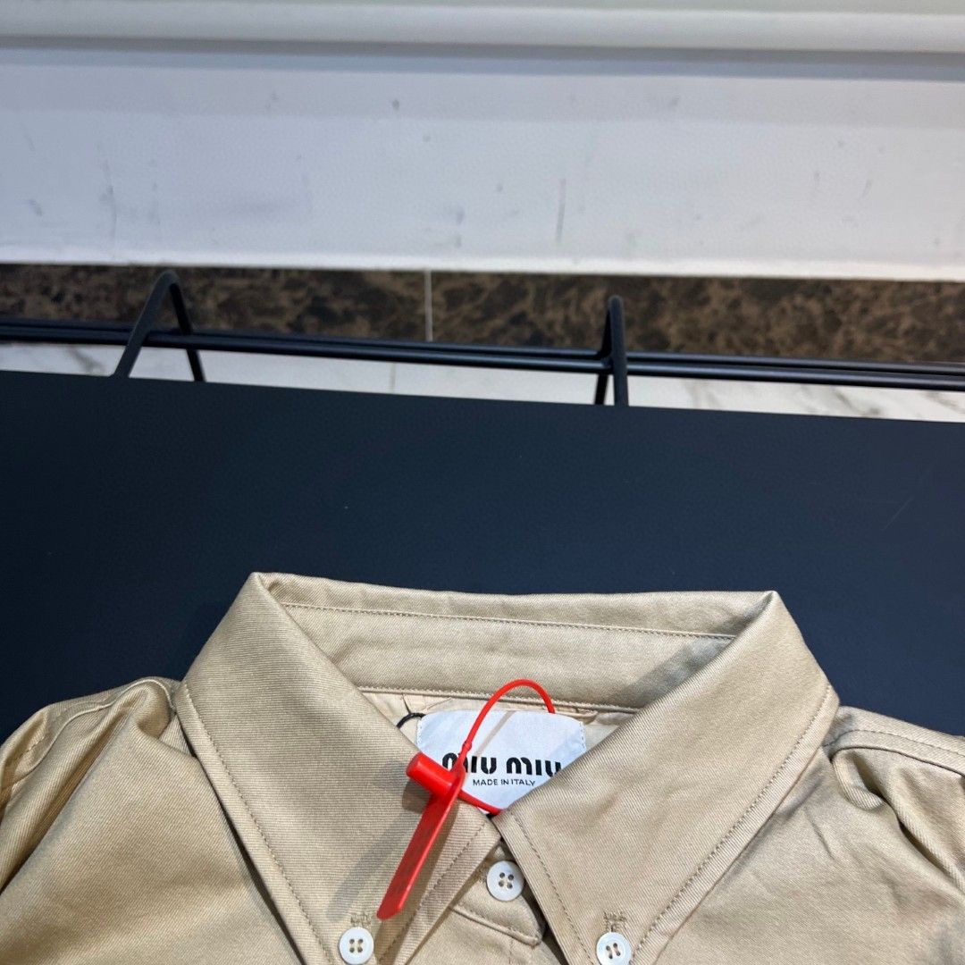这款衣服是AAAAA 1:1 质量 (非常棒). 使用了和原版一模一样的材料. 商标部分也保持了和缪缪/Miu Miu一样. 图片拍摄是实物衣服拍摄, 您所收到的实物保证和我们图片一模一样.