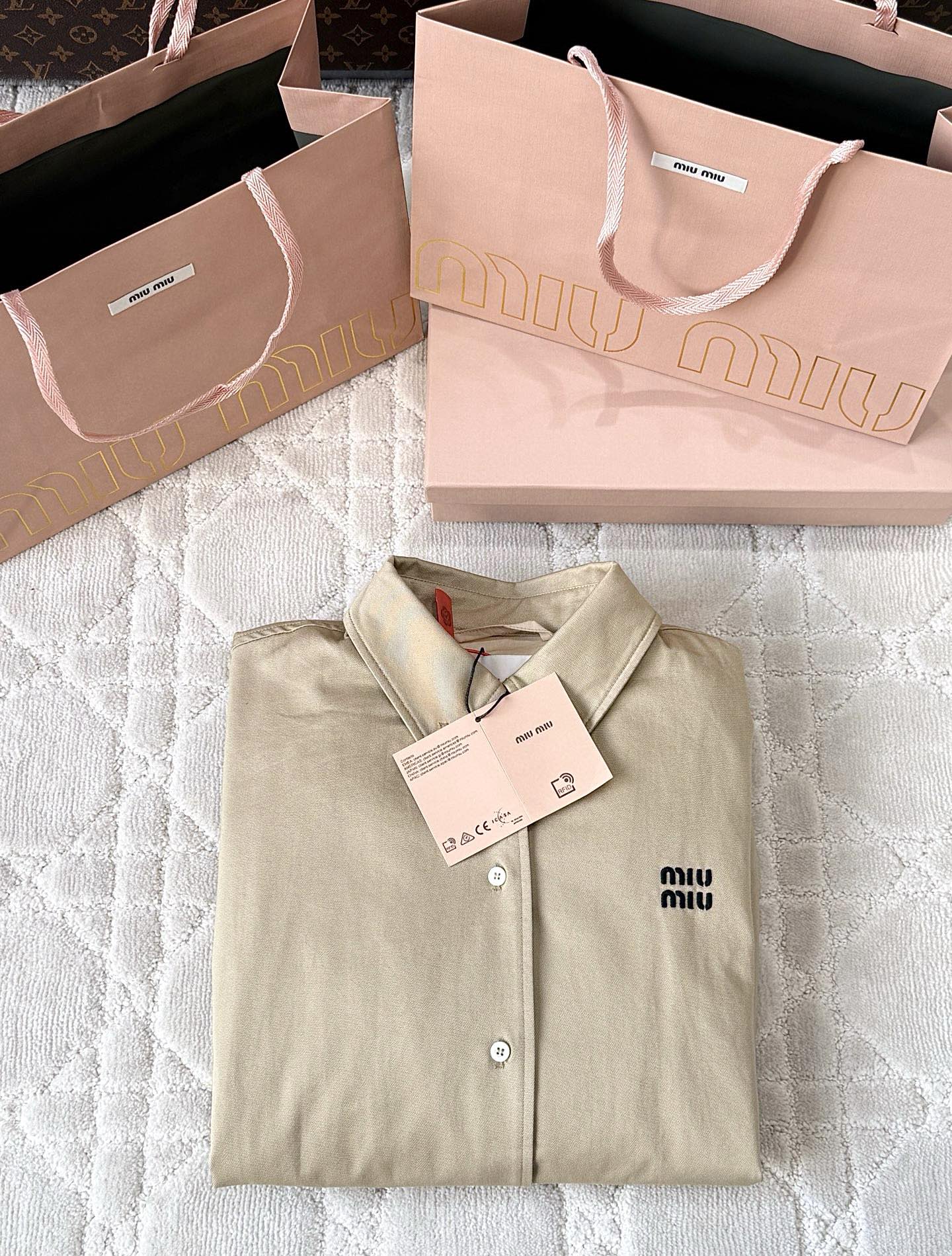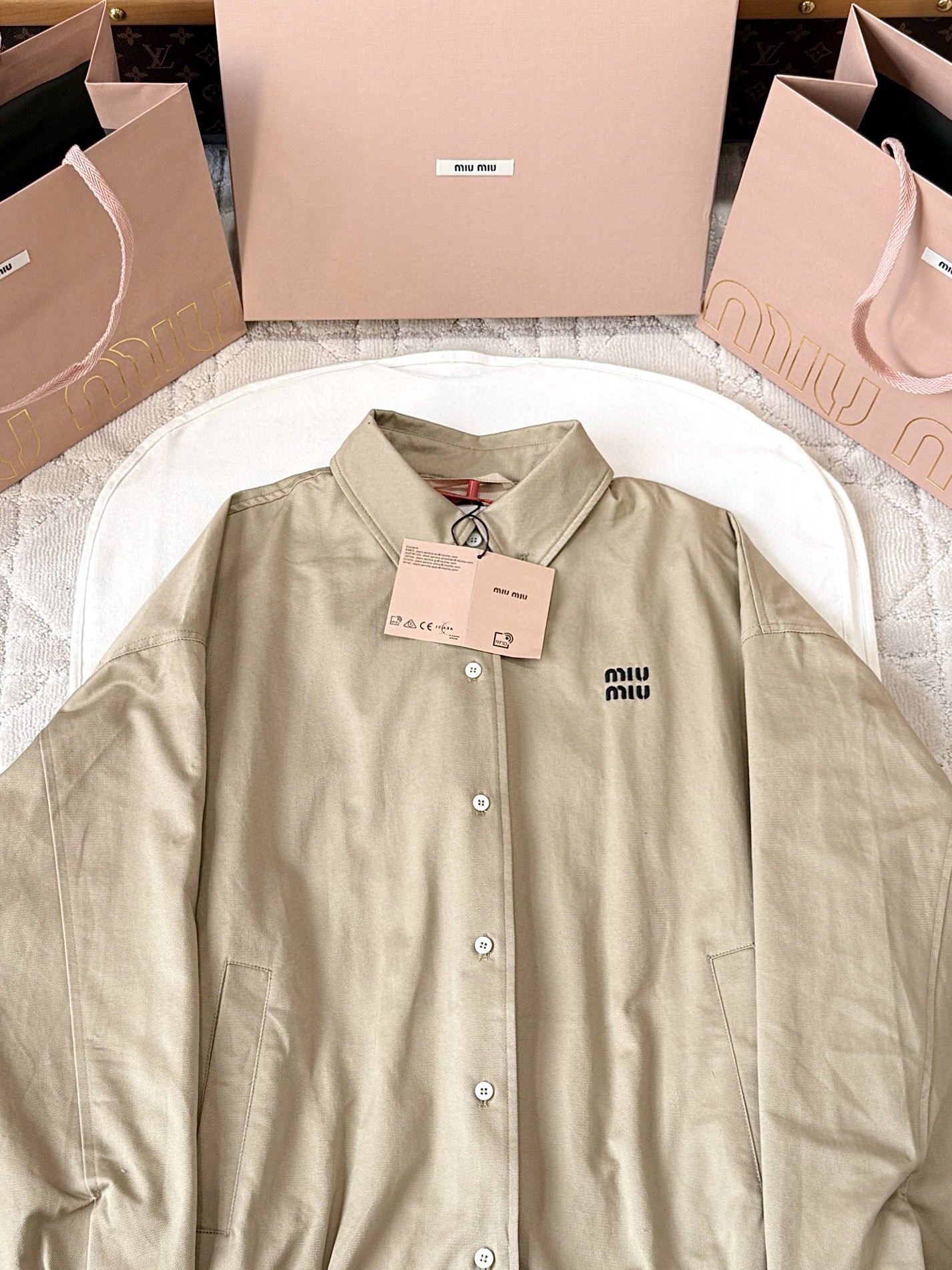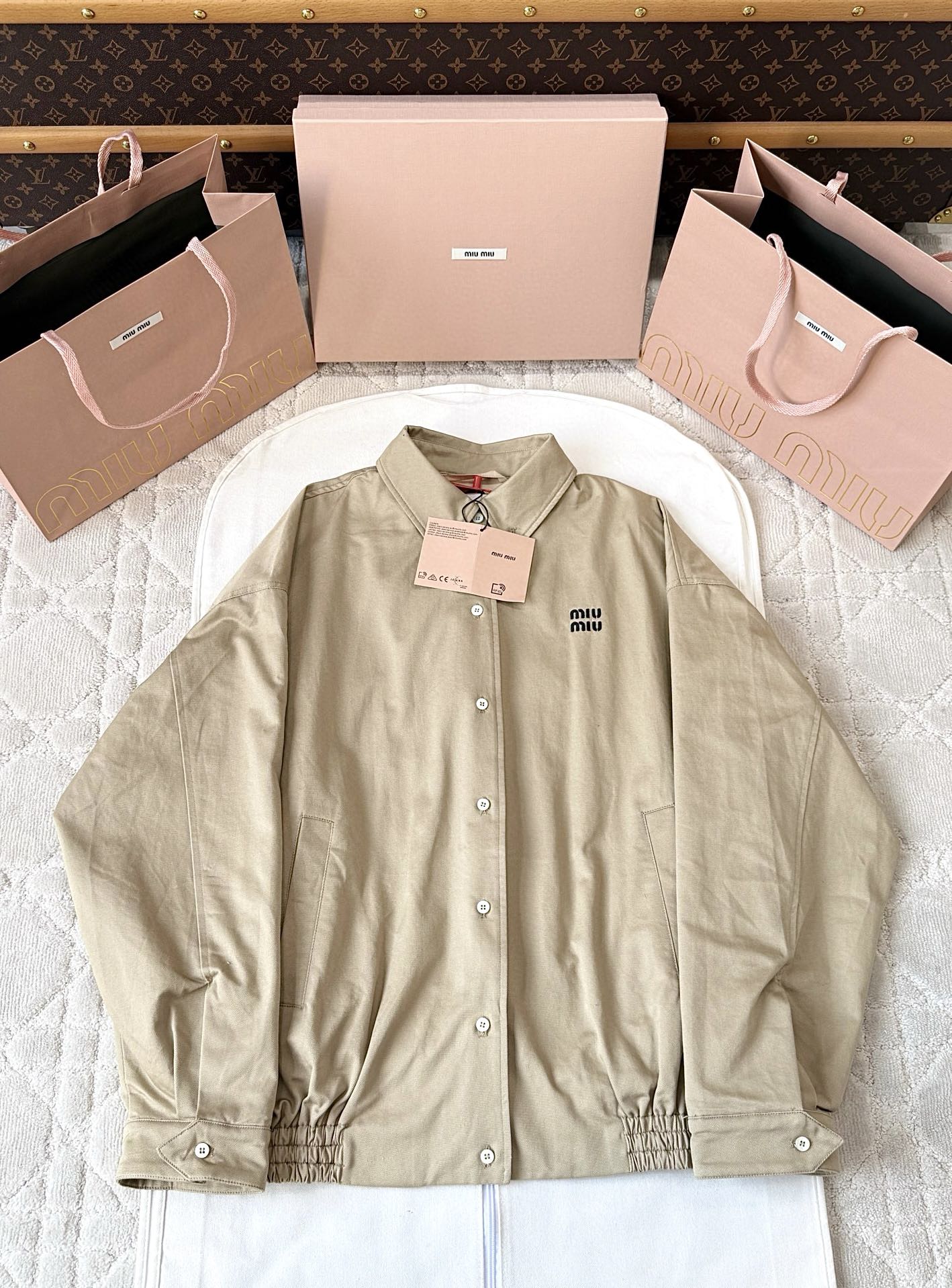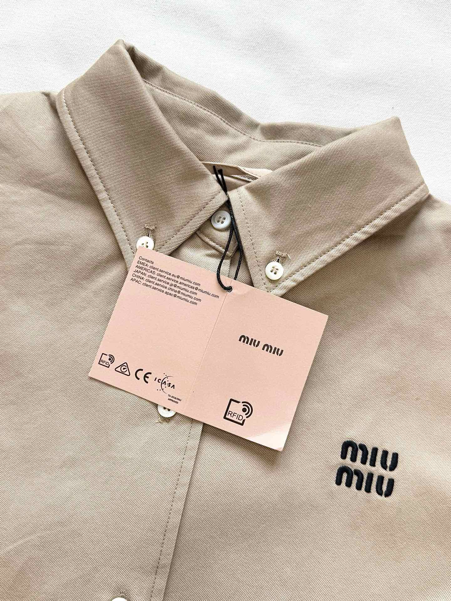 这款衣服是AAAAA 1:1 质量 (非常棒). 使用了和原版一模一样的材料. 商标部分也保持了和缪缪/Miu Miu一样. 图片拍摄是实物衣服拍摄, 您所收到的实物保证和我们图片一模一样.