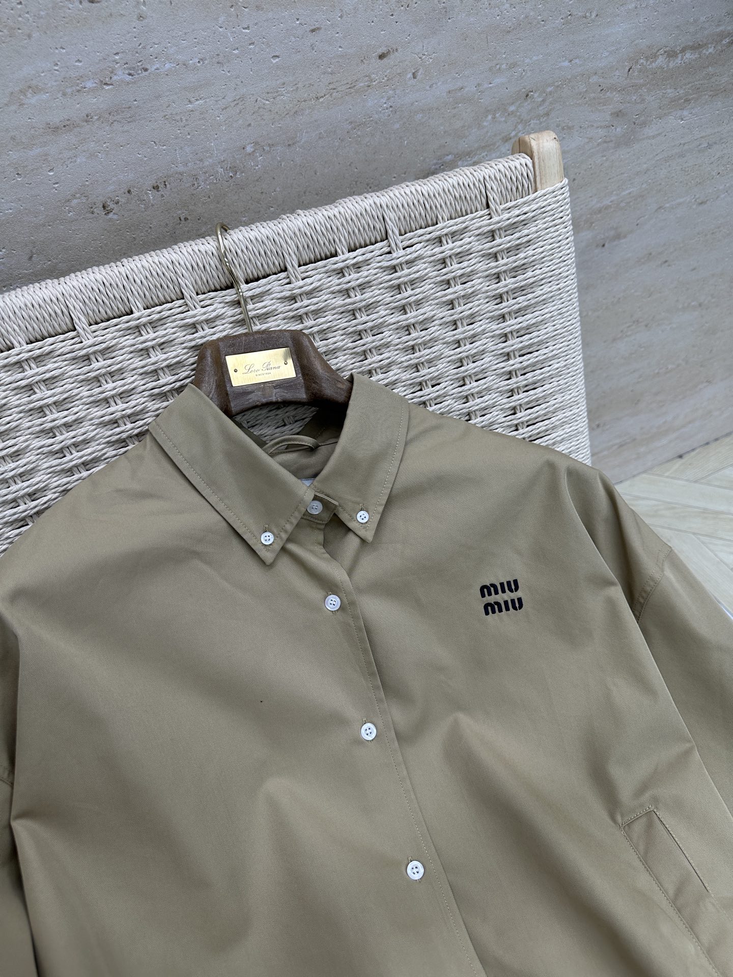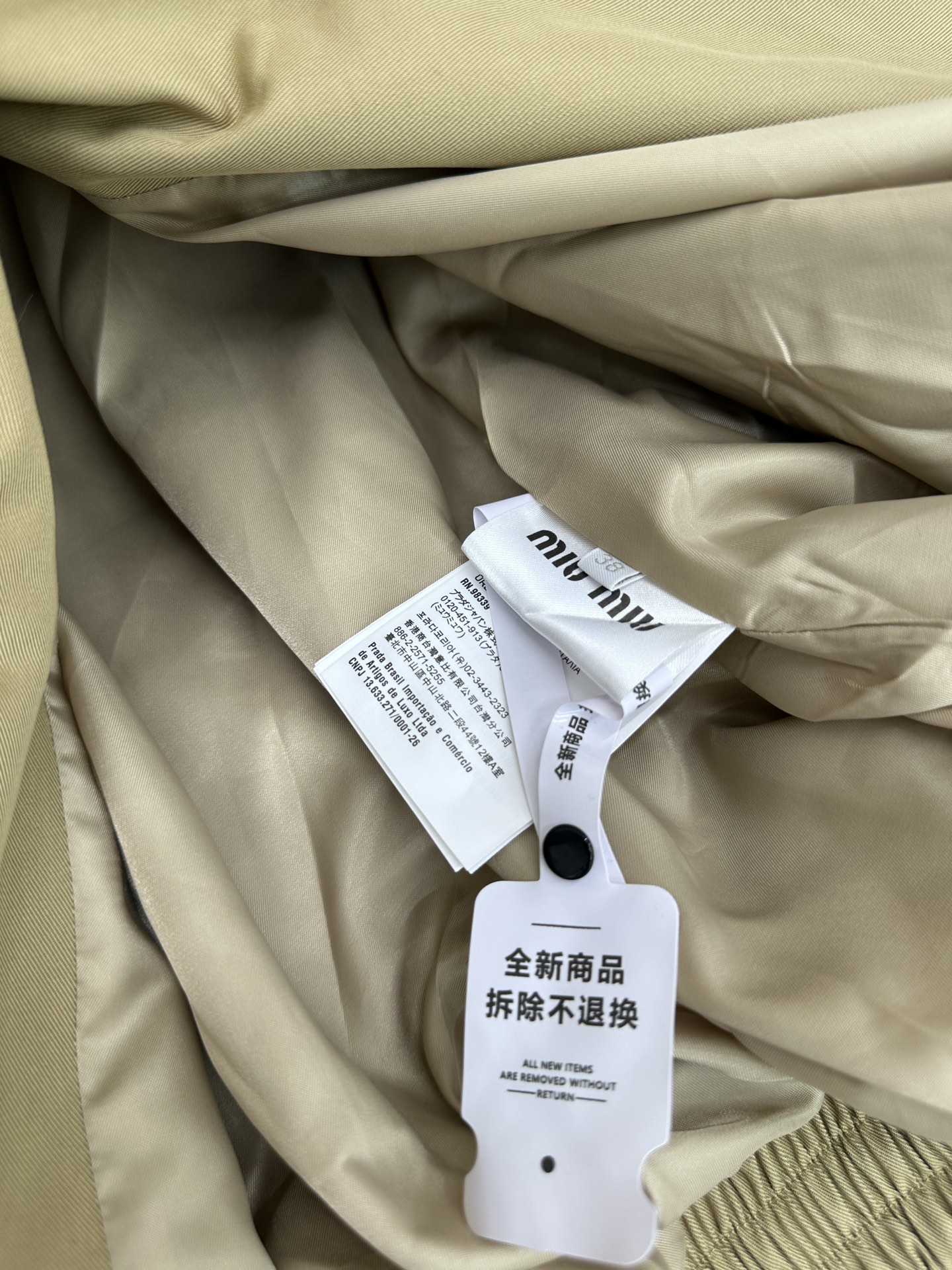 这款衣服是AAAAA 1:1 质量 (非常棒). 使用了和原版一模一样的材料. 商标部分也保持了和缪缪/Miu Miu一样. 图片拍摄是实物衣服拍摄, 您所收到的实物保证和我们图片一模一样.