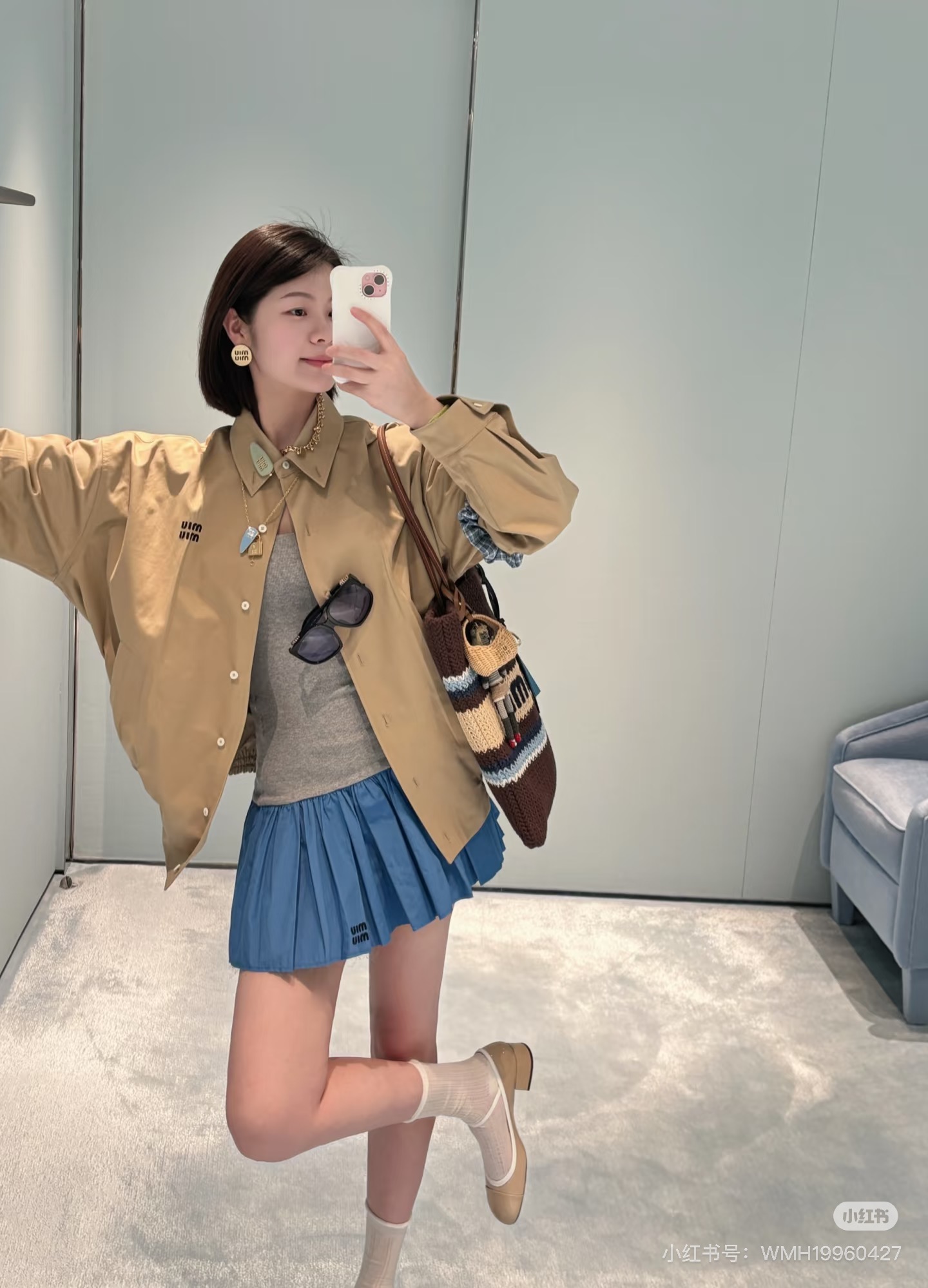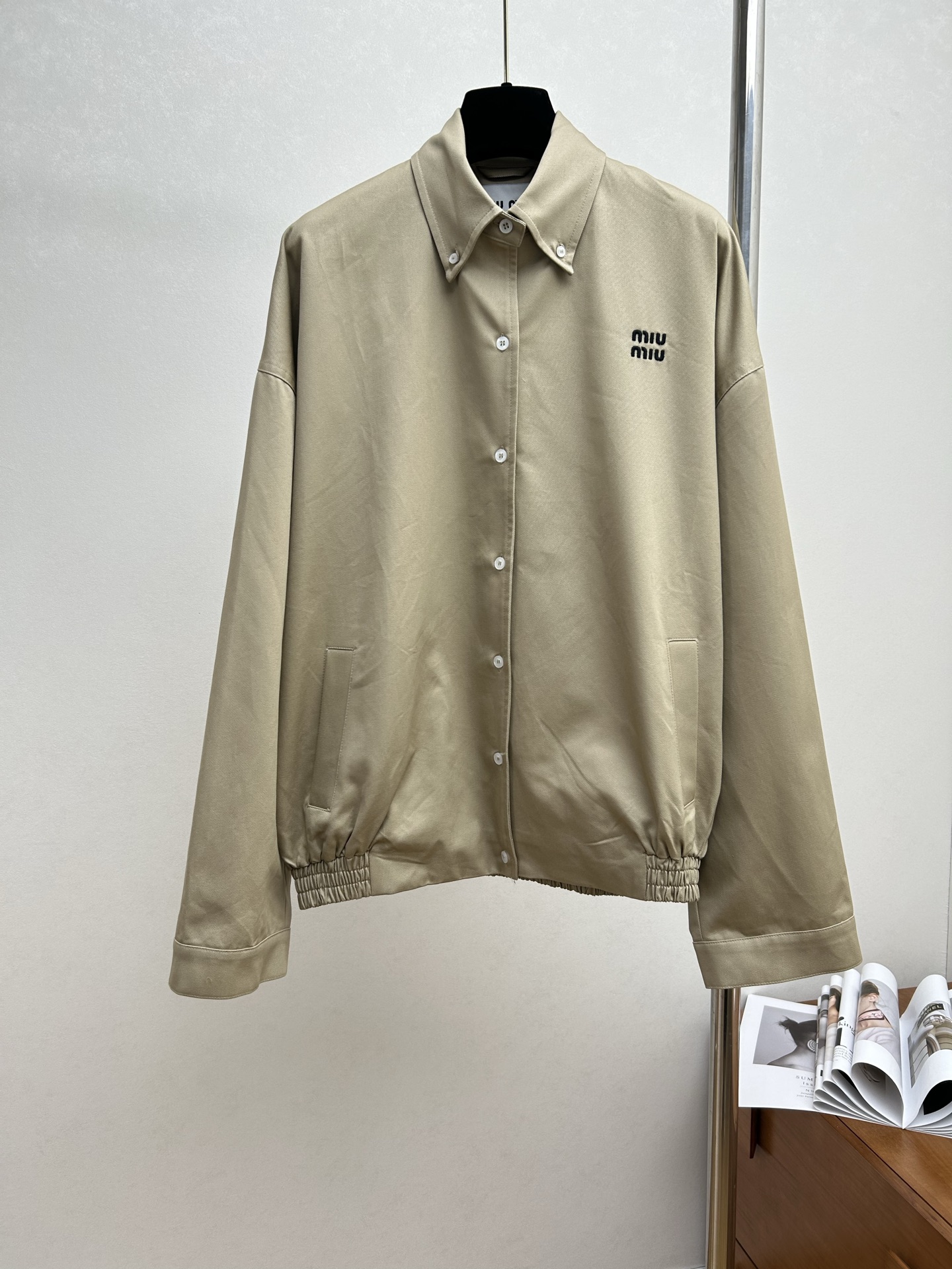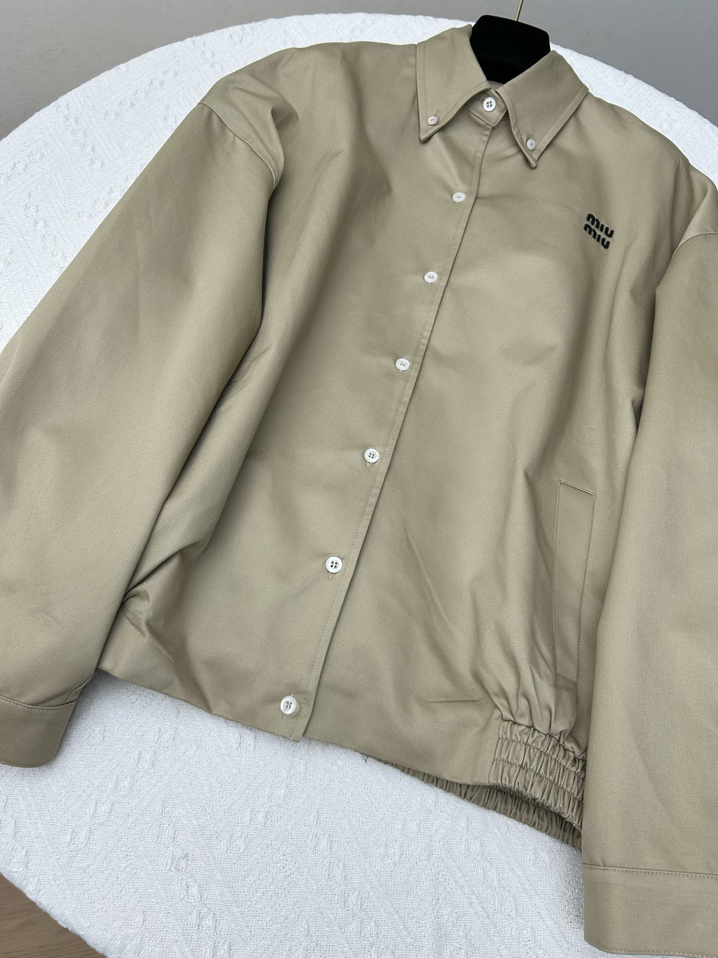 这款衣服是AAAAA 1:1 质量 (非常棒). 使用了和原版一模一样的材料. 商标部分也保持了和缪缪/Miu Miu一样. 图片拍摄是实物衣服拍摄, 您所收到的实物保证和我们图片一模一样.