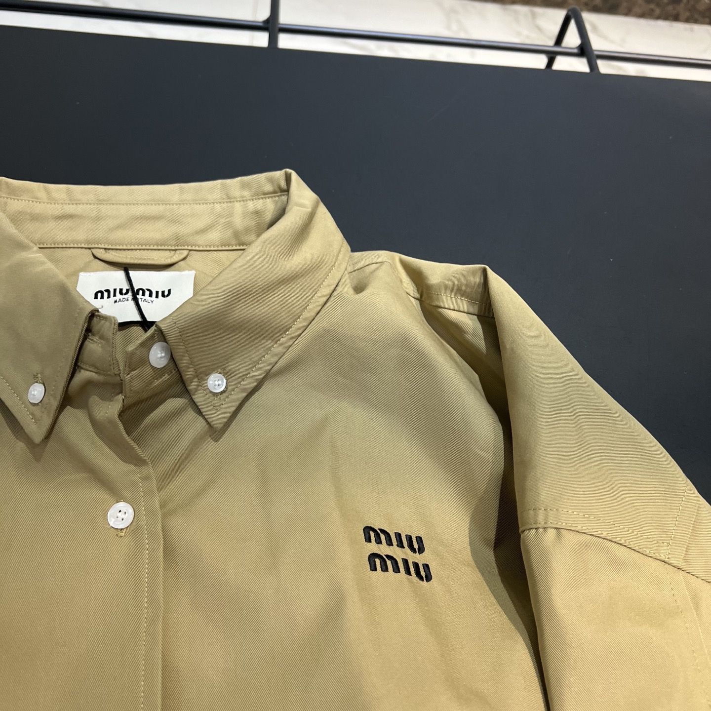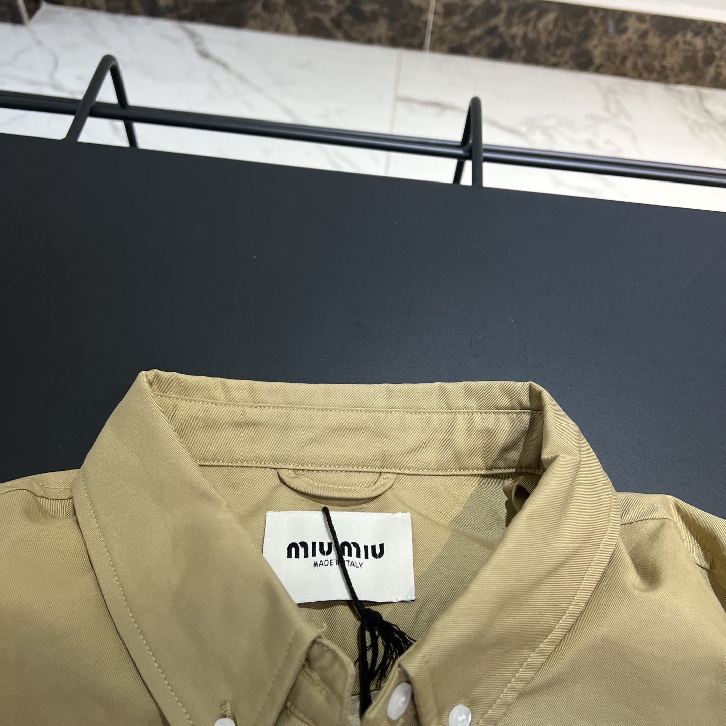 这款衣服是AAAAA 1:1 质量 (非常棒). 使用了和原版一模一样的材料. 商标部分也保持了和缪缪/Miu Miu一样. 图片拍摄是实物衣服拍摄, 您所收到的实物保证和我们图片一模一样.