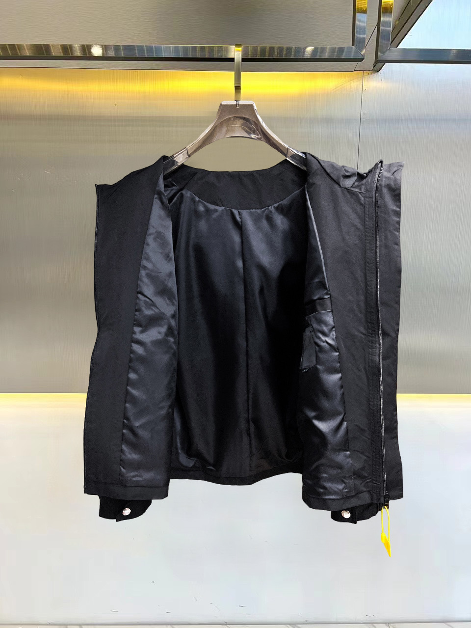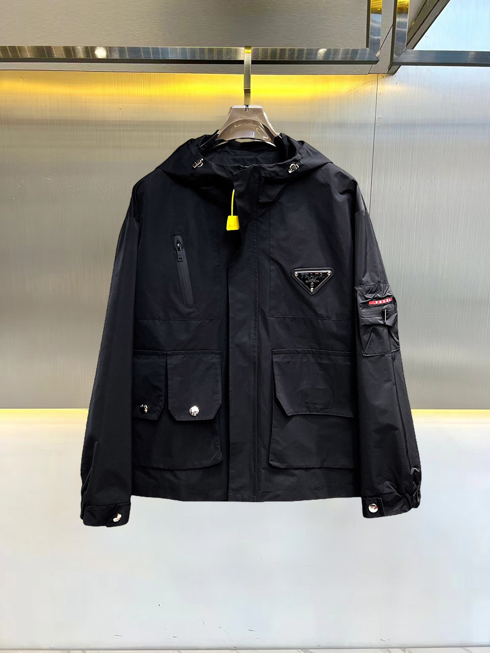 这款衣服是AAAAA 1:1 质量 (非常棒). 使用了和原版一模一样的材料. 商标部分也保持了和普拉达/Prada一样. 图片拍摄是实物衣服拍摄, 您所收到的实物保证和我们图片一模一样.