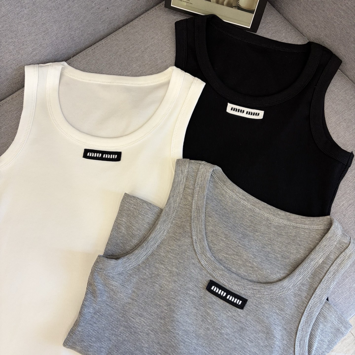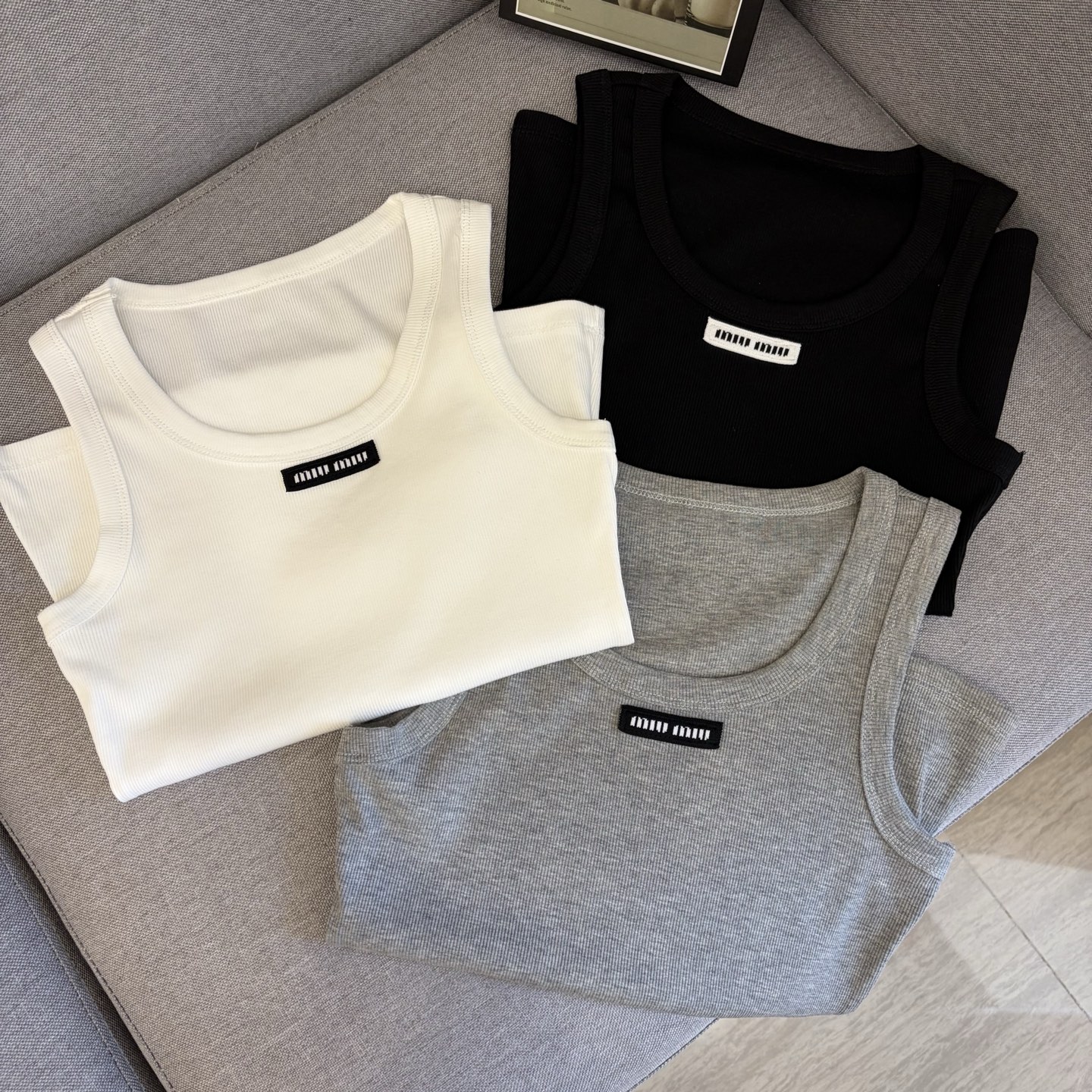 这款衣服是AAAAA 1:1 质量 (非常棒). 使用了和原版一模一样的材料. 商标部分也保持了和缪缪/Miu Miu一样. 图片拍摄是实物衣服拍摄, 您所收到的实物保证和我们图片一模一样.