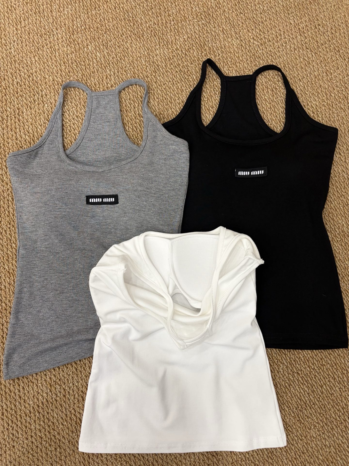 这款衣服是AAAAA 1:1 质量 (非常棒). 使用了和原版一模一样的材料. 商标部分也保持了和缪缪/Miu Miu一样. 图片拍摄是实物衣服拍摄, 您所收到的实物保证和我们图片一模一样.