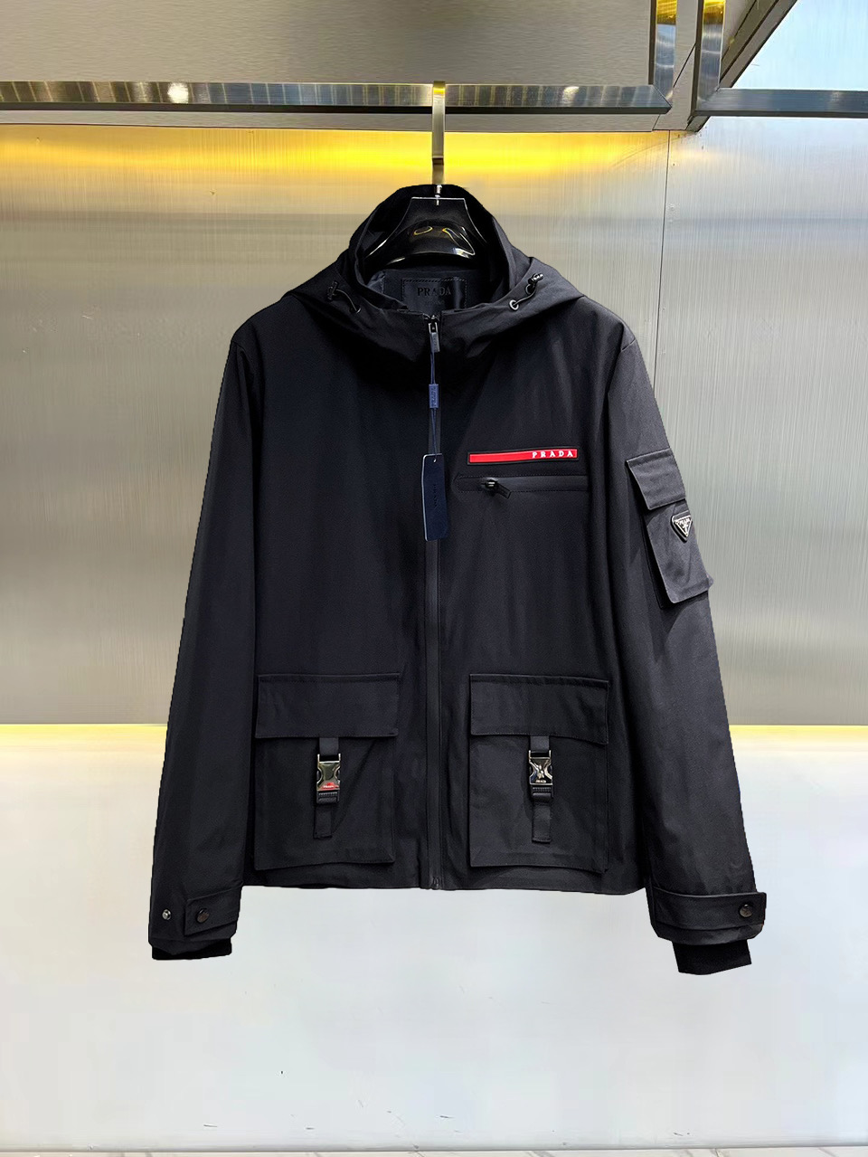 这款衣服是AAAAA 1:1 质量 (非常棒). 使用了和原版一模一样的材料. 商标部分也保持了和普拉达/Prada一样. 图片拍摄是实物衣服拍摄, 您所收到的实物保证和我们图片一模一样.