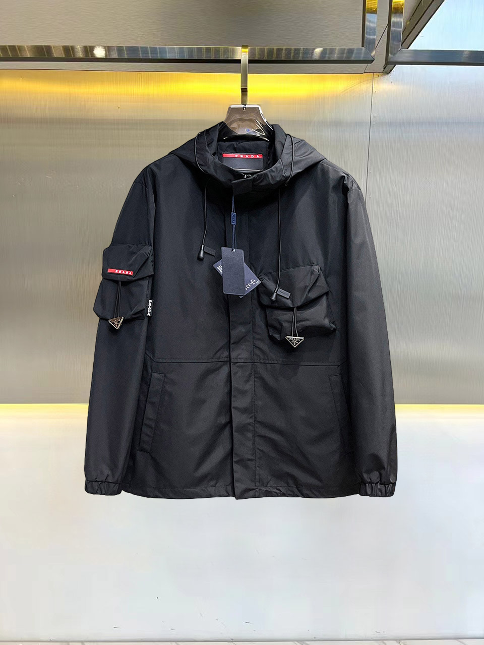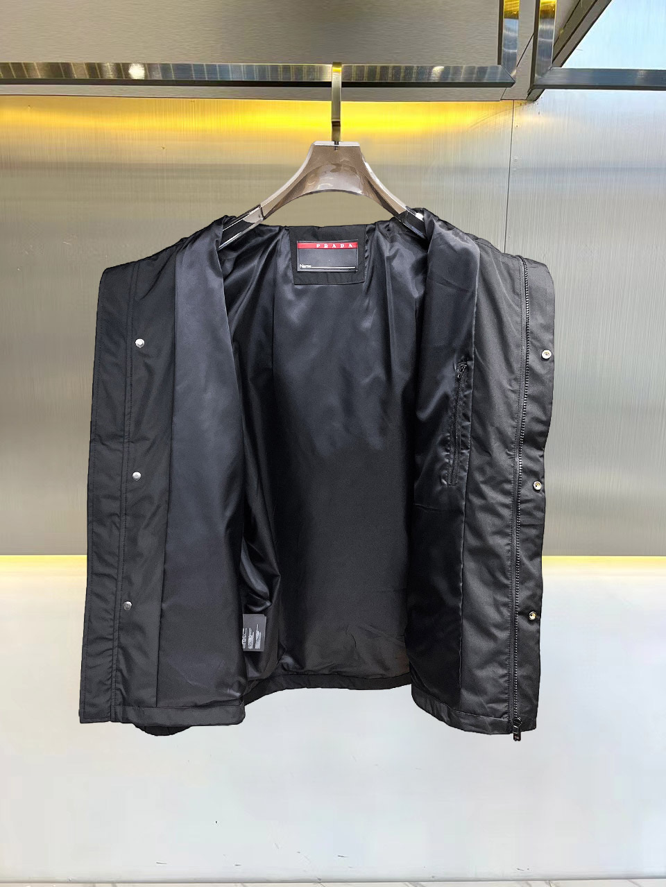 这款衣服是AAAAA 1:1 质量 (非常棒). 使用了和原版一模一样的材料. 商标部分也保持了和普拉达/Prada一样. 图片拍摄是实物衣服拍摄, 您所收到的实物保证和我们图片一模一样.