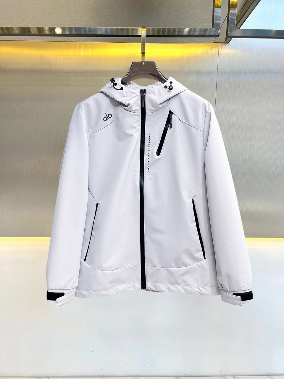 这款衣服是AAAAA 1:1 质量 (非常棒). 使用了和原版一模一样的材料. 商标部分也保持了和Alo Yoga一样. 图片拍摄是实物衣服拍摄, 您所收到的实物保证和我们图片一模一样.