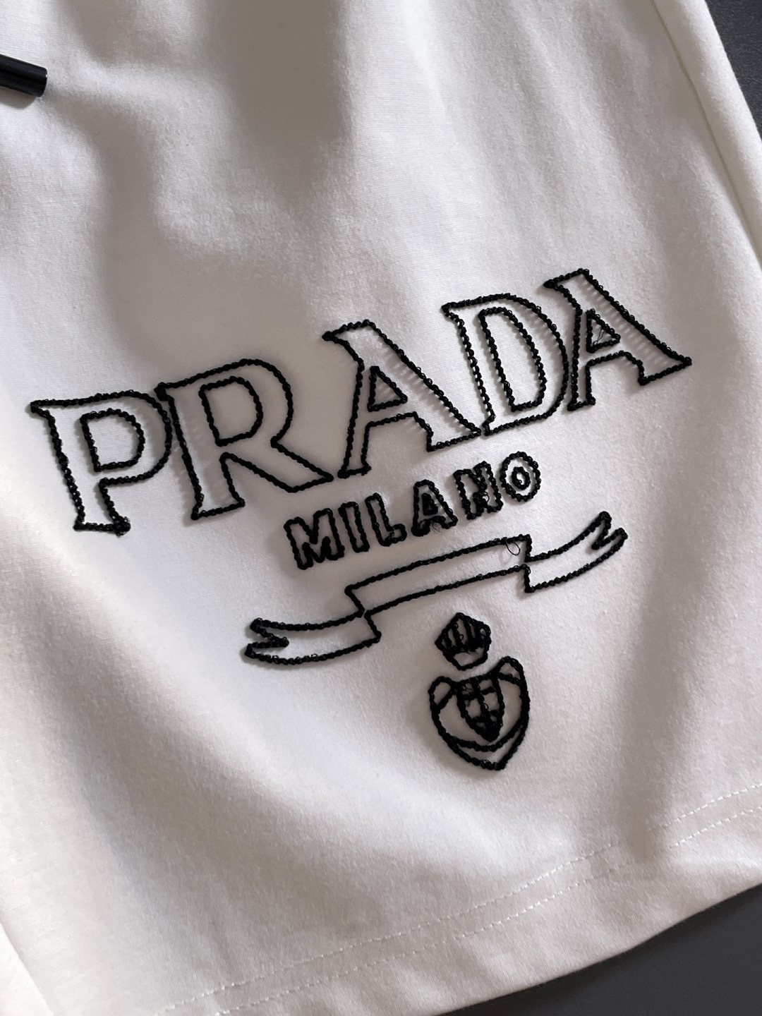 这款衣服是AAAAA 1:1 质量 (非常棒). 使用了和原版一模一样的材料. 商标部分也保持了和普拉达/Prada一样. 图片拍摄是实物衣服拍摄, 您所收到的实物保证和我们图片一模一样.