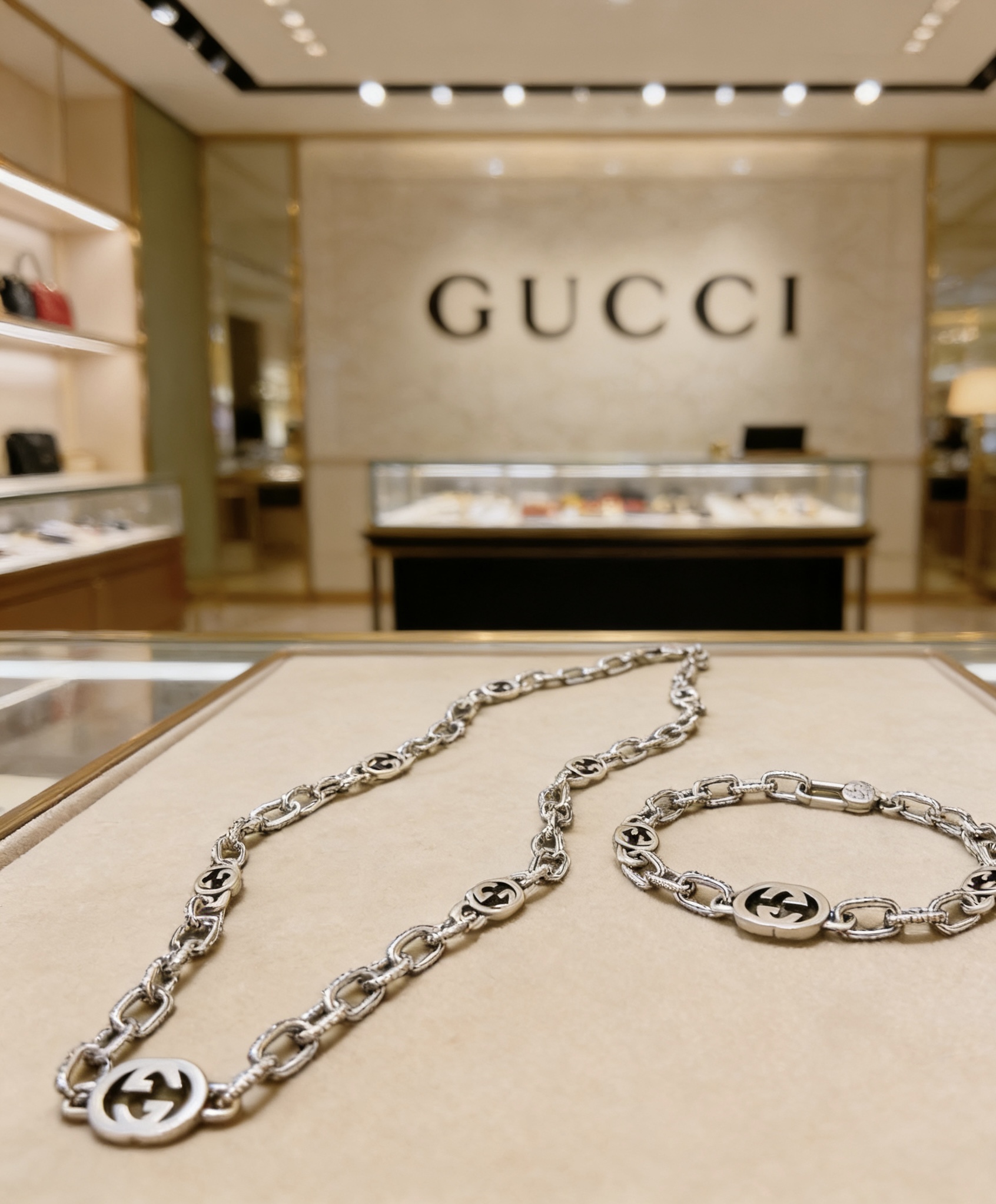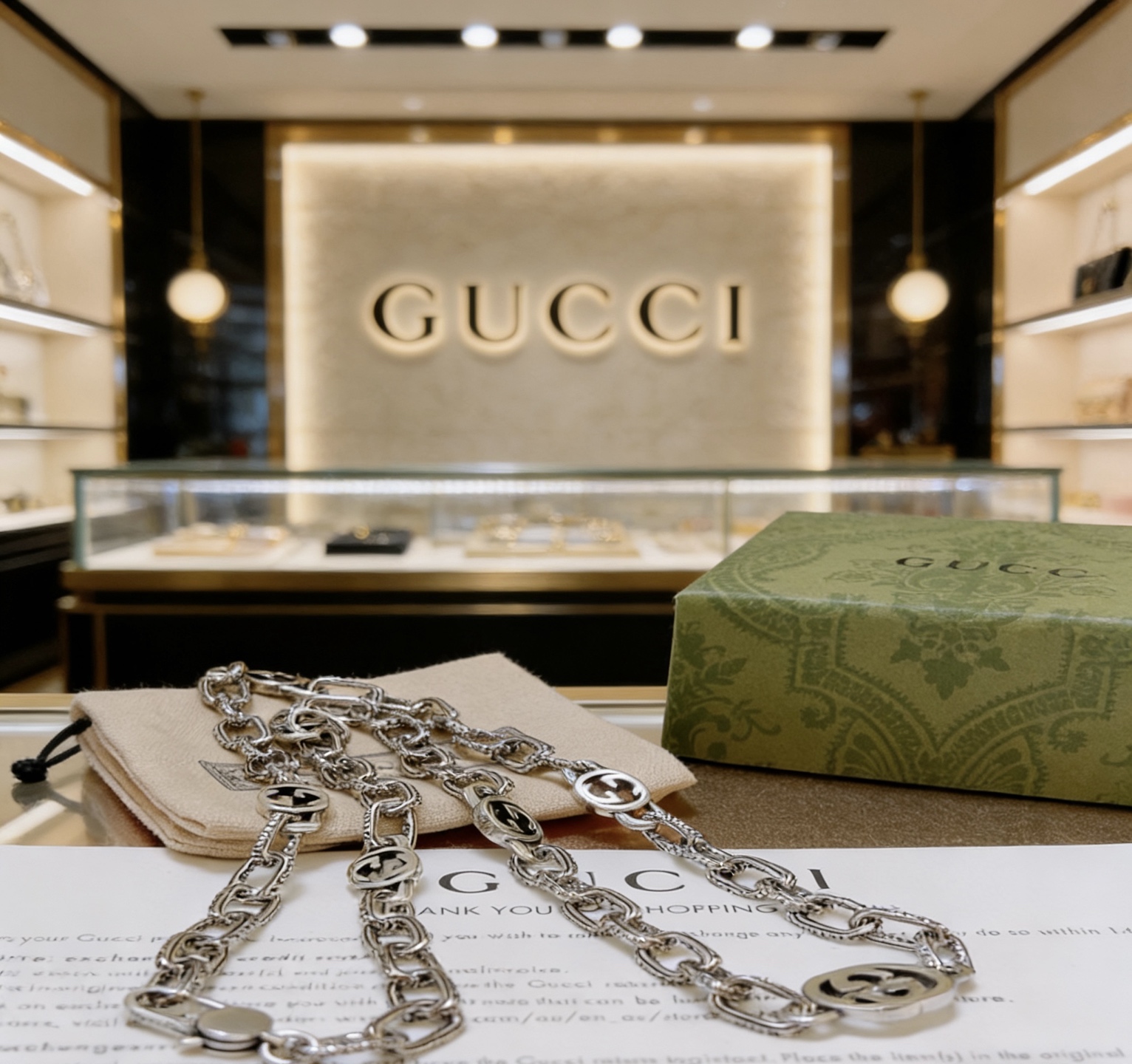 这款首饰是AAAAA 1:1 质量 (非常棒). 使用了和原版一模一样的材料. 商标部分也保持了和古奇/Gucci一样. 图片拍摄是实物首饰拍摄, 您所收到的实物保证和我们图片一模一样.