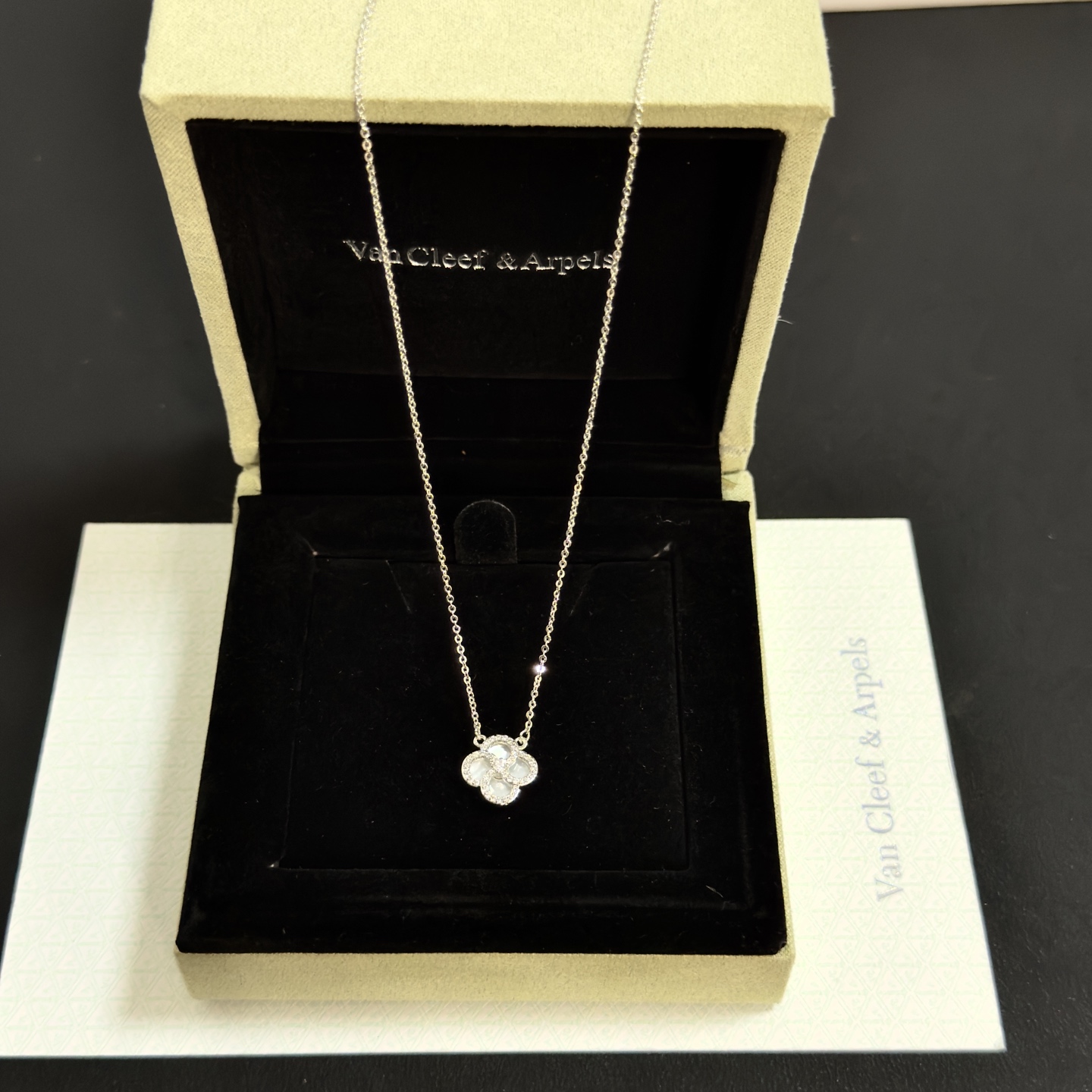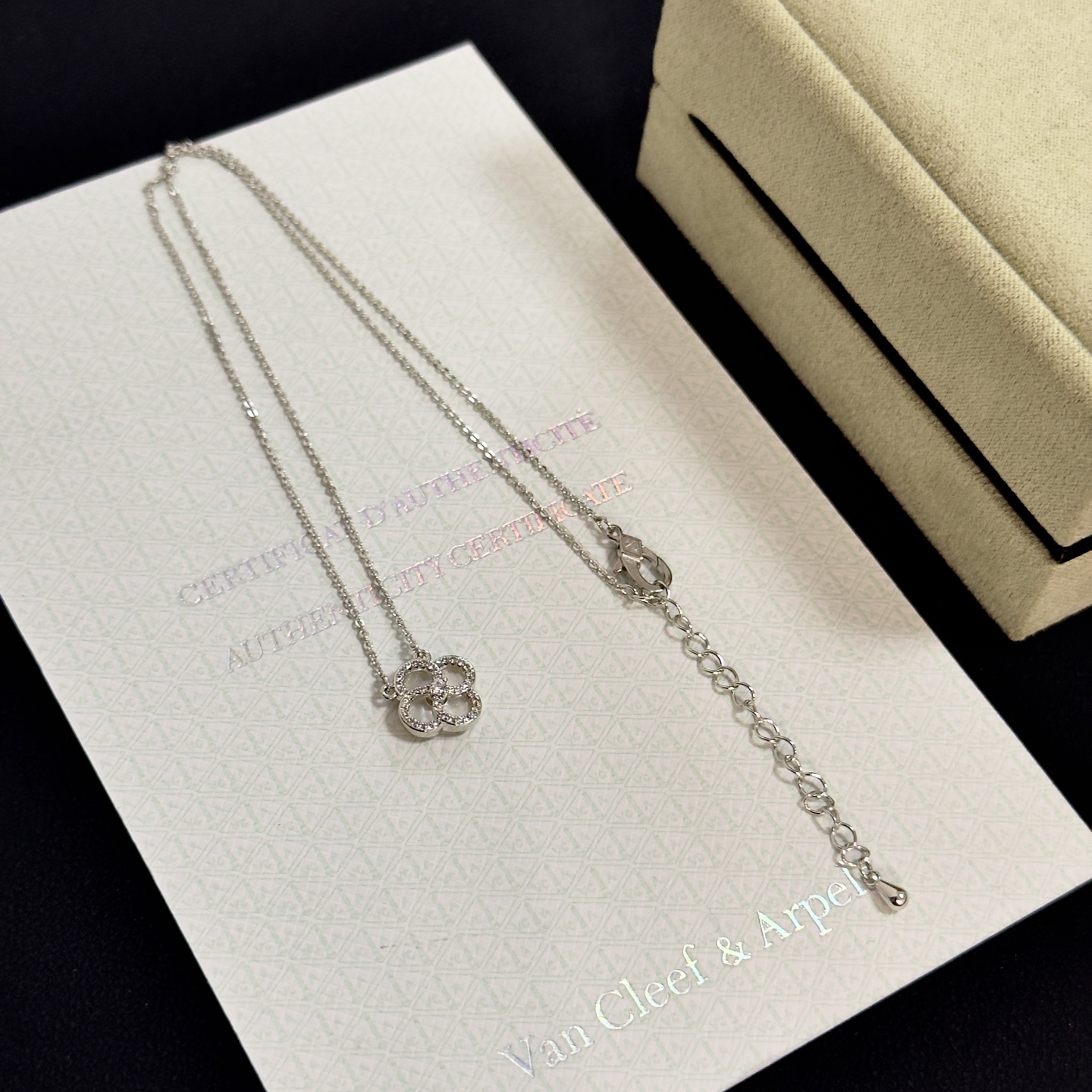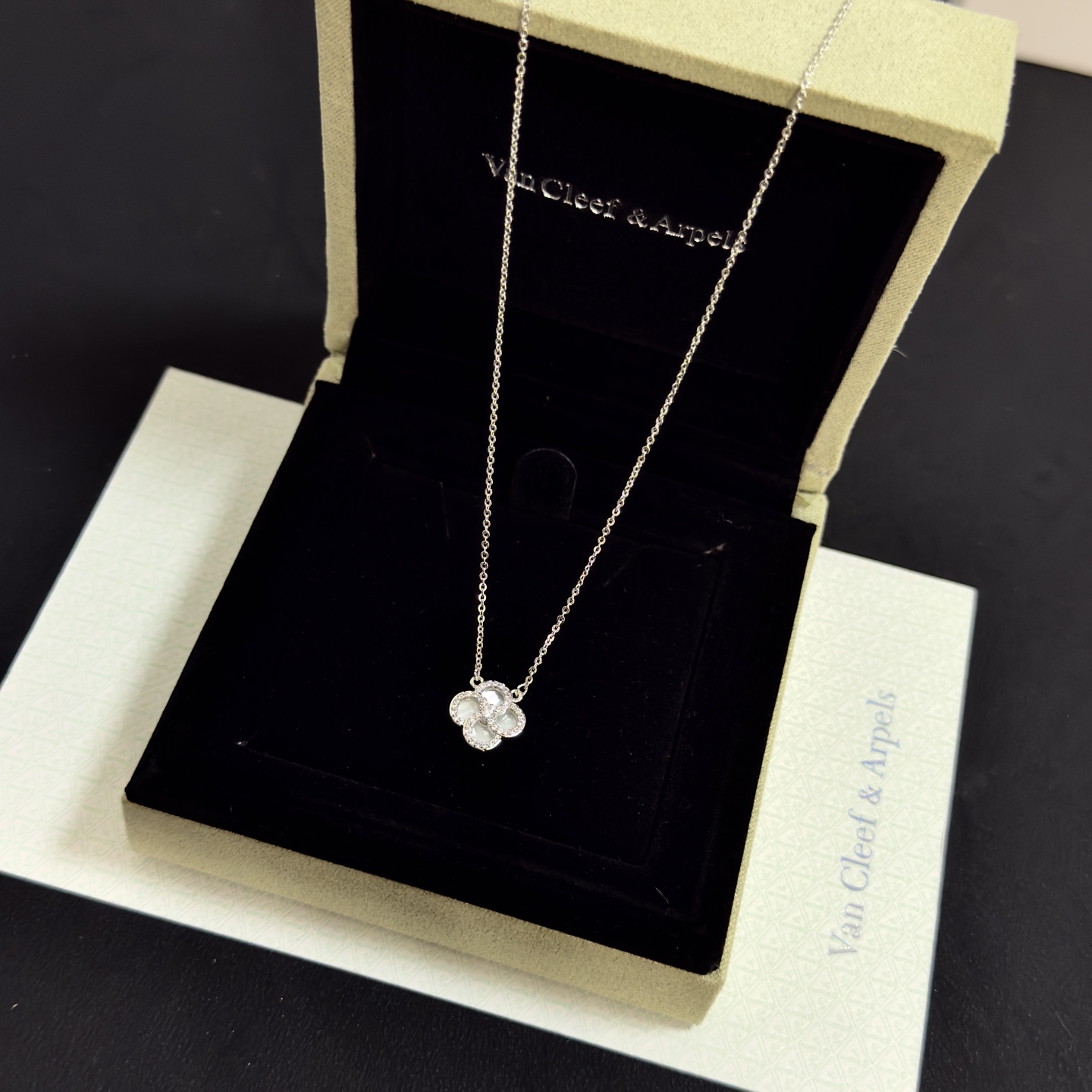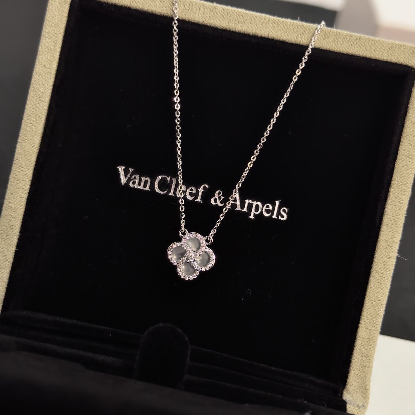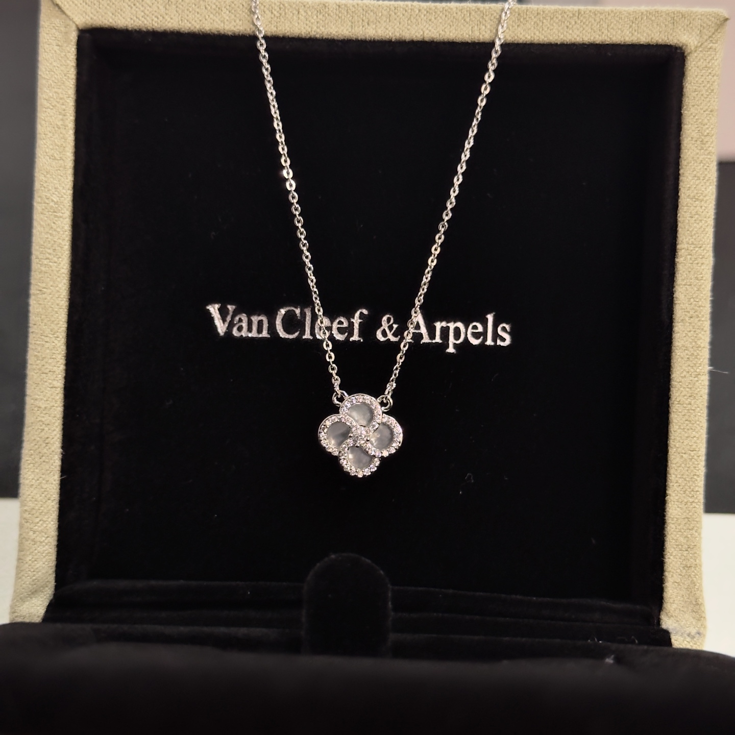 这款首饰是AAAAA 1:1 质量 (非常棒). 使用了和原版一模一样的材料. 商标部分也保持了和梵克雅宝/Van Cleef & Arpels一样. 图片拍摄是实物首饰拍摄, 您所收到的实物保证和我们图片一模一样.