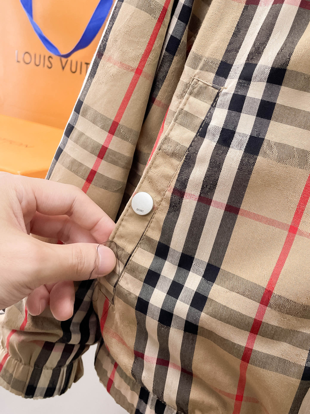 这款衣服是AAAAA 1:1 质量 (非常棒). 使用了和原版一模一样的材料. 商标部分也保持了和巴宝莉/Burberry一样. 图片拍摄是实物衣服拍摄, 您所收到的实物保证和我们图片一模一样.