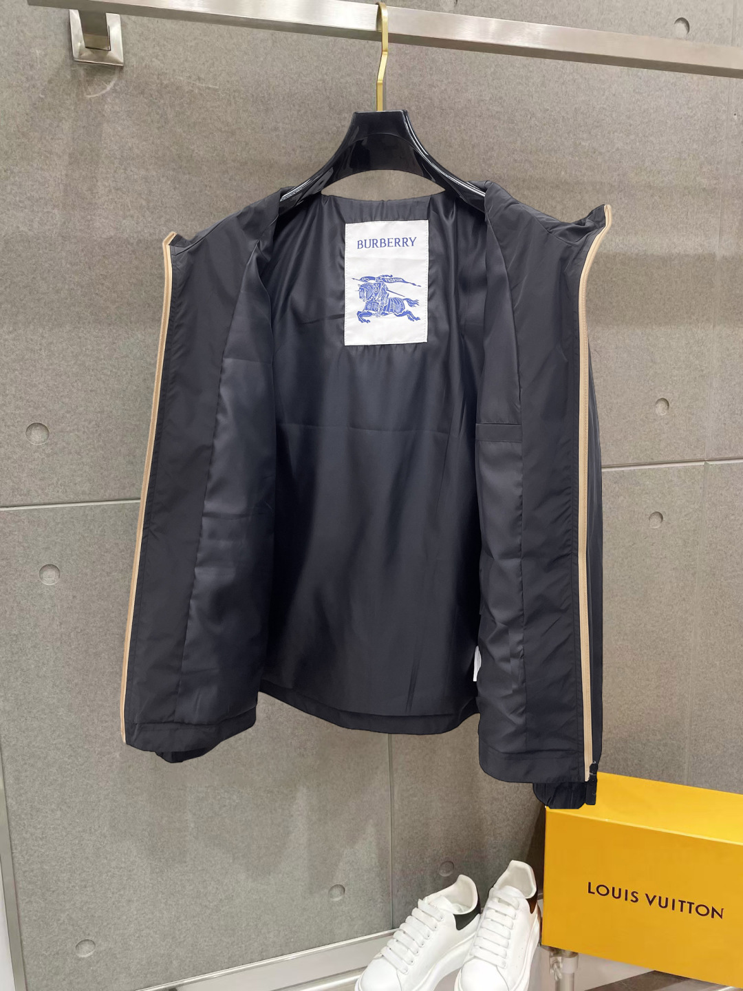 这款衣服是AAAAA 1:1 质量 (非常棒). 使用了和原版一模一样的材料. 商标部分也保持了和巴宝莉/Burberry一样. 图片拍摄是实物衣服拍摄, 您所收到的实物保证和我们图片一模一样.