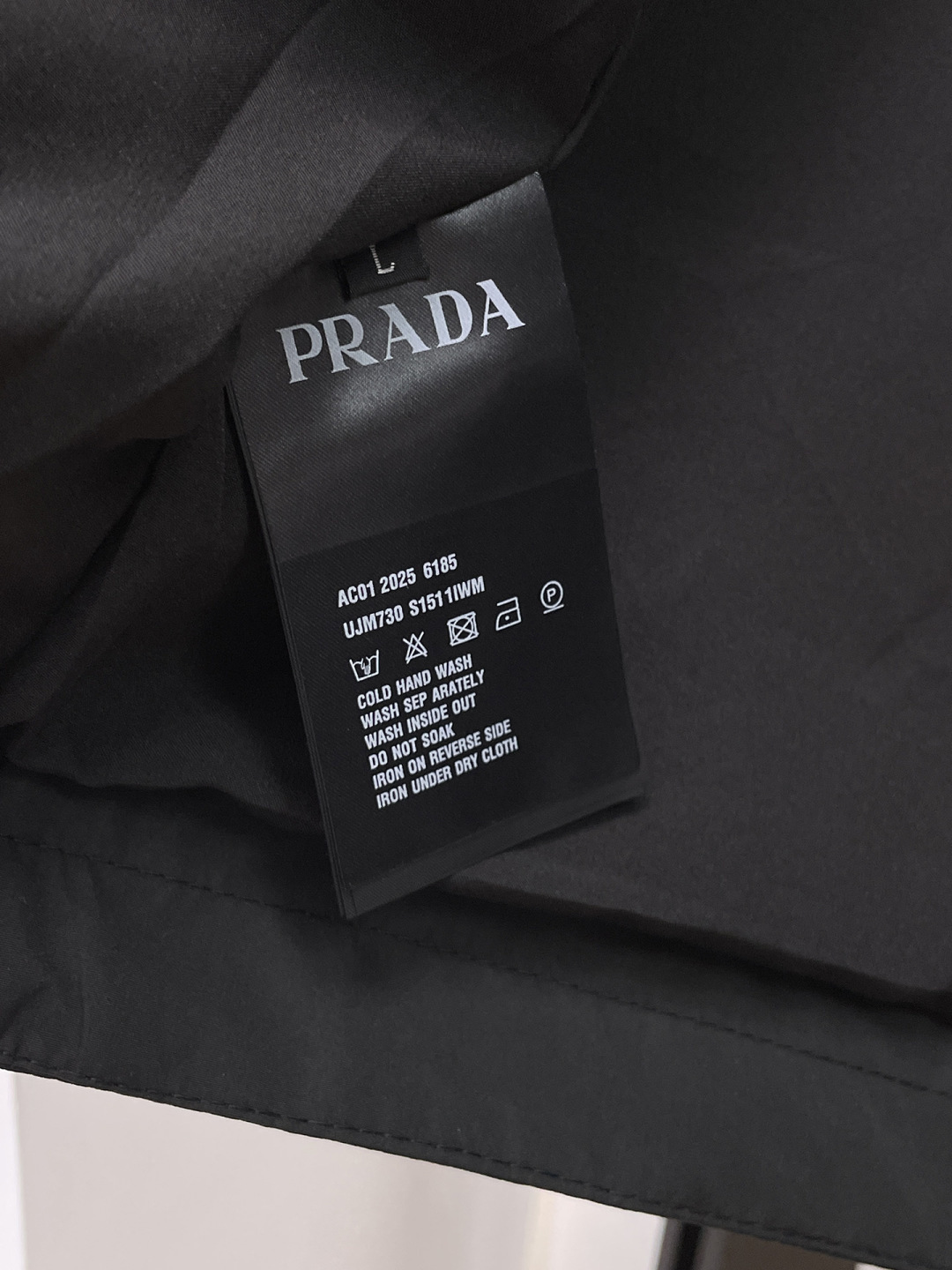 这款衣服是AAAAA 1:1 质量 (非常棒). 使用了和原版一模一样的材料. 商标部分也保持了和普拉达/Prada一样. 图片拍摄是实物衣服拍摄, 您所收到的实物保证和我们图片一模一样.