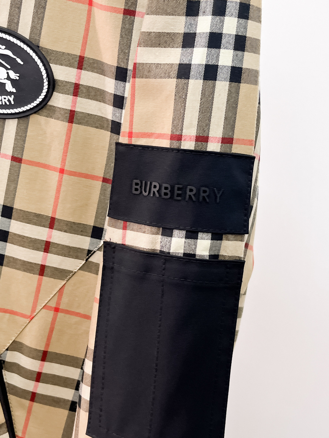 这款衣服是AAAAA 1:1 质量 (非常棒). 使用了和原版一模一样的材料. 商标部分也保持了和巴宝莉/Burberry一样. 图片拍摄是实物衣服拍摄, 您所收到的实物保证和我们图片一模一样.