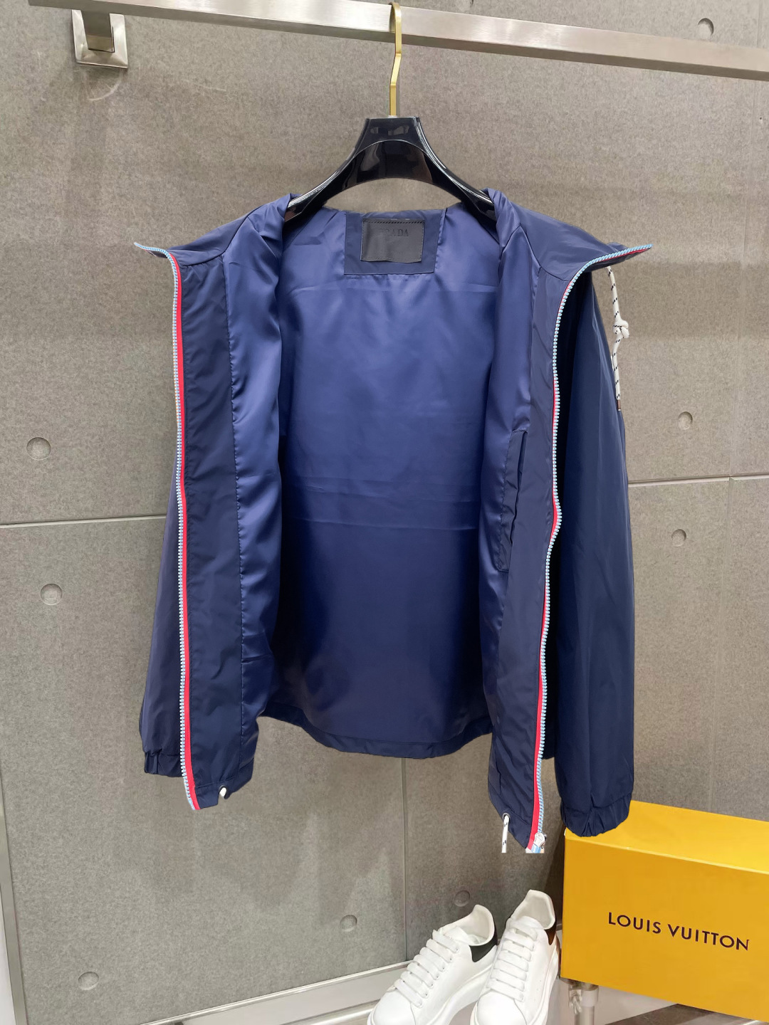 这款衣服是AAAAA 1:1 质量 (非常棒). 使用了和原版一模一样的材料. 商标部分也保持了和普拉达/Prada一样. 图片拍摄是实物衣服拍摄, 您所收到的实物保证和我们图片一模一样.