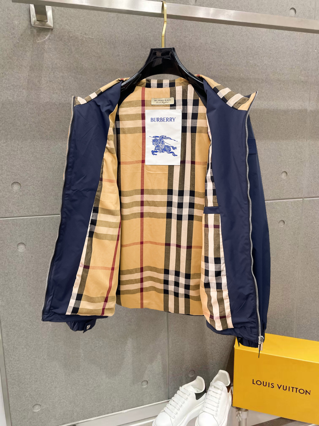 这款衣服是AAAAA 1:1 质量 (非常棒). 使用了和原版一模一样的材料. 商标部分也保持了和巴宝莉/Burberry一样. 图片拍摄是实物衣服拍摄, 您所收到的实物保证和我们图片一模一样.
