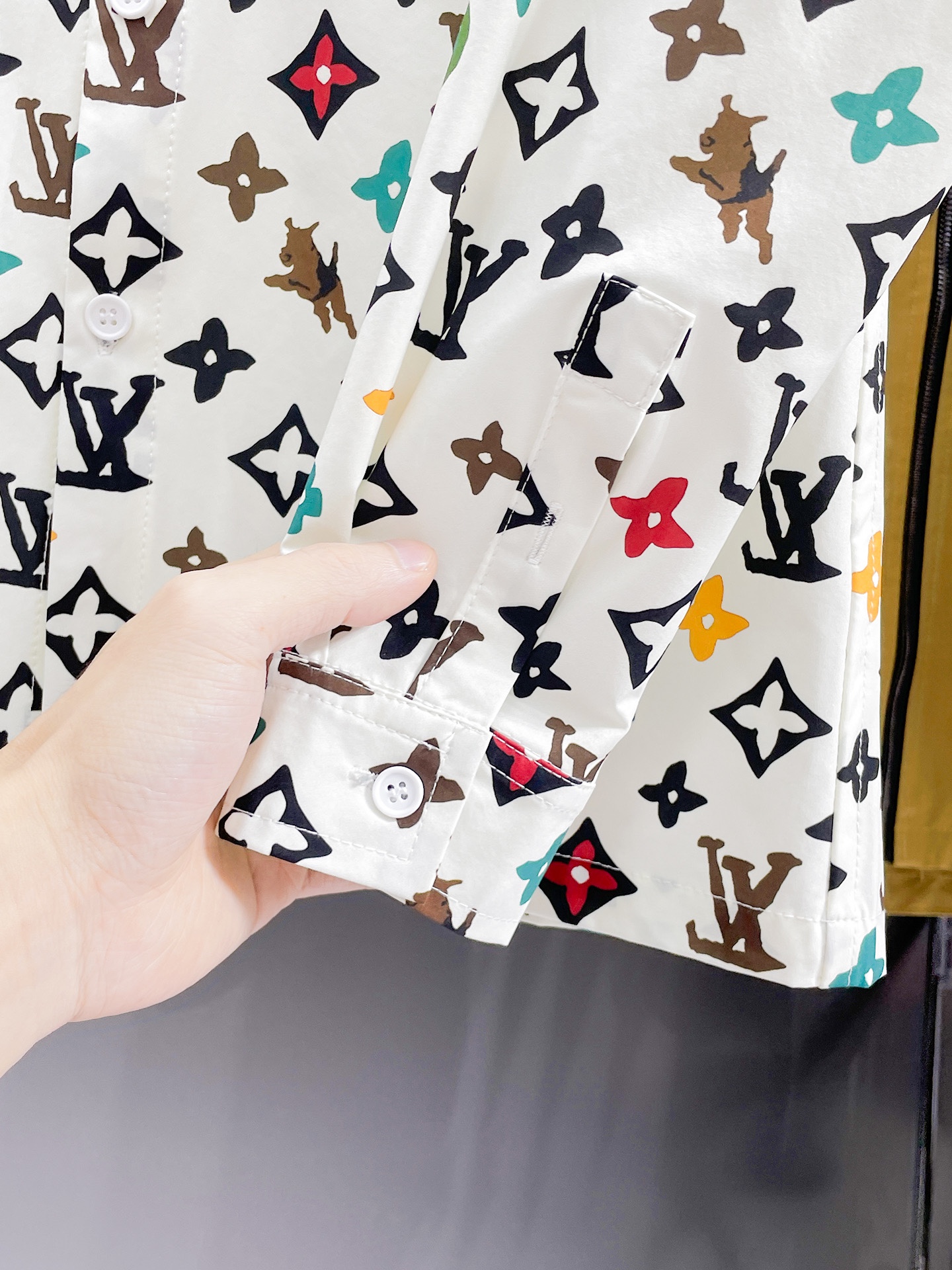 这款衣服是AAAAA 1:1 质量 (非常棒). 使用了和原版一模一样的材料. 商标部分也保持了和路易威登/Louis Vuitton一样. 图片拍摄是实物衣服拍摄, 您所收到的实物保证和我们图片一模一样.