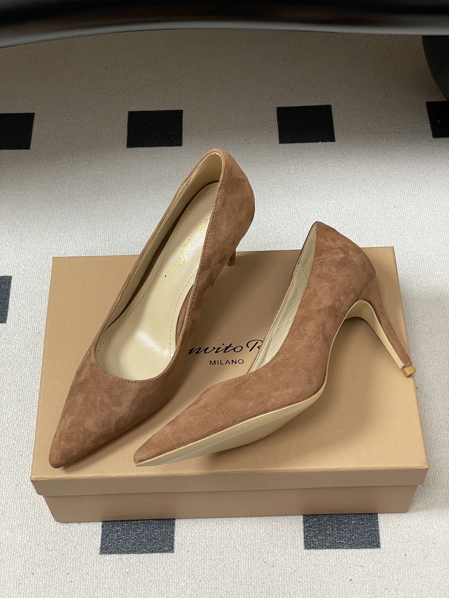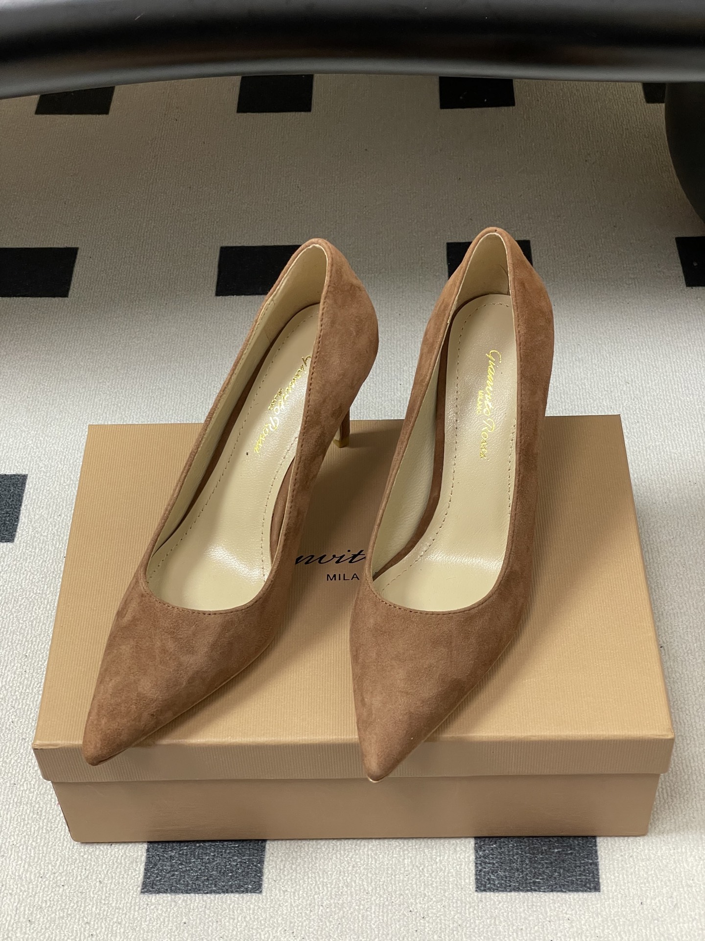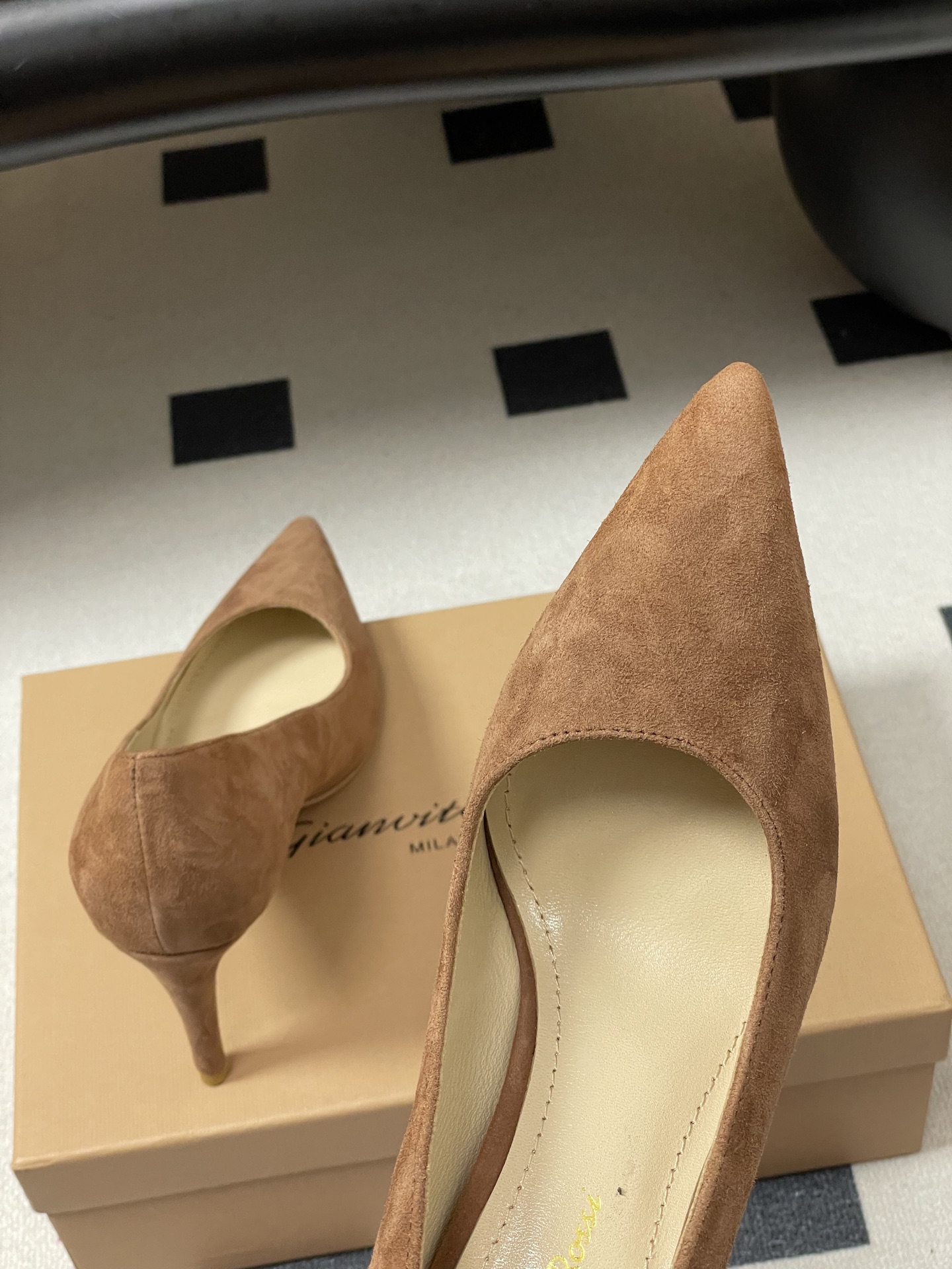 这款鞋子是AAAAA 1:1 质量 (非常棒). 使用了和原版一模一样的材料. 商标部分也保持了和Gianvito Rossi一样. 图片拍摄是实物鞋子拍摄, 您所收到的实物保证和我们图片一模一样.