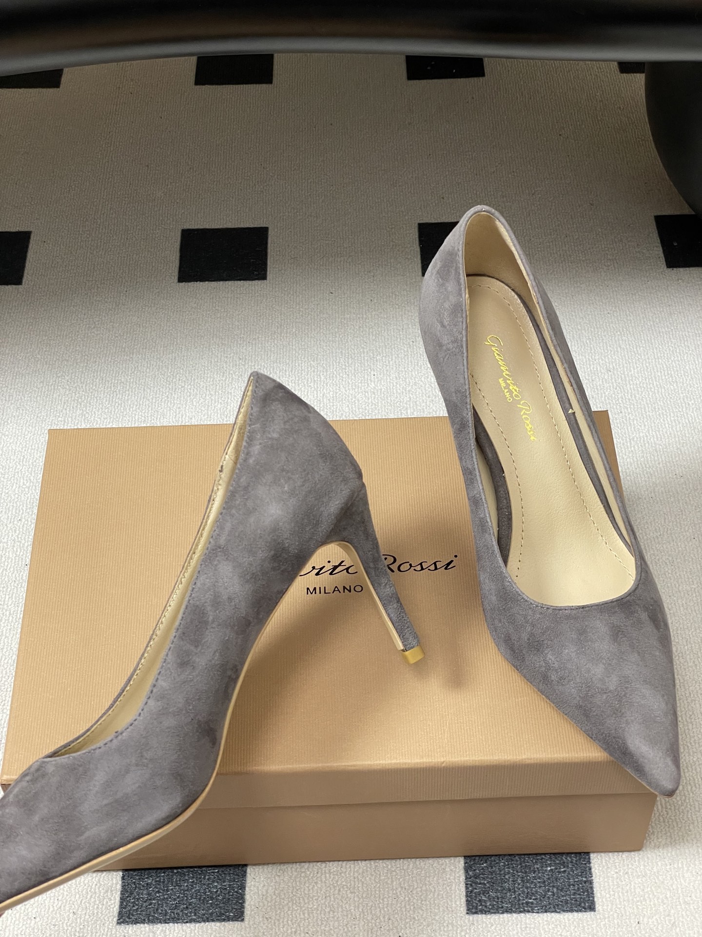 这款鞋子是AAAAA 1:1 质量 (非常棒). 使用了和原版一模一样的材料. 商标部分也保持了和Gianvito Rossi一样. 图片拍摄是实物鞋子拍摄, 您所收到的实物保证和我们图片一模一样.