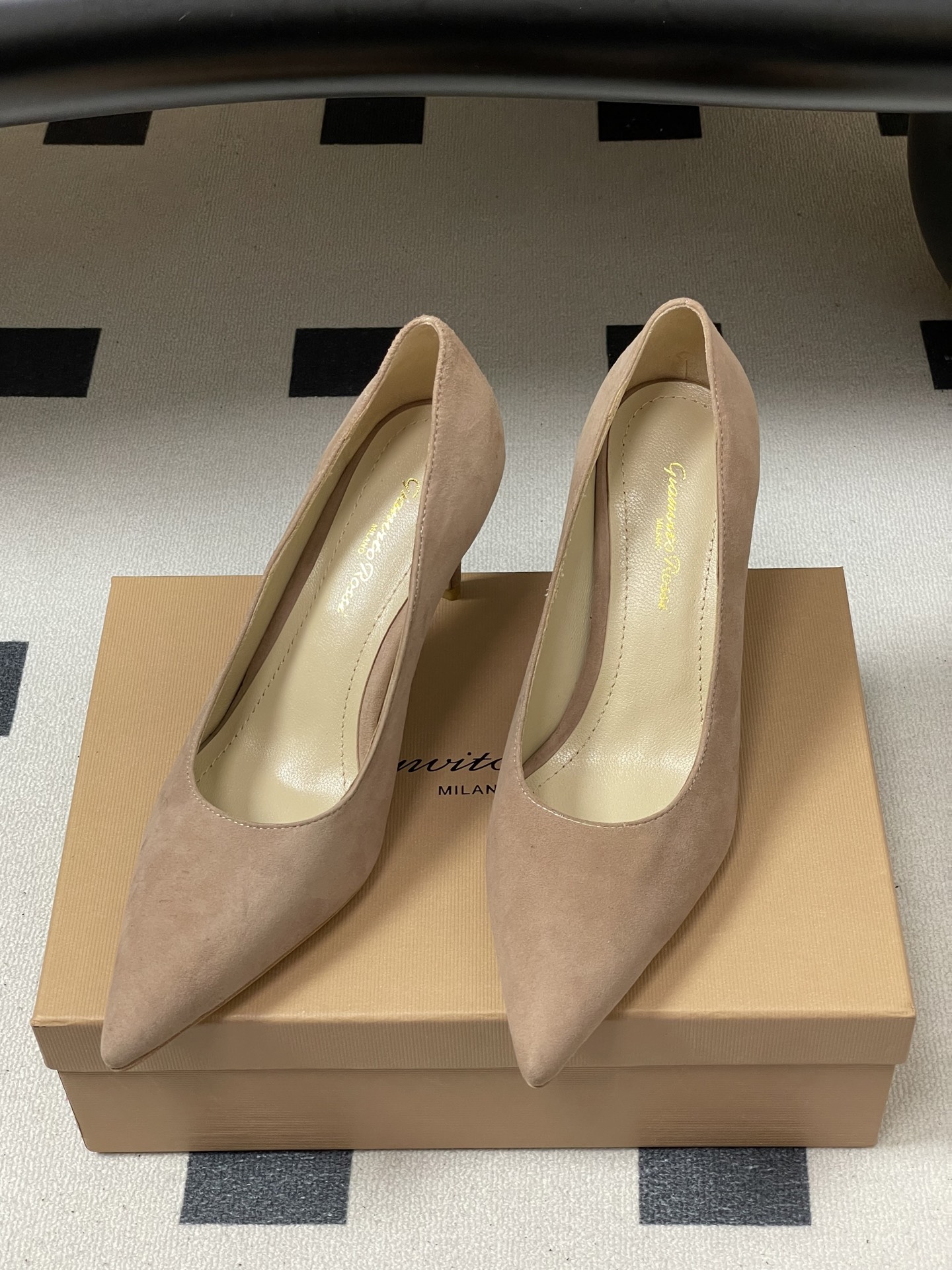 这款鞋子是AAAAA 1:1 质量 (非常棒). 使用了和原版一模一样的材料. 商标部分也保持了和Gianvito Rossi一样. 图片拍摄是实物鞋子拍摄, 您所收到的实物保证和我们图片一模一样.