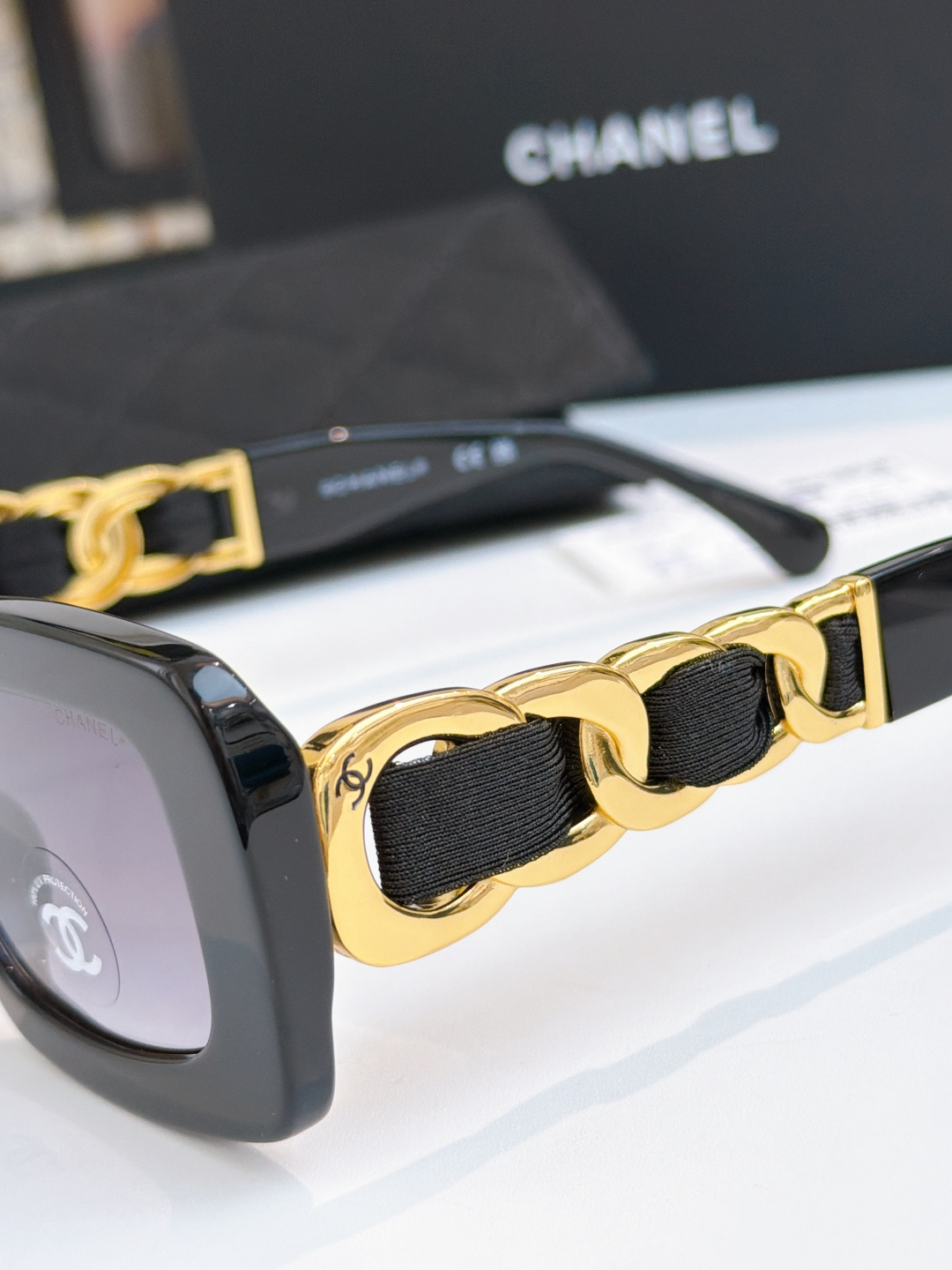 这款太阳眼镜是AAAAA 1:1 质量 (非常棒). 使用了和原版一模一样的材料. 商标部分也保持了和香奈儿/Chanel一样. 图片拍摄是实物太阳眼镜拍摄, 您所收到的实物保证和我们图片一模一样.