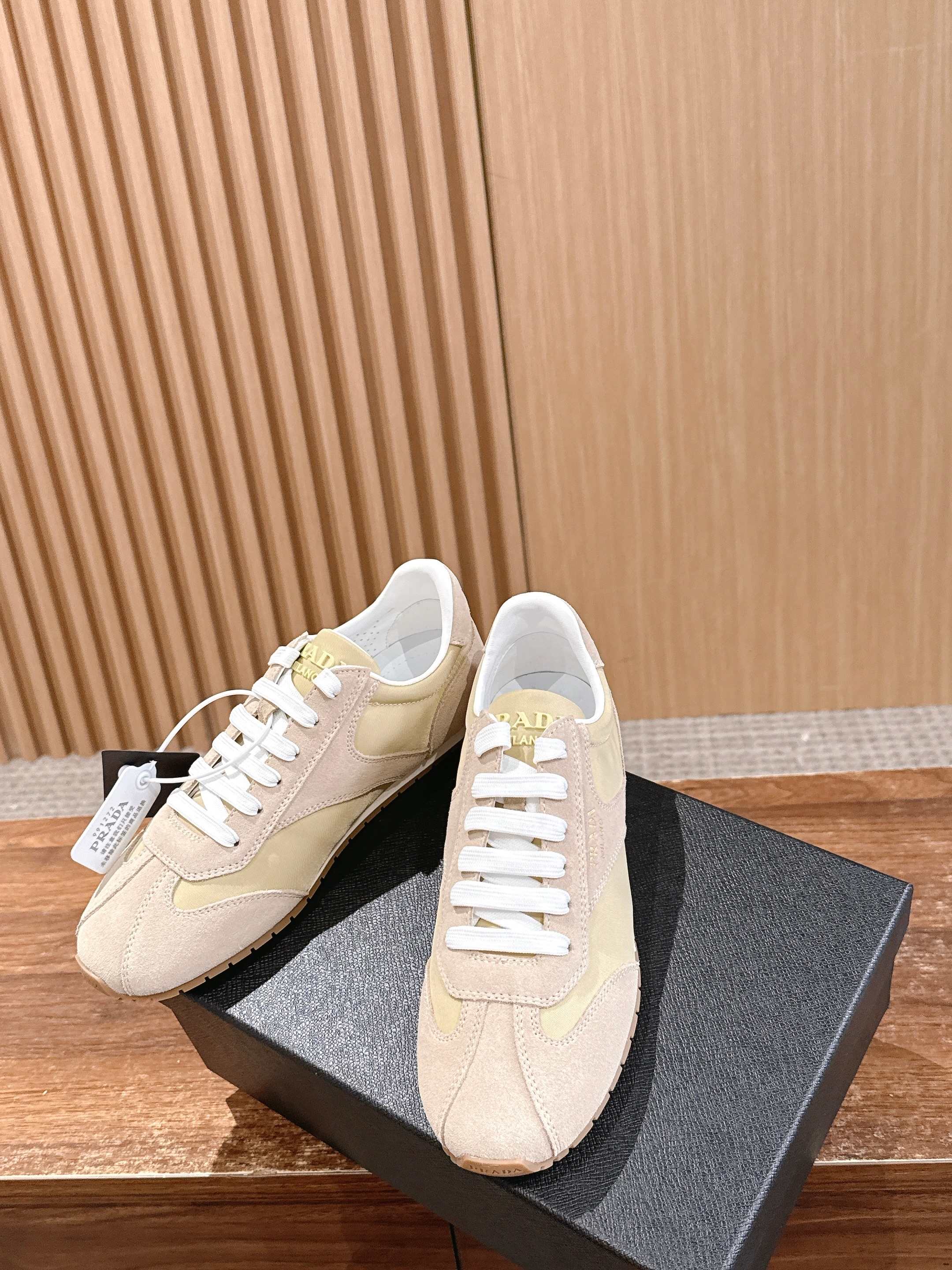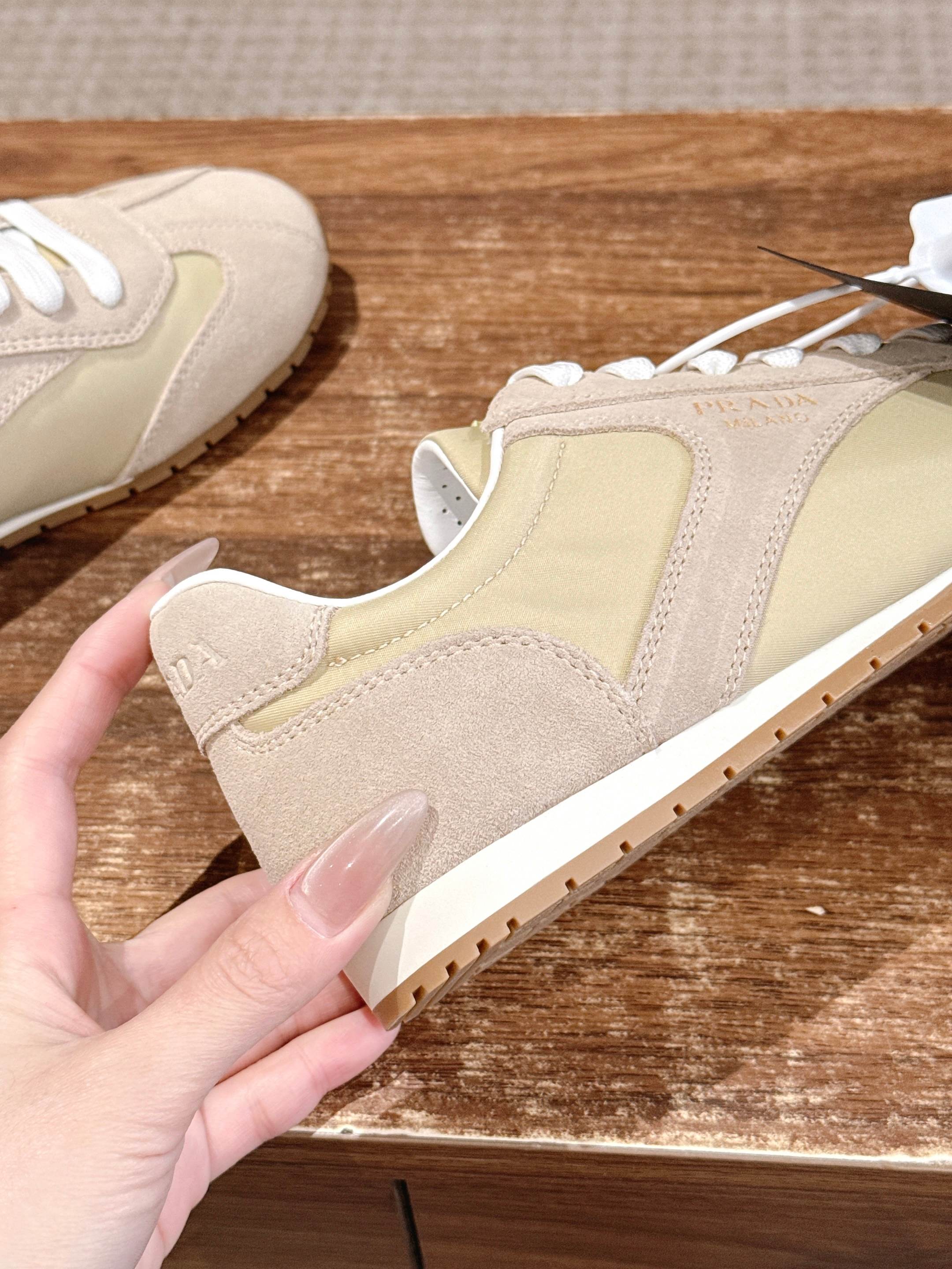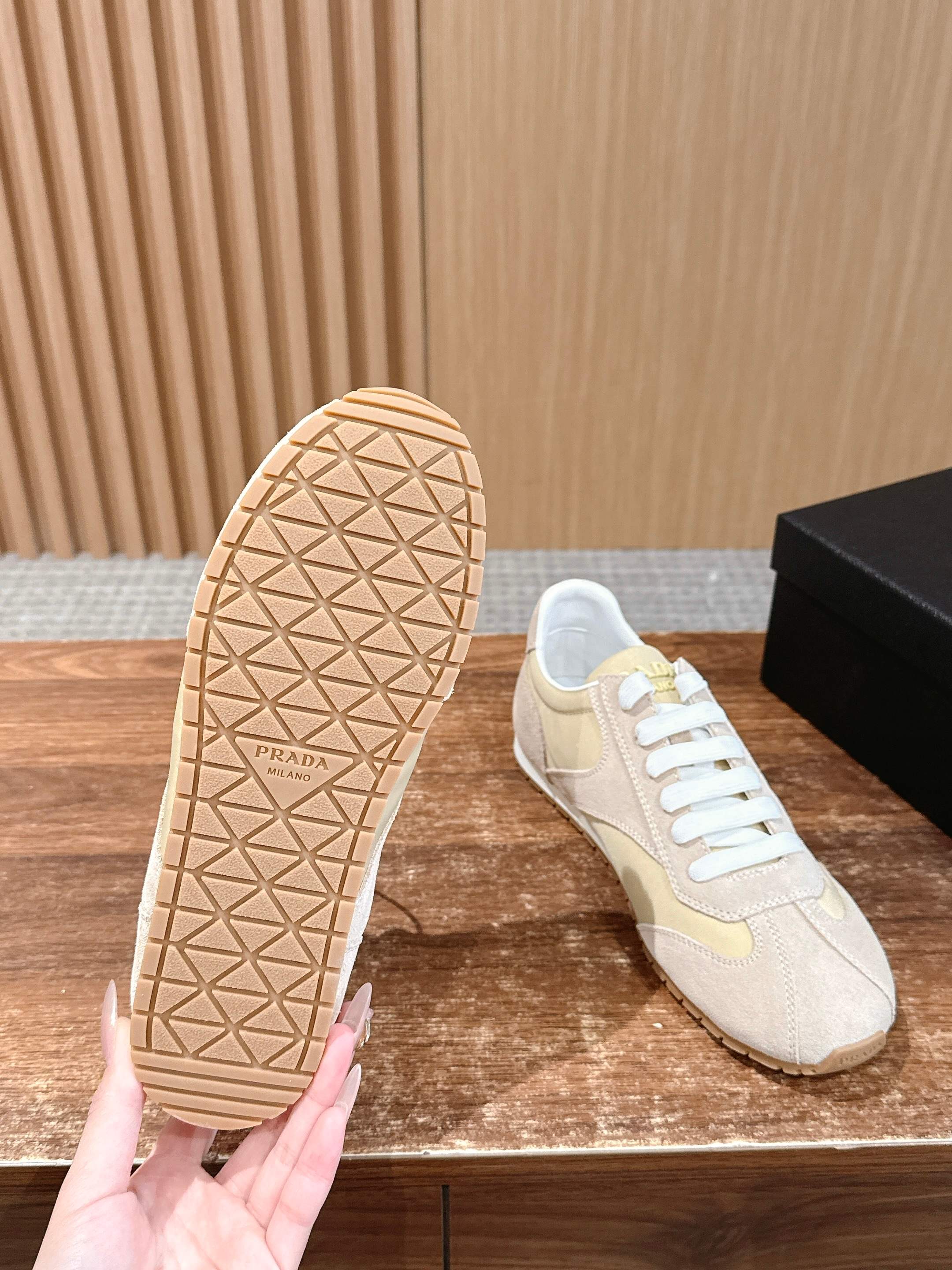 这款鞋子是AAAAA 1:1 质量 (非常棒). 使用了和原版一模一样的材料. 商标部分也保持了和普拉达/Prada一样. 图片拍摄是实物鞋子拍摄, 您所收到的实物保证和我们图片一模一样.