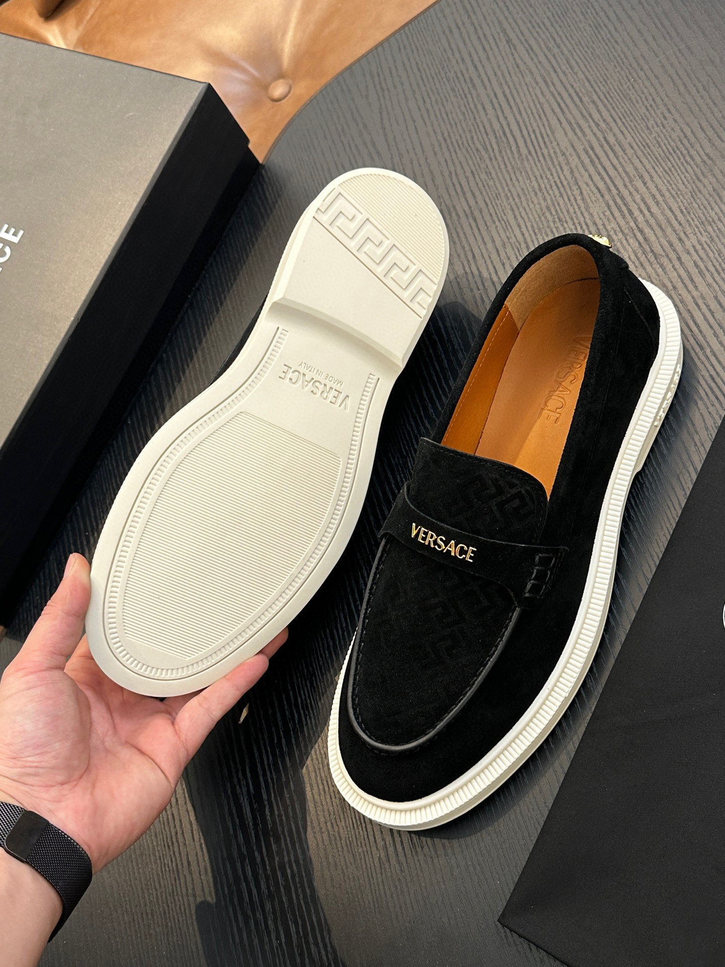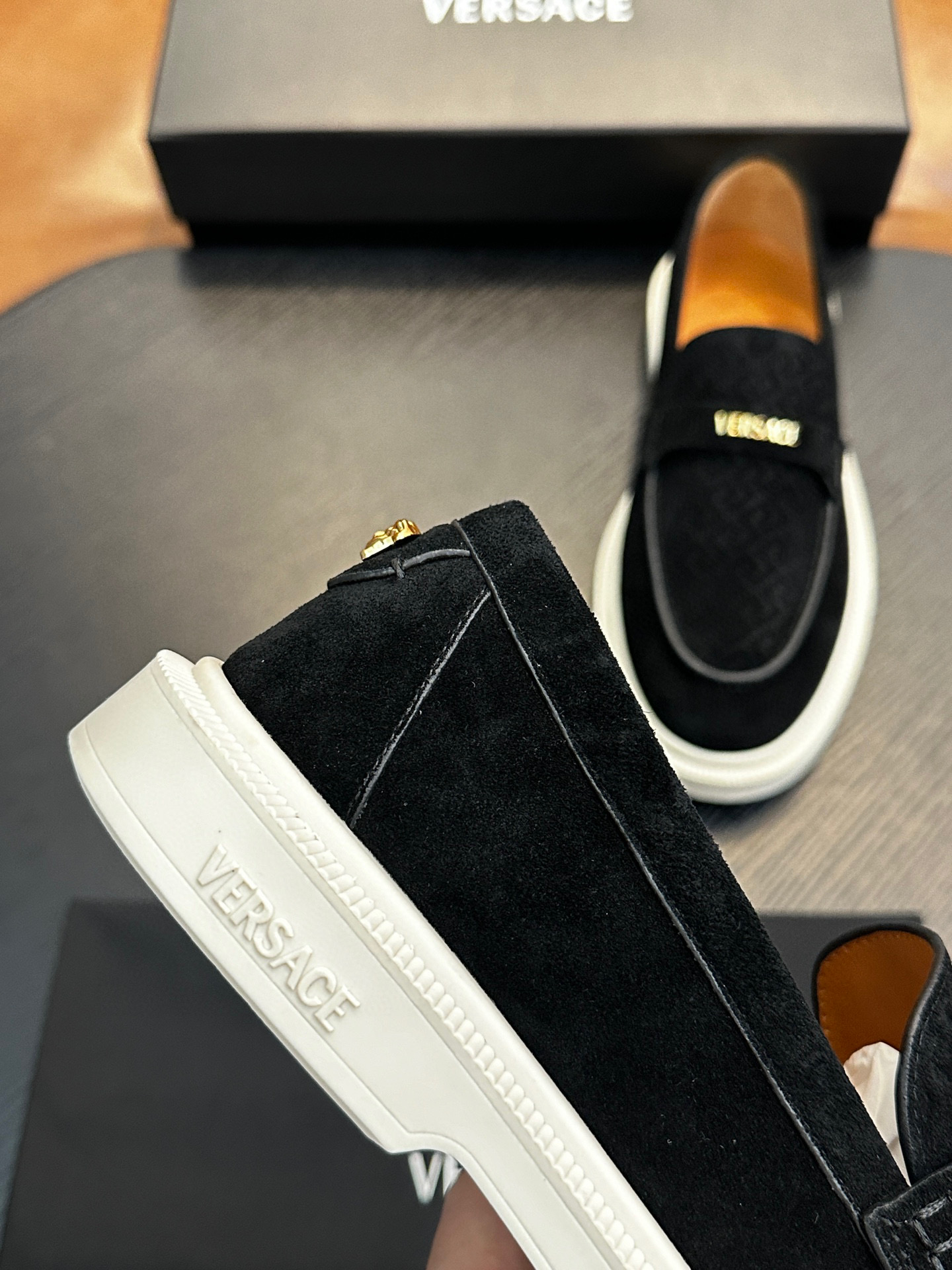 这款鞋子是AAAAA 1:1 质量 (非常棒). 使用了和原版一模一样的材料. 商标部分也保持了和范思哲/Versace一样. 图片拍摄是实物鞋子拍摄, 您所收到的实物保证和我们图片一模一样.
