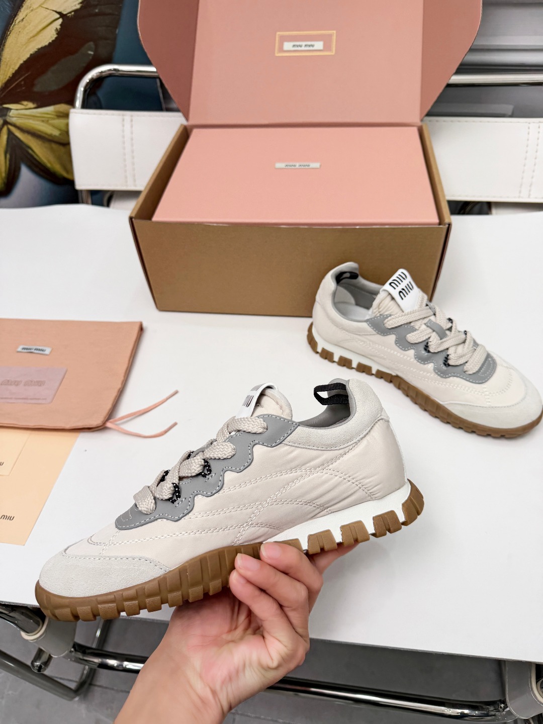 这款鞋子是AAAAA 1:1 质量 (非常棒). 使用了和原版一模一样的材料. 商标部分也保持了和缪缪/Miu Miu一样. 图片拍摄是实物鞋子拍摄, 您所收到的实物保证和我们图片一模一样.