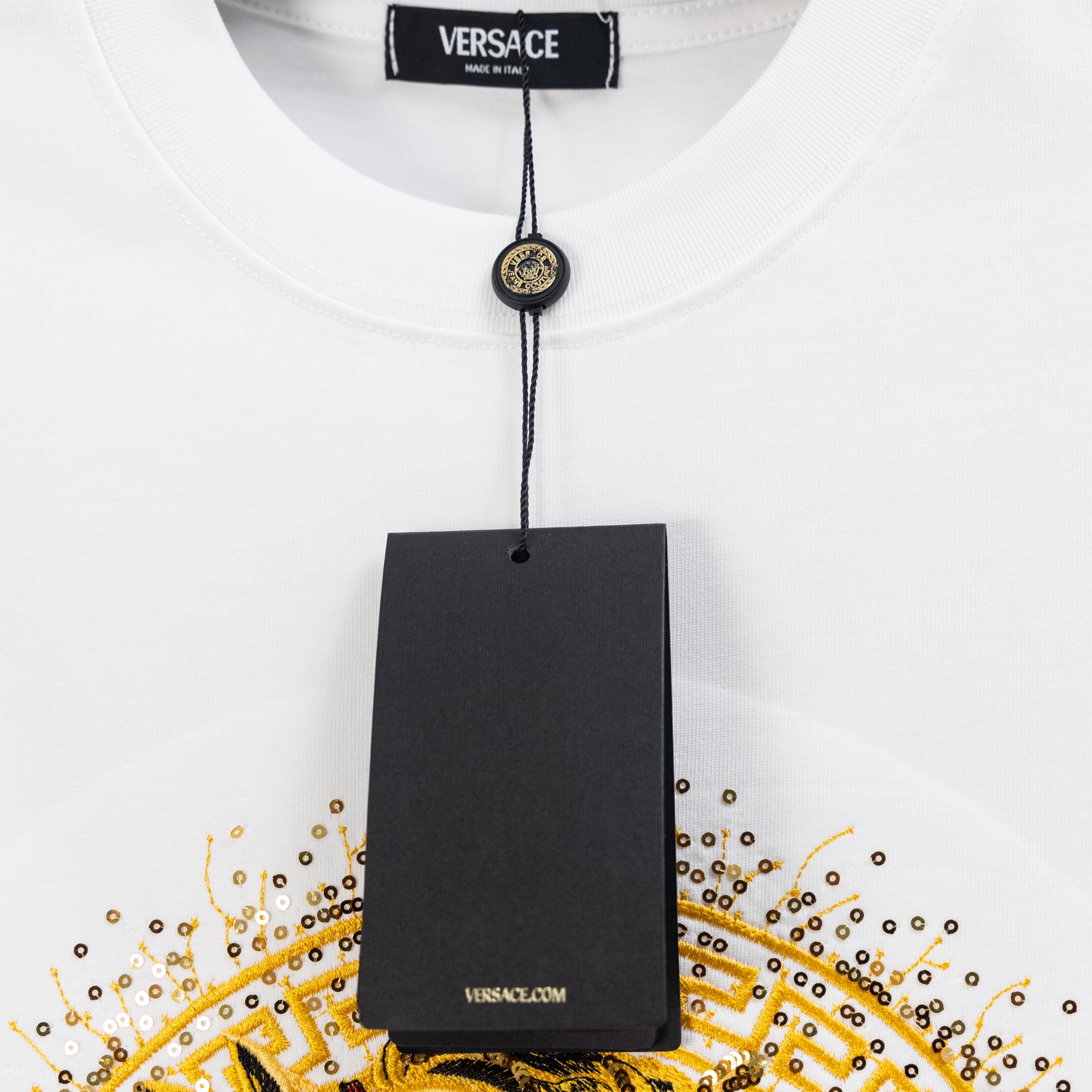 这款衣服是AAAAA 1:1 质量 (非常棒). 使用了和原版一模一样的材料. 商标部分也保持了和范思哲/Versace一样. 图片拍摄是实物衣服拍摄, 您所收到的实物保证和我们图片一模一样.