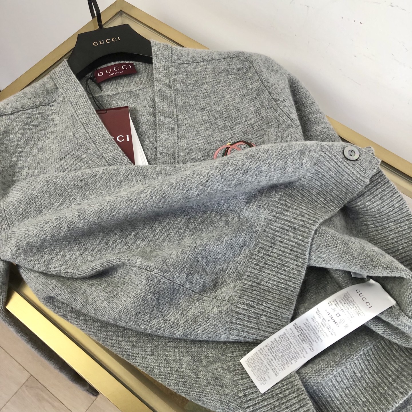 这款衣服是AAAAA 1:1 质量 (非常棒). 使用了和原版一模一样的材料. 商标部分也保持了和古奇/Gucci一样. 图片拍摄是实物衣服拍摄, 您所收到的实物保证和我们图片一模一样.