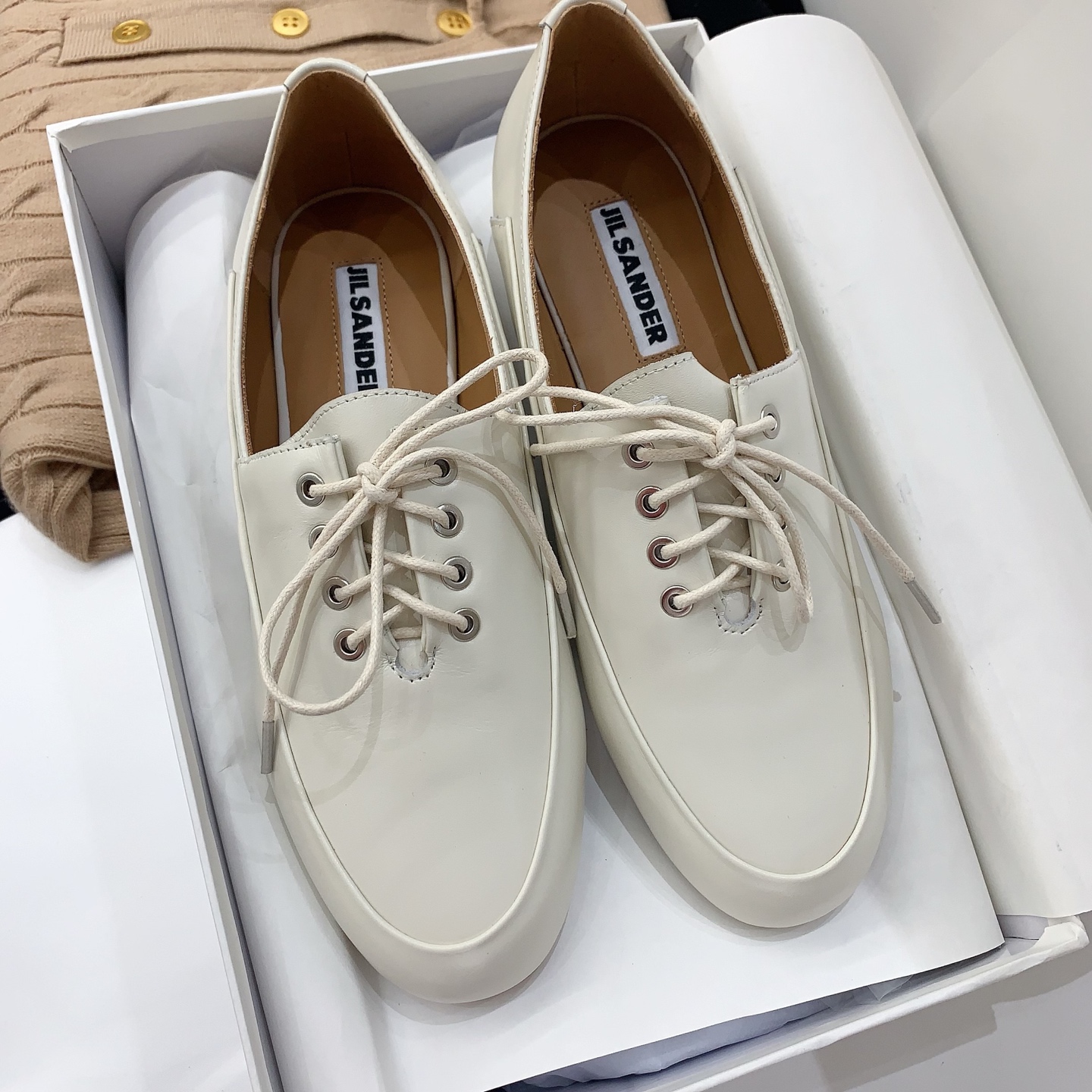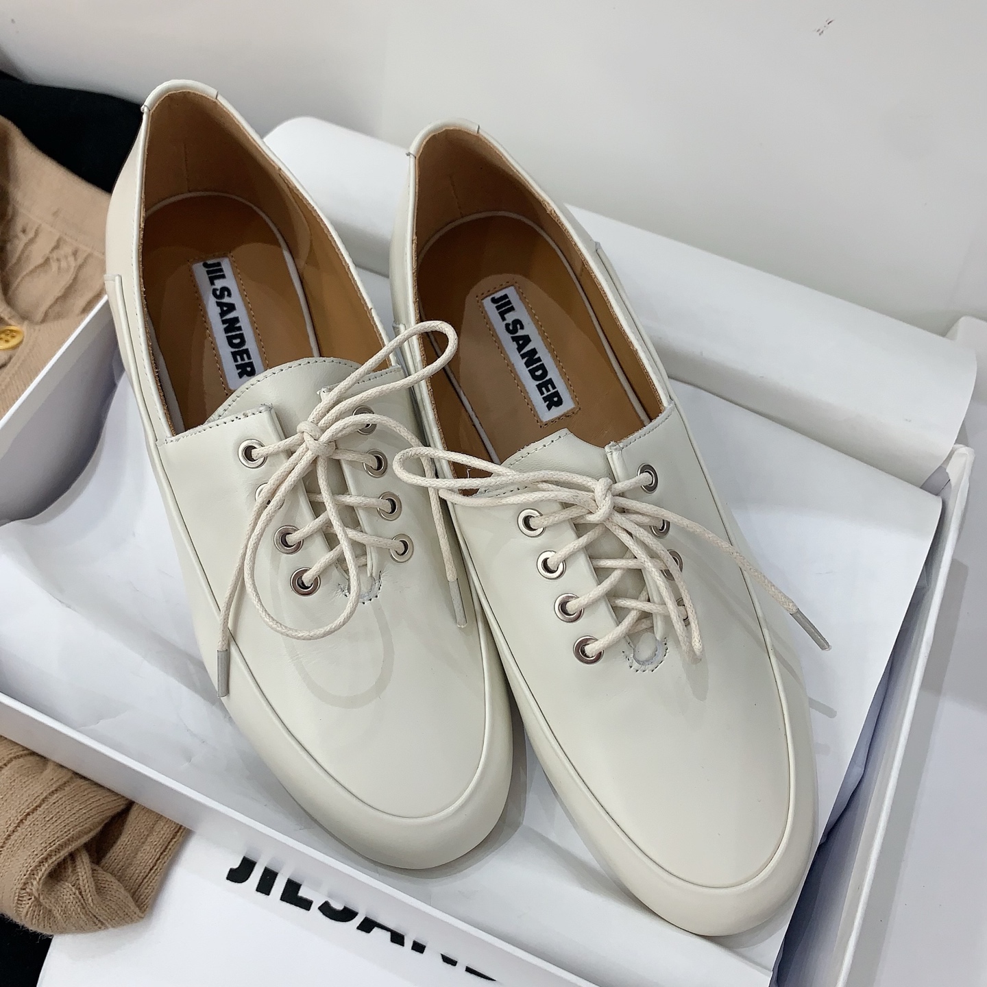 这款鞋子是AAAAA 1:1 质量 (非常棒). 使用了和原版一模一样的材料. 商标部分也保持了和Jil Sander一样. 图片拍摄是实物鞋子拍摄, 您所收到的实物保证和我们图片一模一样.