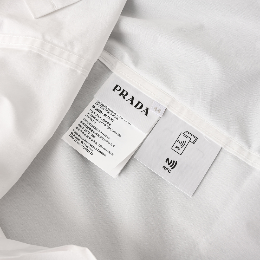 这款衣服是AAAAA 1:1 质量 (非常棒). 使用了和原版一模一样的材料. 商标部分也保持了和普拉达/Prada一样. 图片拍摄是实物衣服拍摄, 您所收到的实物保证和我们图片一模一样.