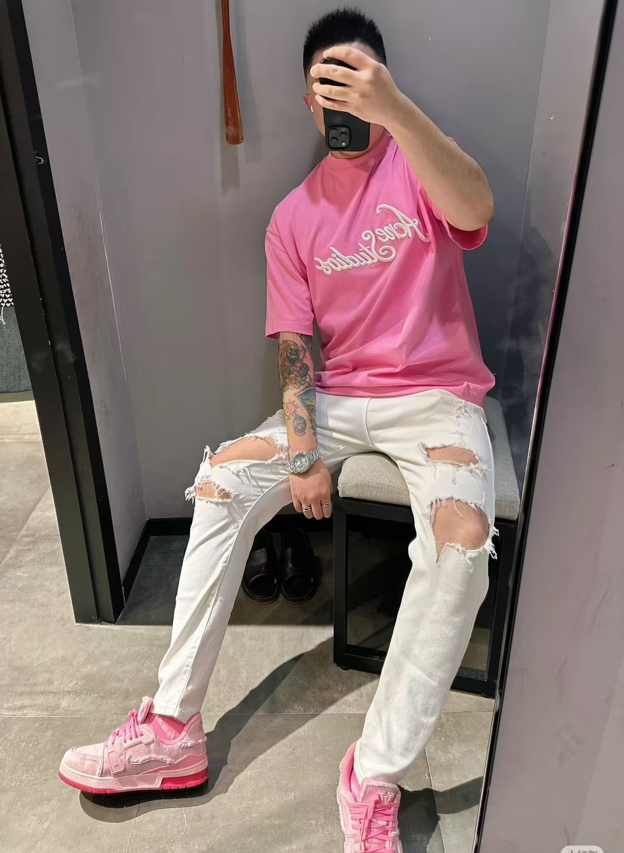 这款衣服是AAAAA 1:1 质量 (非常棒). 使用了和原版一模一样的材料. 商标部分也保持了和Acne一样. 图片拍摄是实物衣服拍摄, 您所收到的实物保证和我们图片一模一样.