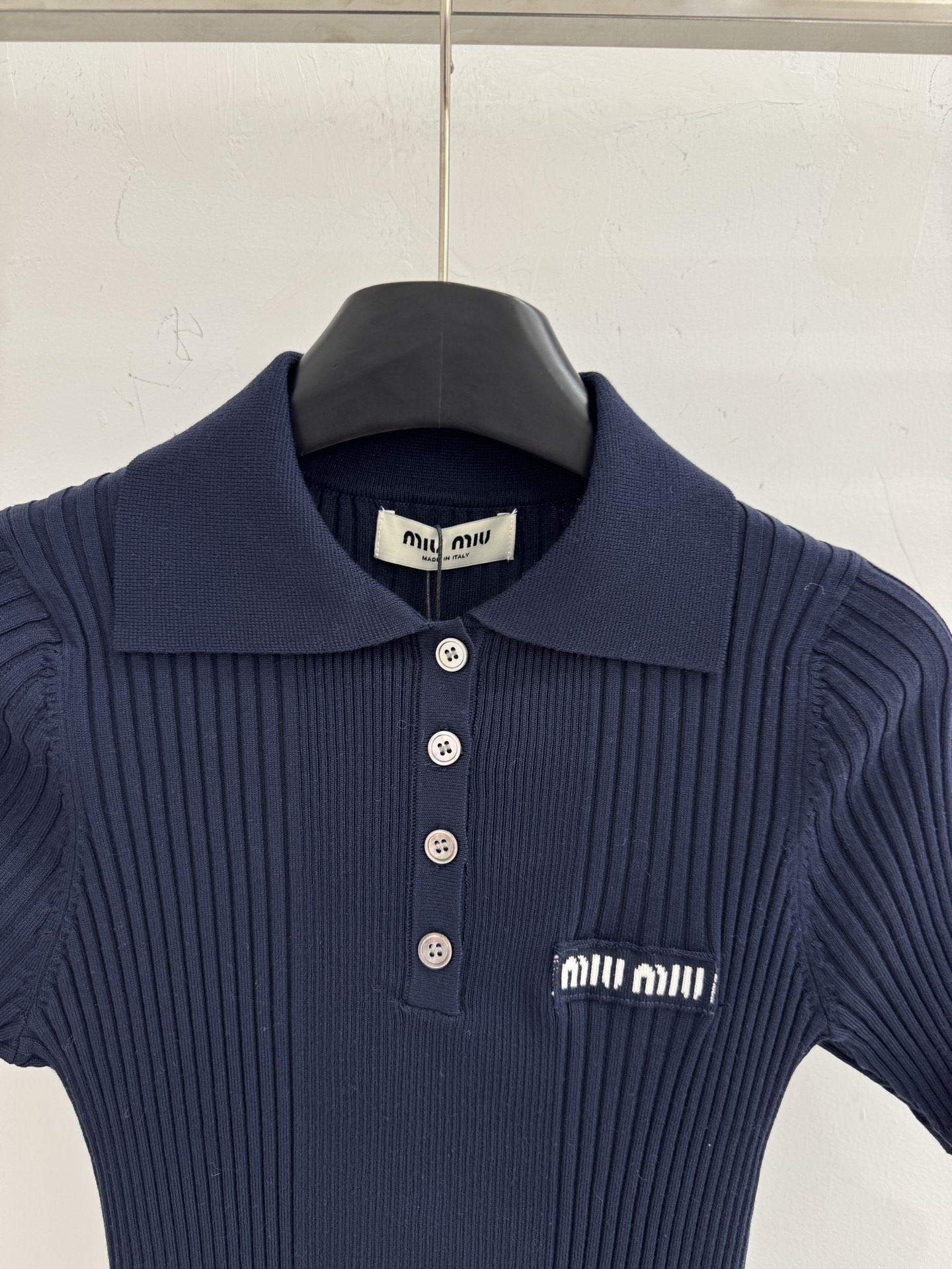 这款衣服是AAAAA 1:1 质量 (非常棒). 使用了和原版一模一样的材料. 商标部分也保持了和缪缪/Miu Miu一样. 图片拍摄是实物衣服拍摄, 您所收到的实物保证和我们图片一模一样.