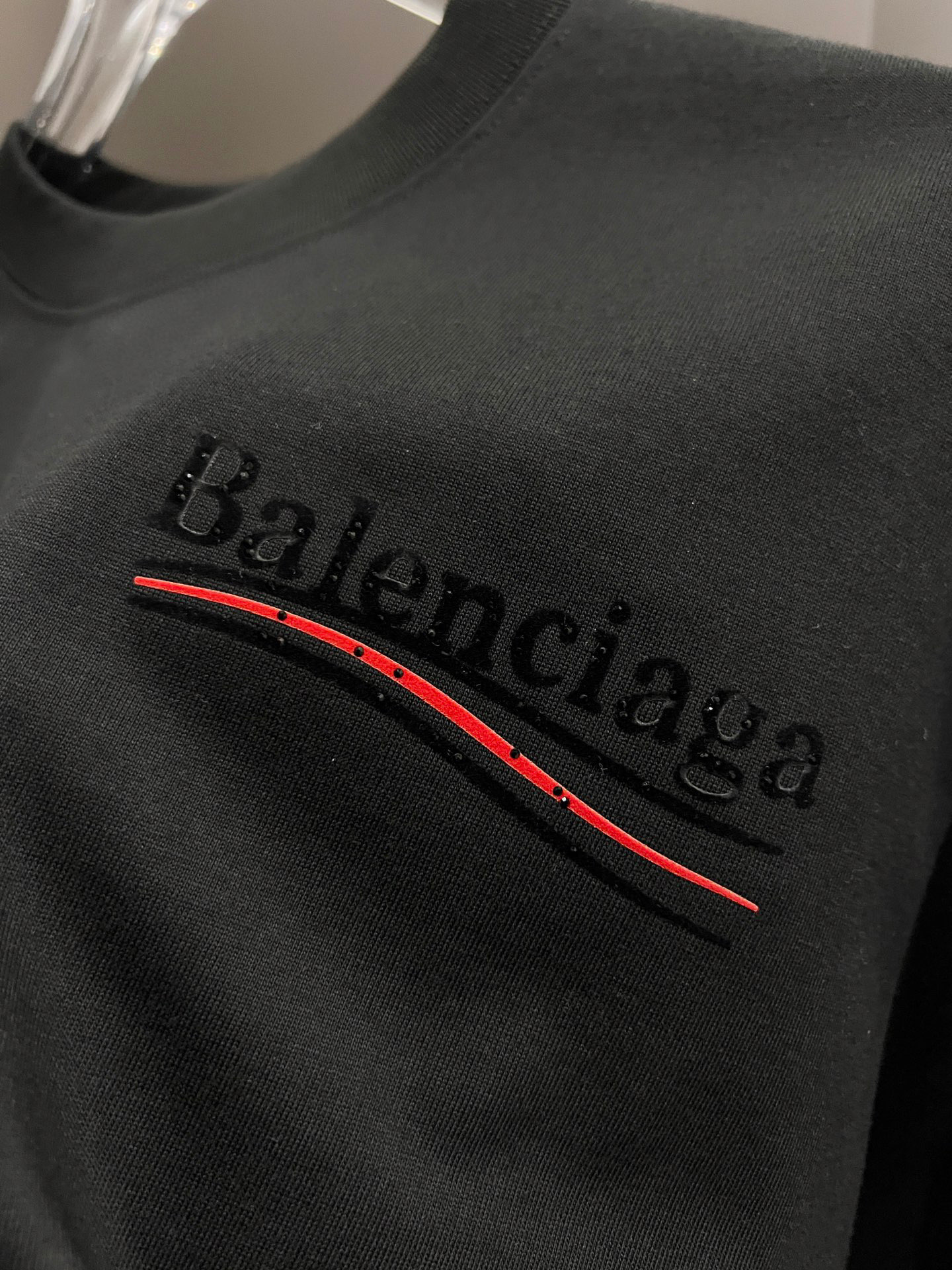 这款衣服是AAAAA 1:1 质量 (非常棒). 使用了和原版一模一样的材料. 商标部分也保持了和巴黎世家/Balenciaga一样. 图片拍摄是实物衣服拍摄, 您所收到的实物保证和我们图片一模一样.