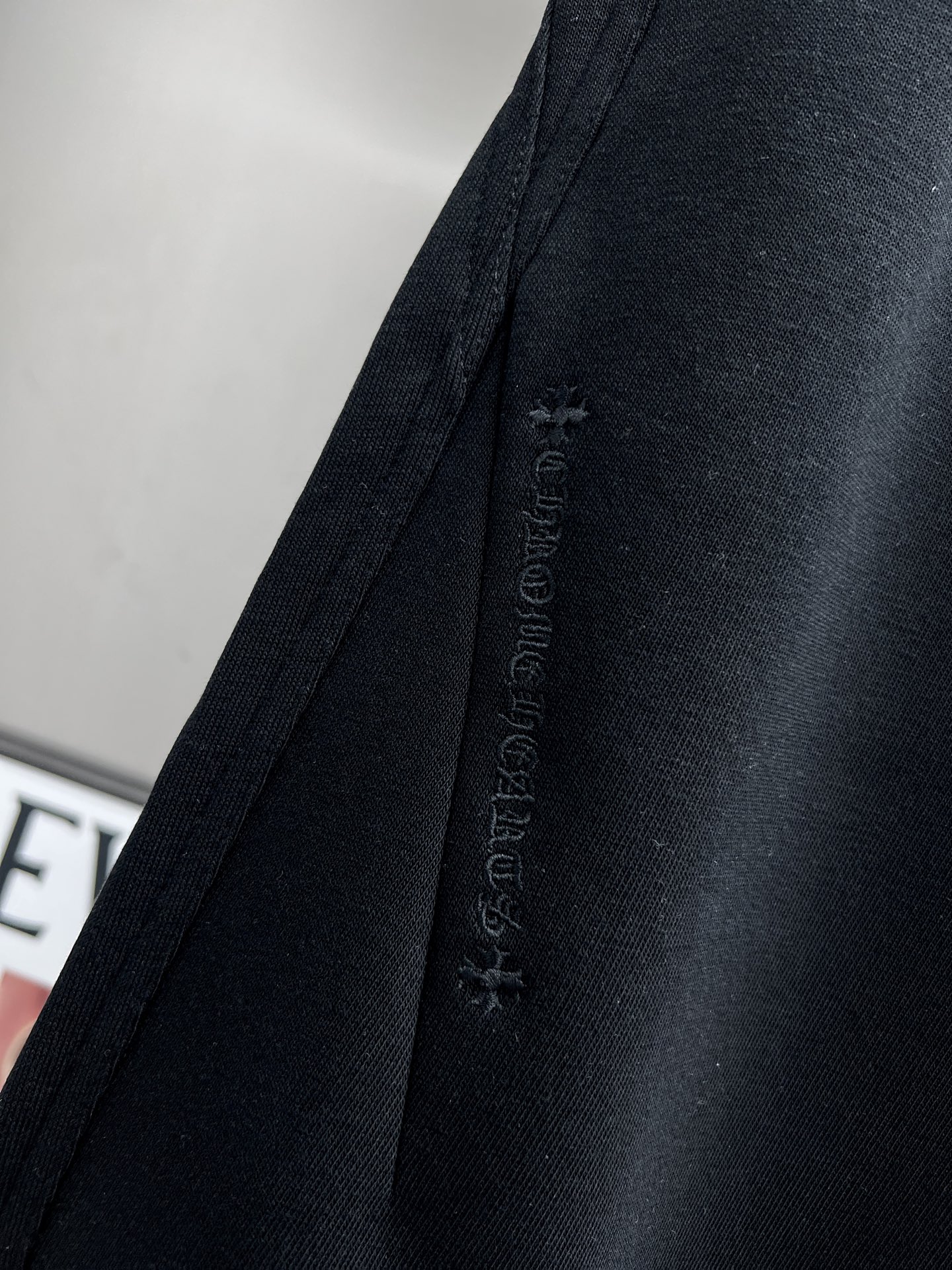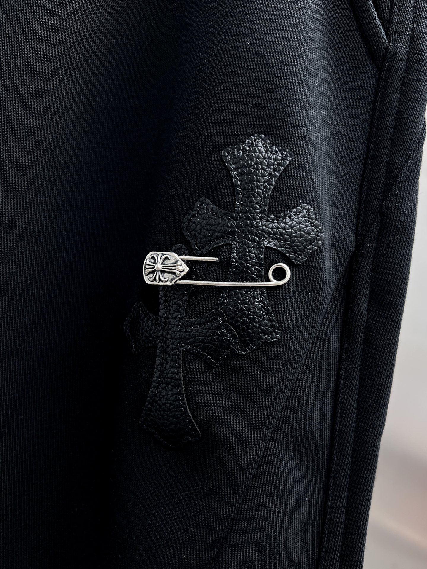 这款衣服是AAAAA 1:1 质量 (非常棒). 使用了和原版一模一样的材料. 商标部分也保持了和克罗心/Chrome Hearts一样. 图片拍摄是实物衣服拍摄, 您所收到的实物保证和我们图片一模一样.