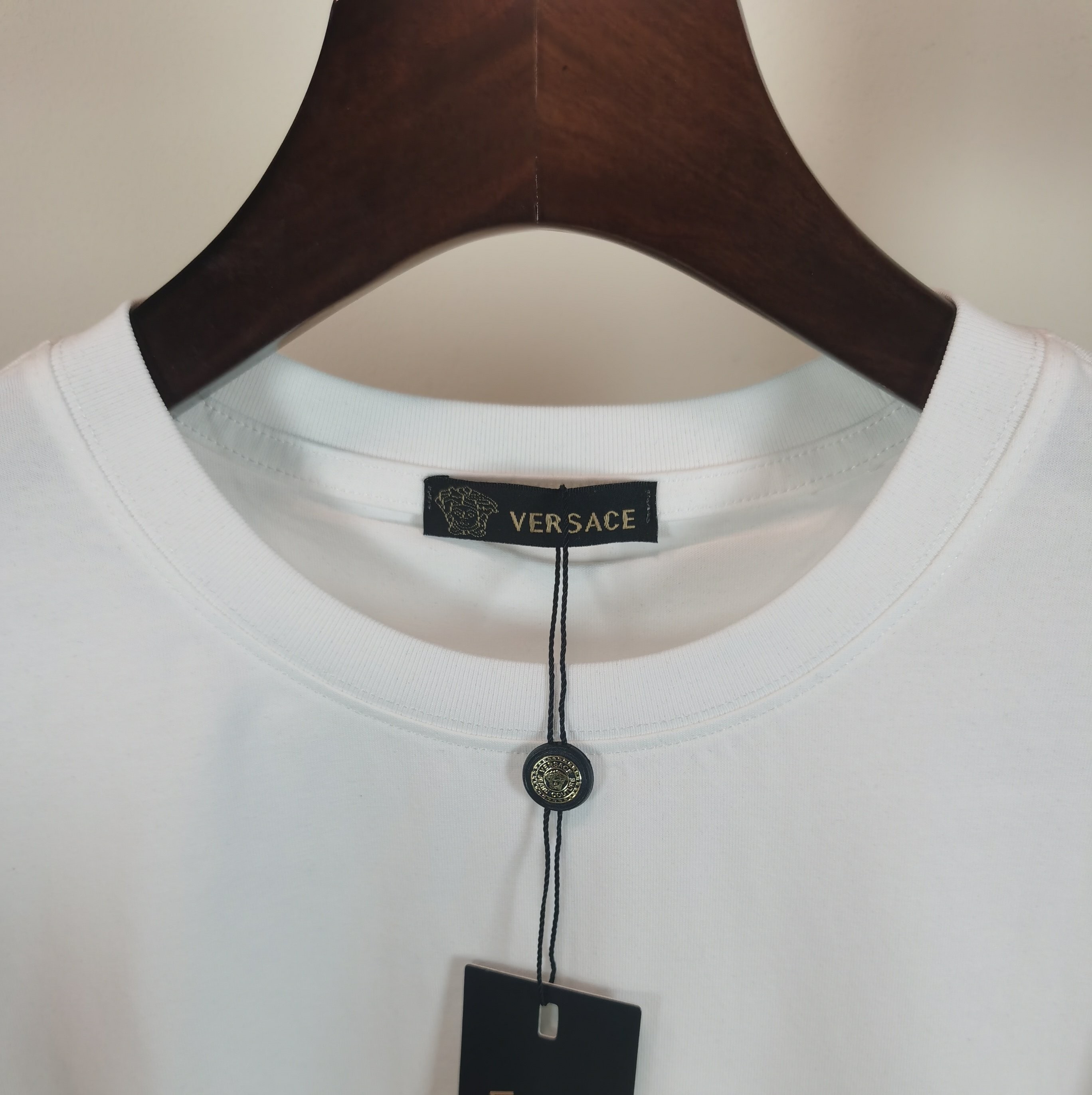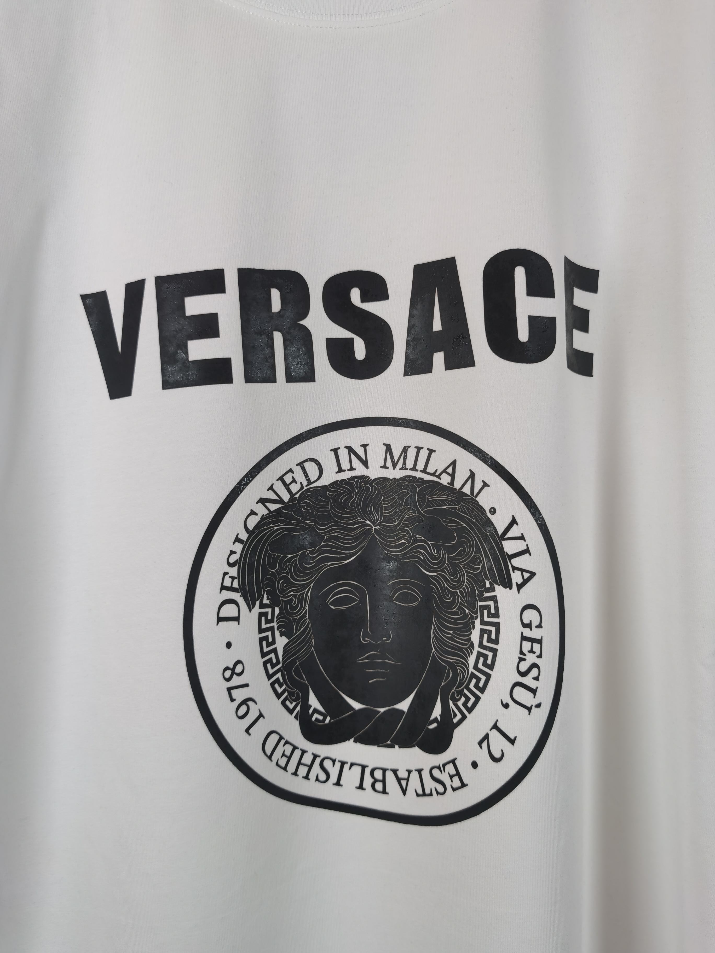 这款衣服是AAAAA 1:1 质量 (非常棒). 使用了和原版一模一样的材料. 商标部分也保持了和范思哲/Versace一样. 图片拍摄是实物衣服拍摄, 您所收到的实物保证和我们图片一模一样.