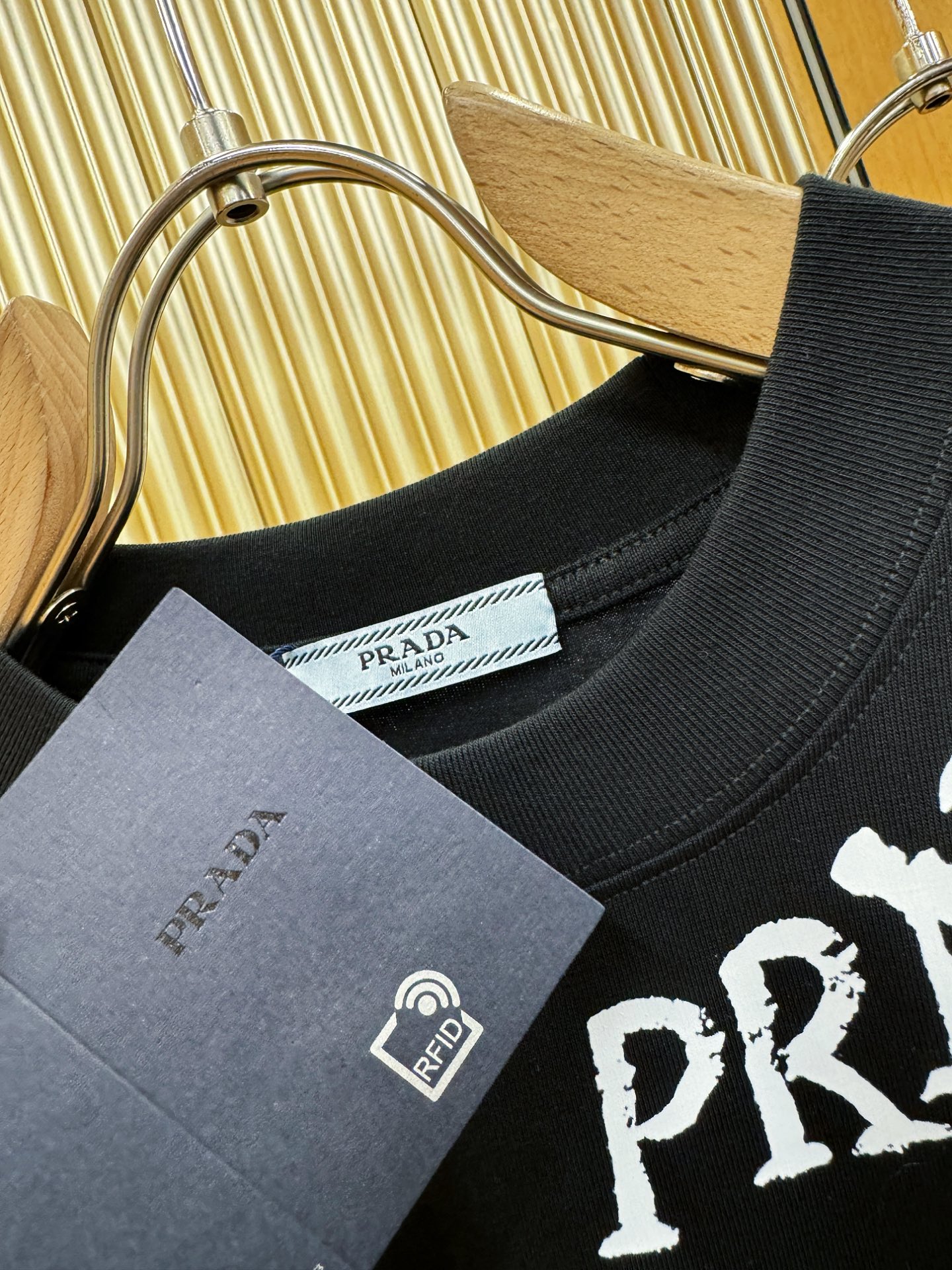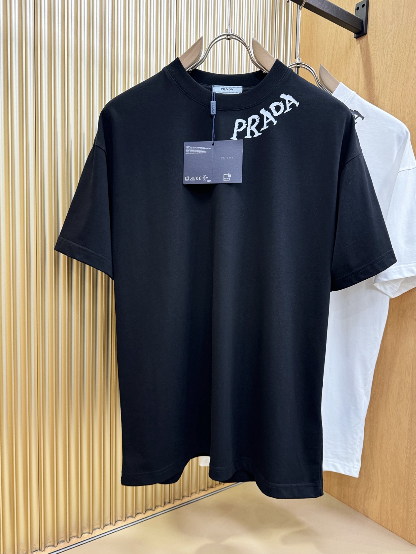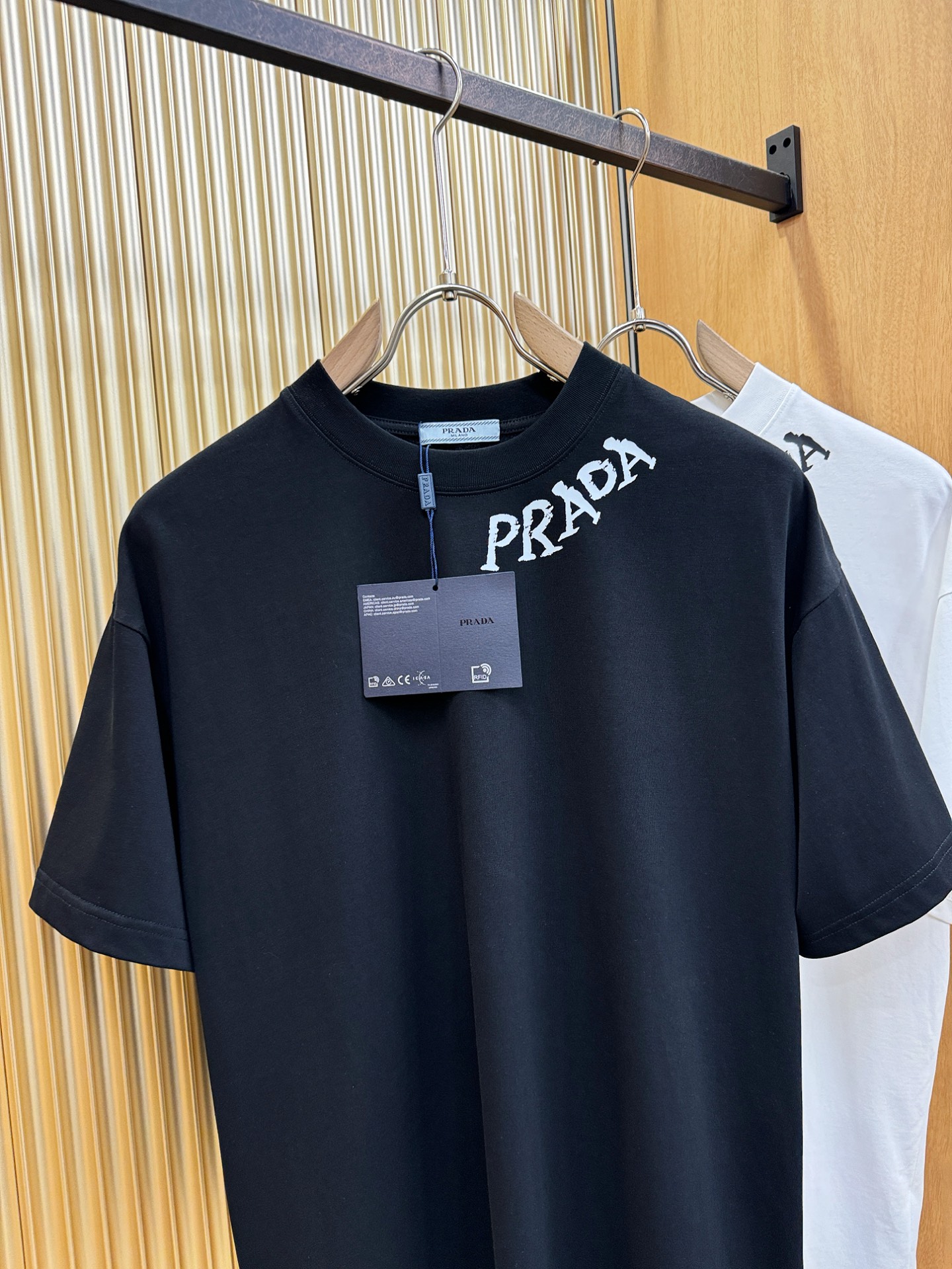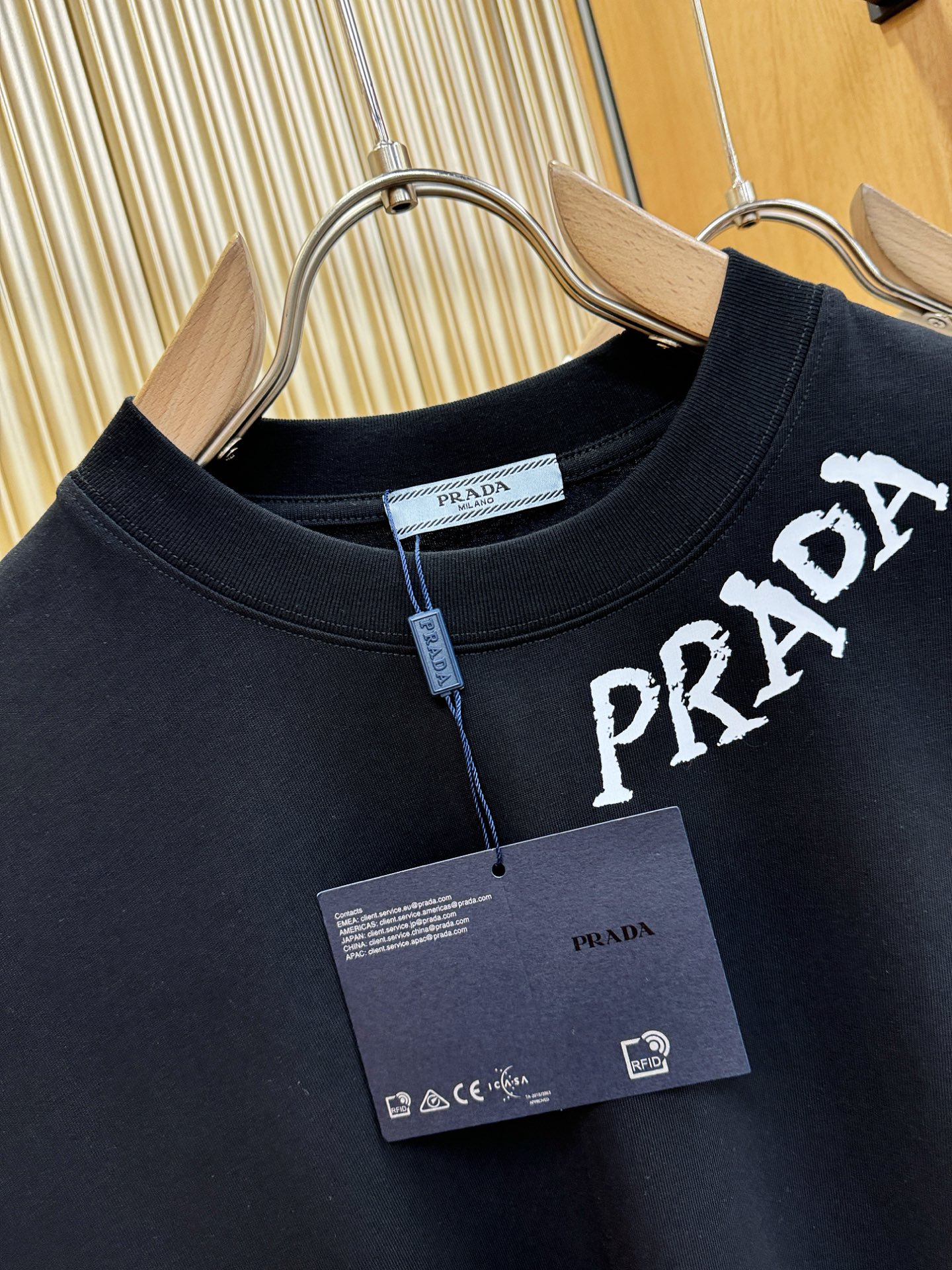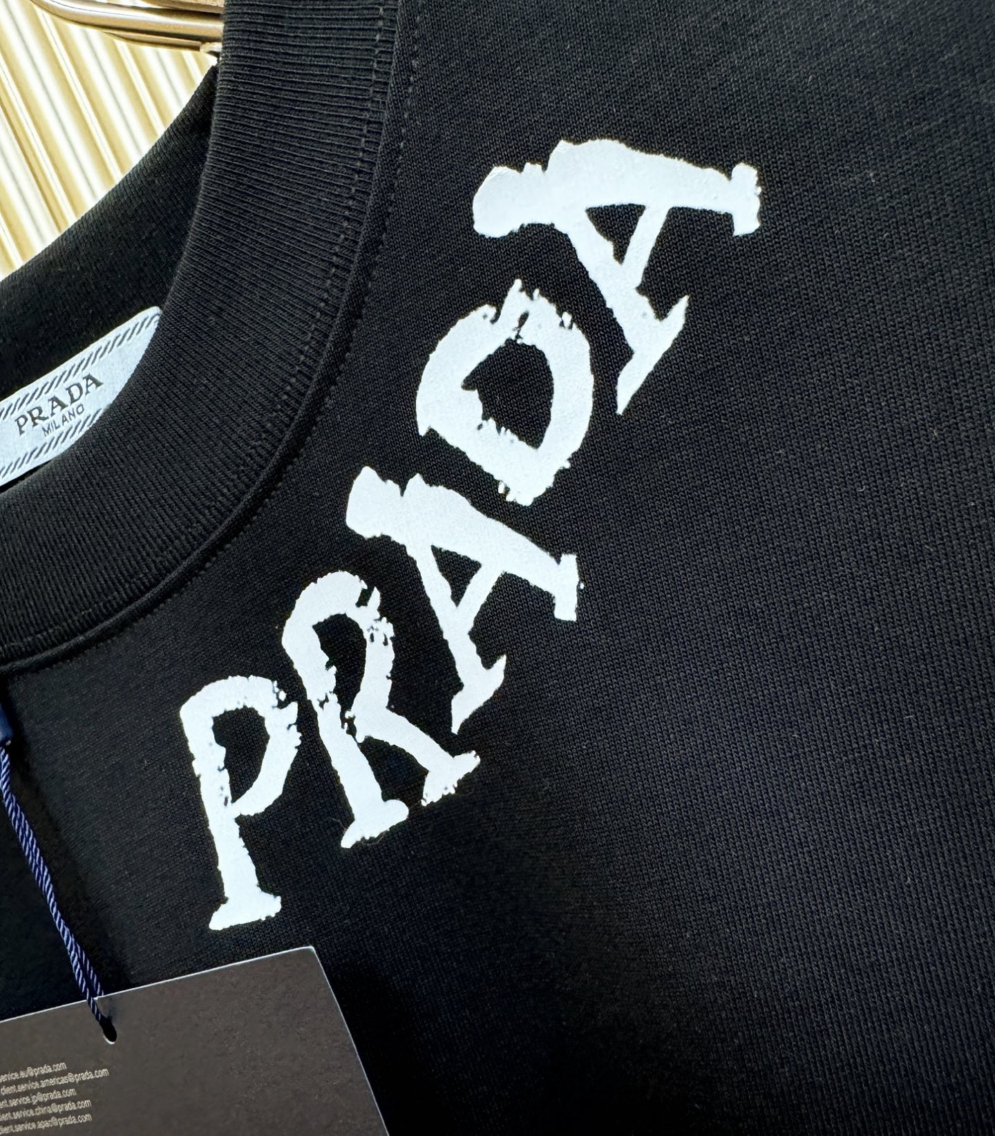 这款衣服是AAAAA 1:1 质量 (非常棒). 使用了和原版一模一样的材料. 商标部分也保持了和普拉达/Prada一样. 图片拍摄是实物衣服拍摄, 您所收到的实物保证和我们图片一模一样.
