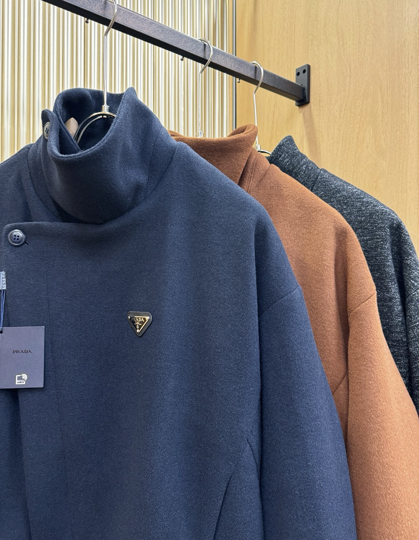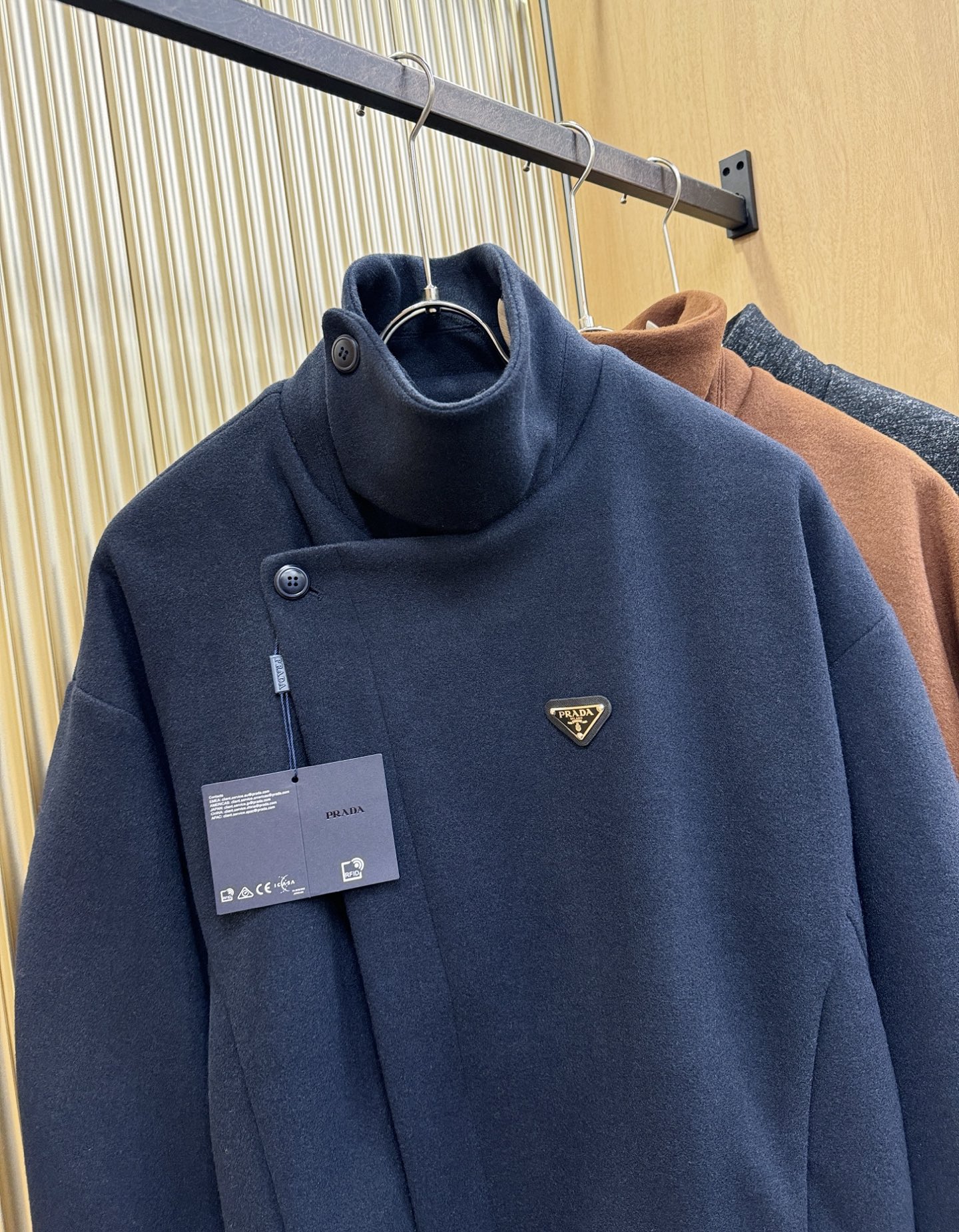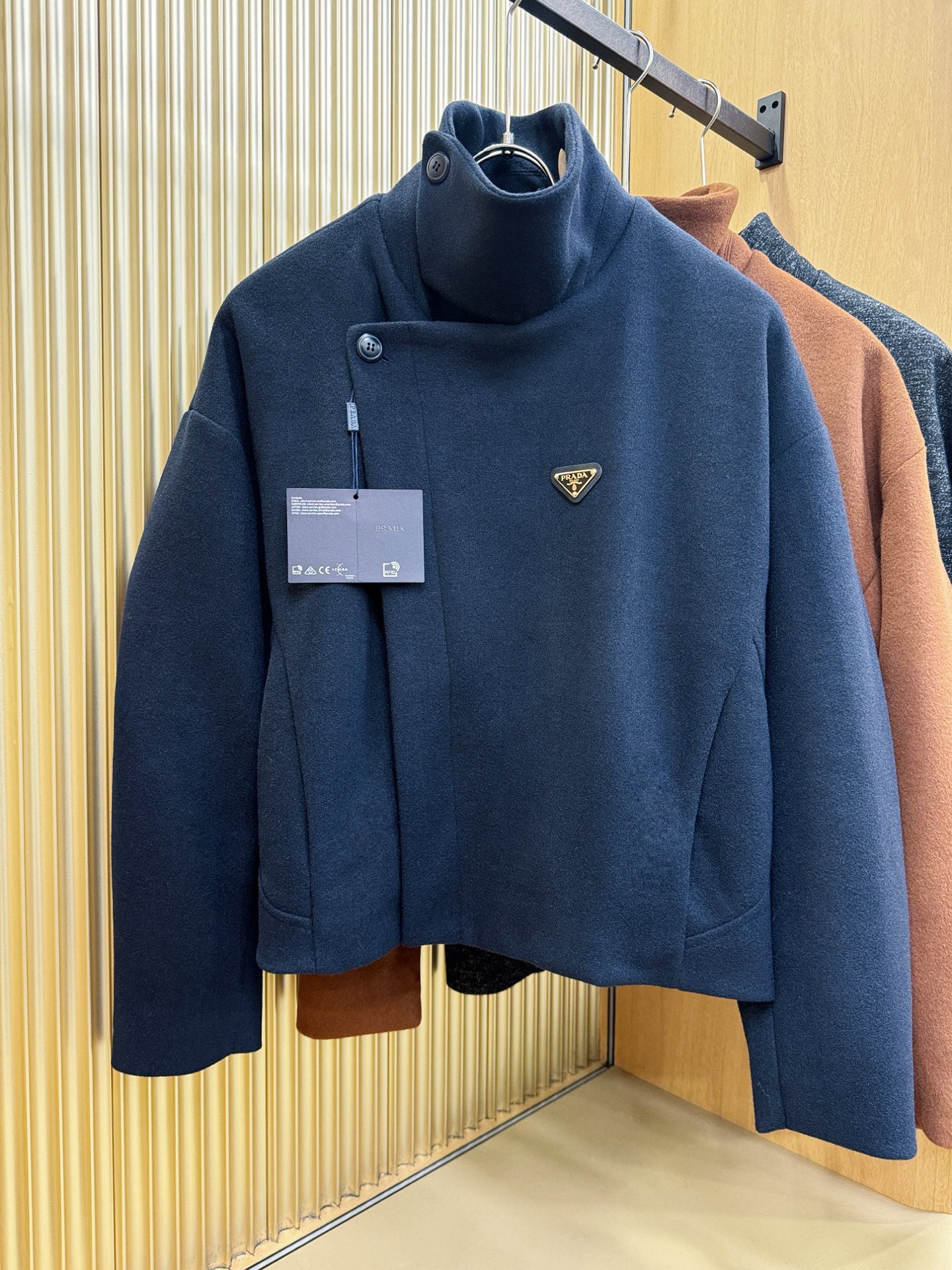 这款衣服是AAAAA 1:1 质量 (非常棒). 使用了和原版一模一样的材料. 商标部分也保持了和普拉达/Prada一样. 图片拍摄是实物衣服拍摄, 您所收到的实物保证和我们图片一模一样.
