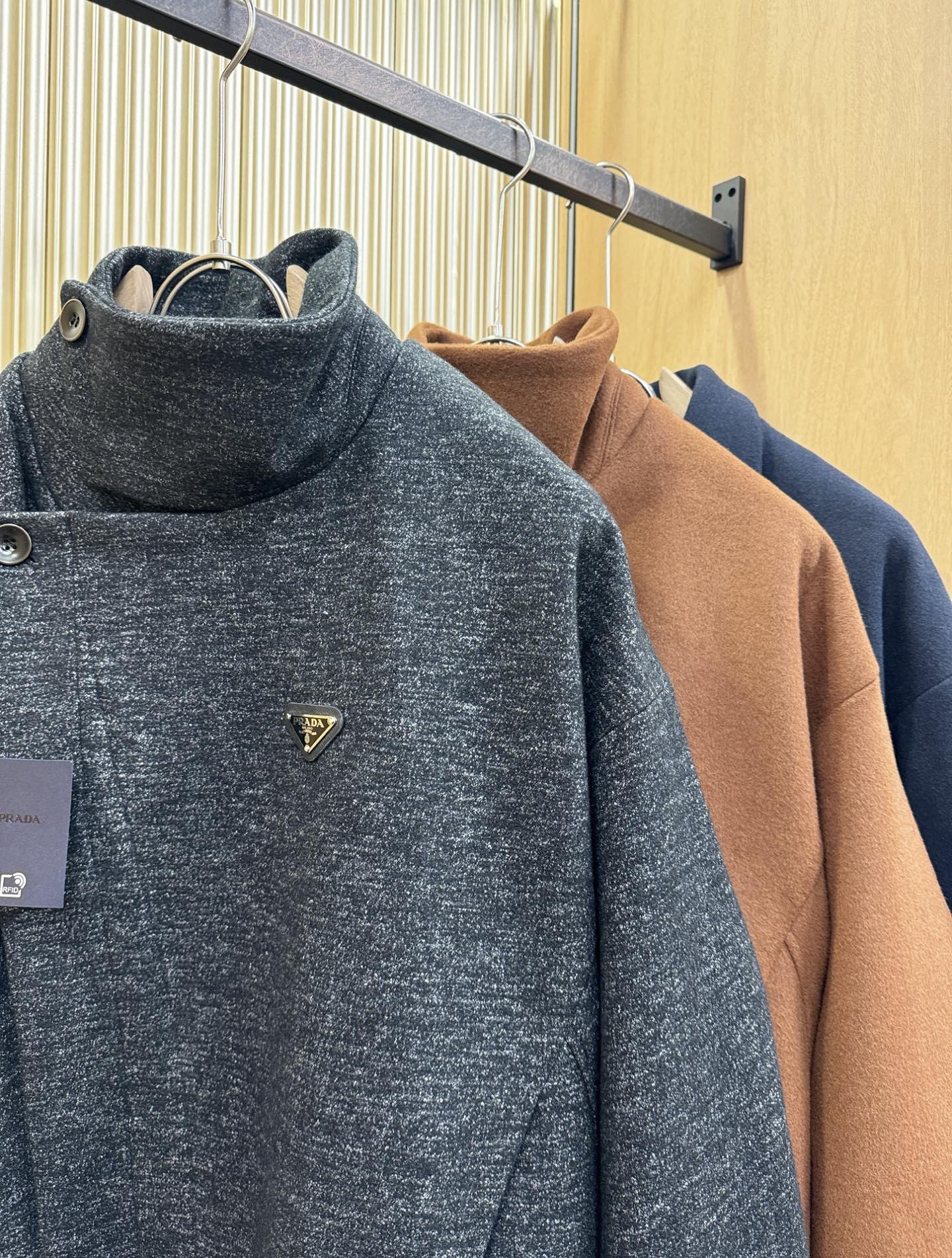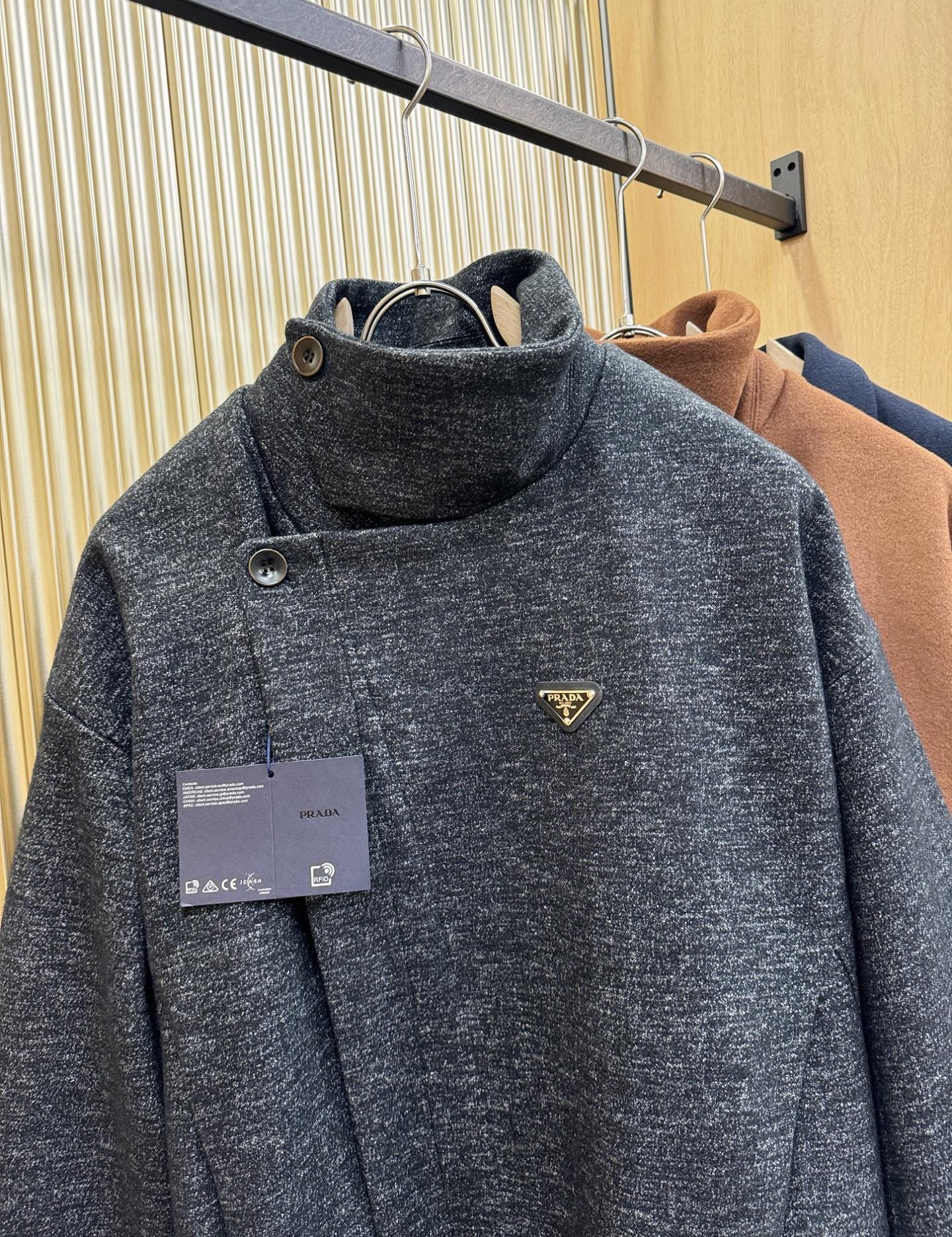 这款衣服是AAAAA 1:1 质量 (非常棒). 使用了和原版一模一样的材料. 商标部分也保持了和普拉达/Prada一样. 图片拍摄是实物衣服拍摄, 您所收到的实物保证和我们图片一模一样.