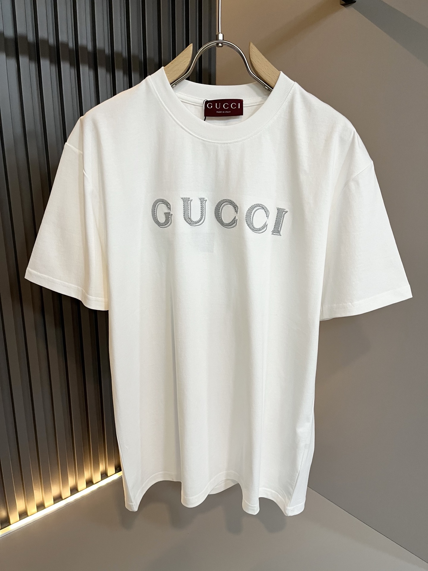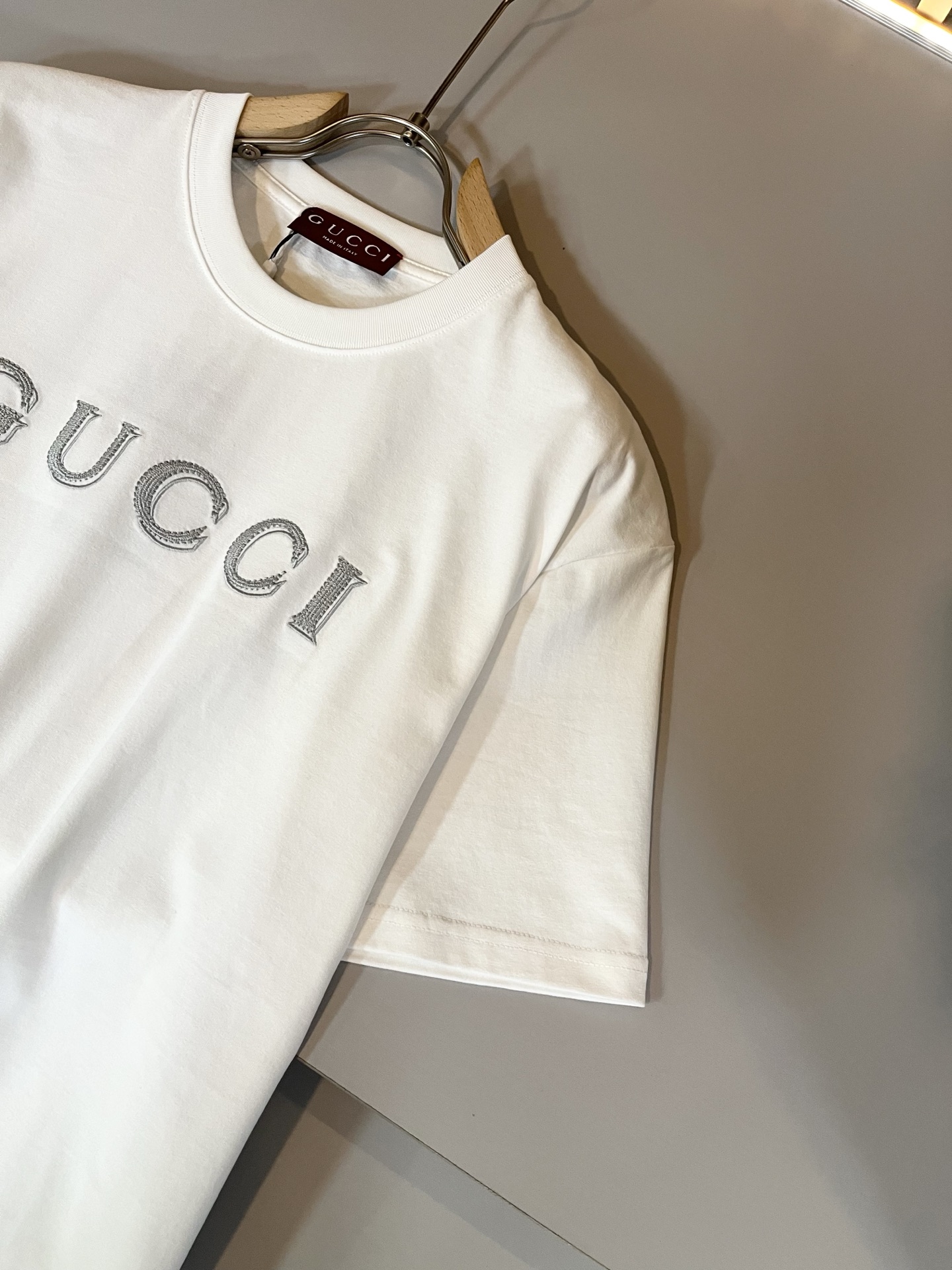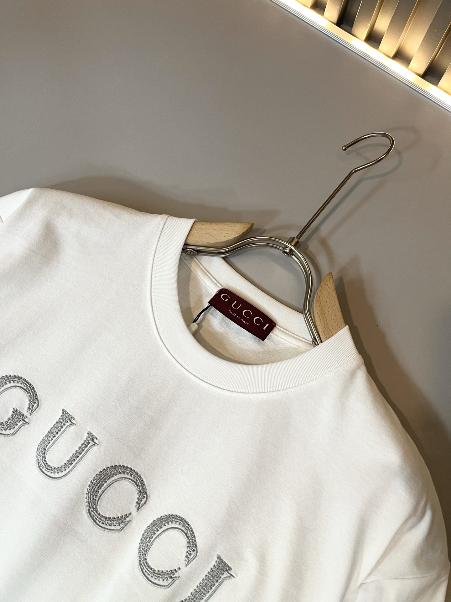 这款衣服是AAAAA 1:1 质量 (非常棒). 使用了和原版一模一样的材料. 商标部分也保持了和古奇/Gucci一样. 图片拍摄是实物衣服拍摄, 您所收到的实物保证和我们图片一模一样.