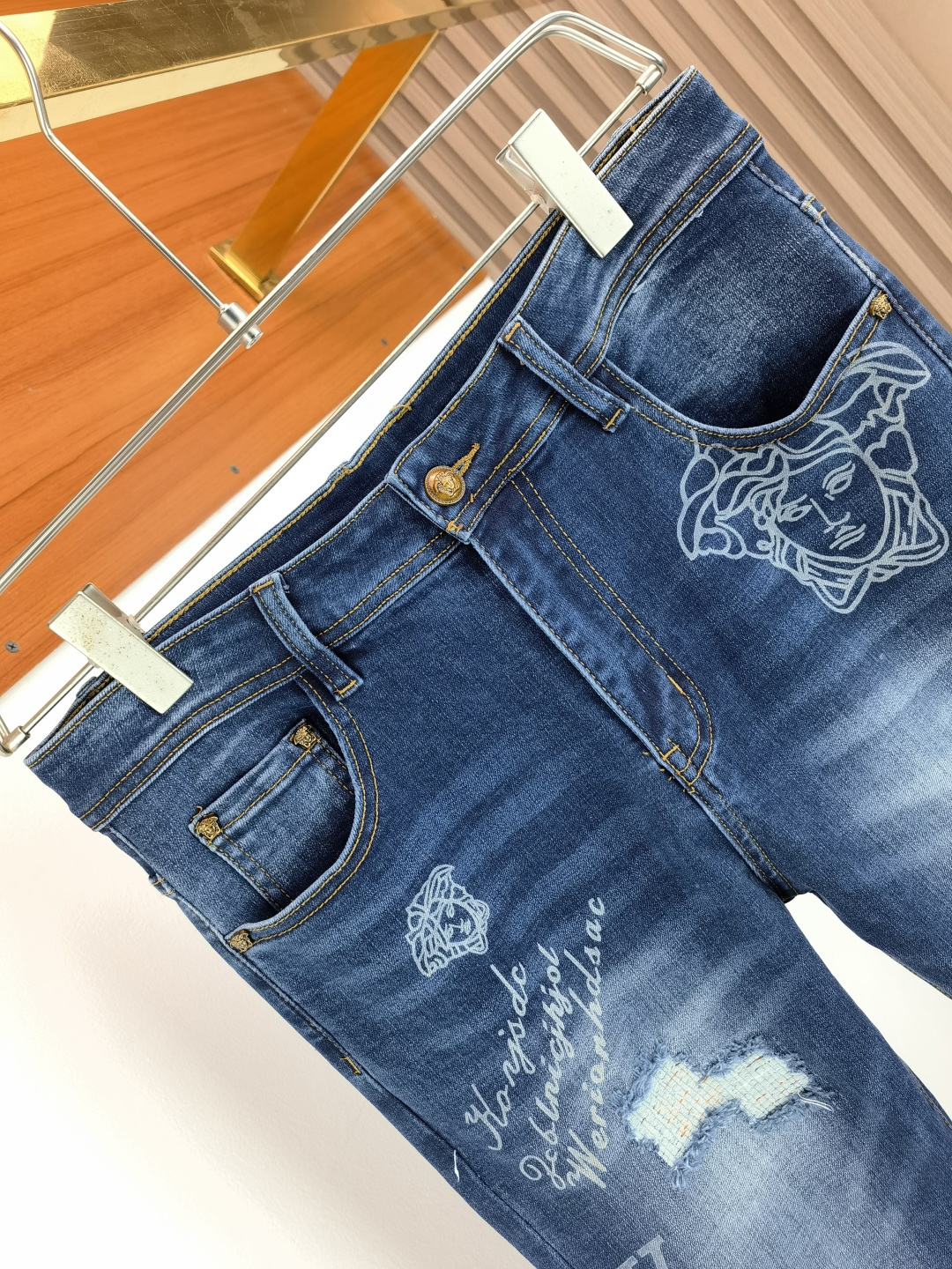 这款衣服是AAAAA 1:1 质量 (非常棒). 使用了和原版一模一样的材料. 商标部分也保持了和范思哲/Versace一样. 图片拍摄是实物衣服拍摄, 您所收到的实物保证和我们图片一模一样.