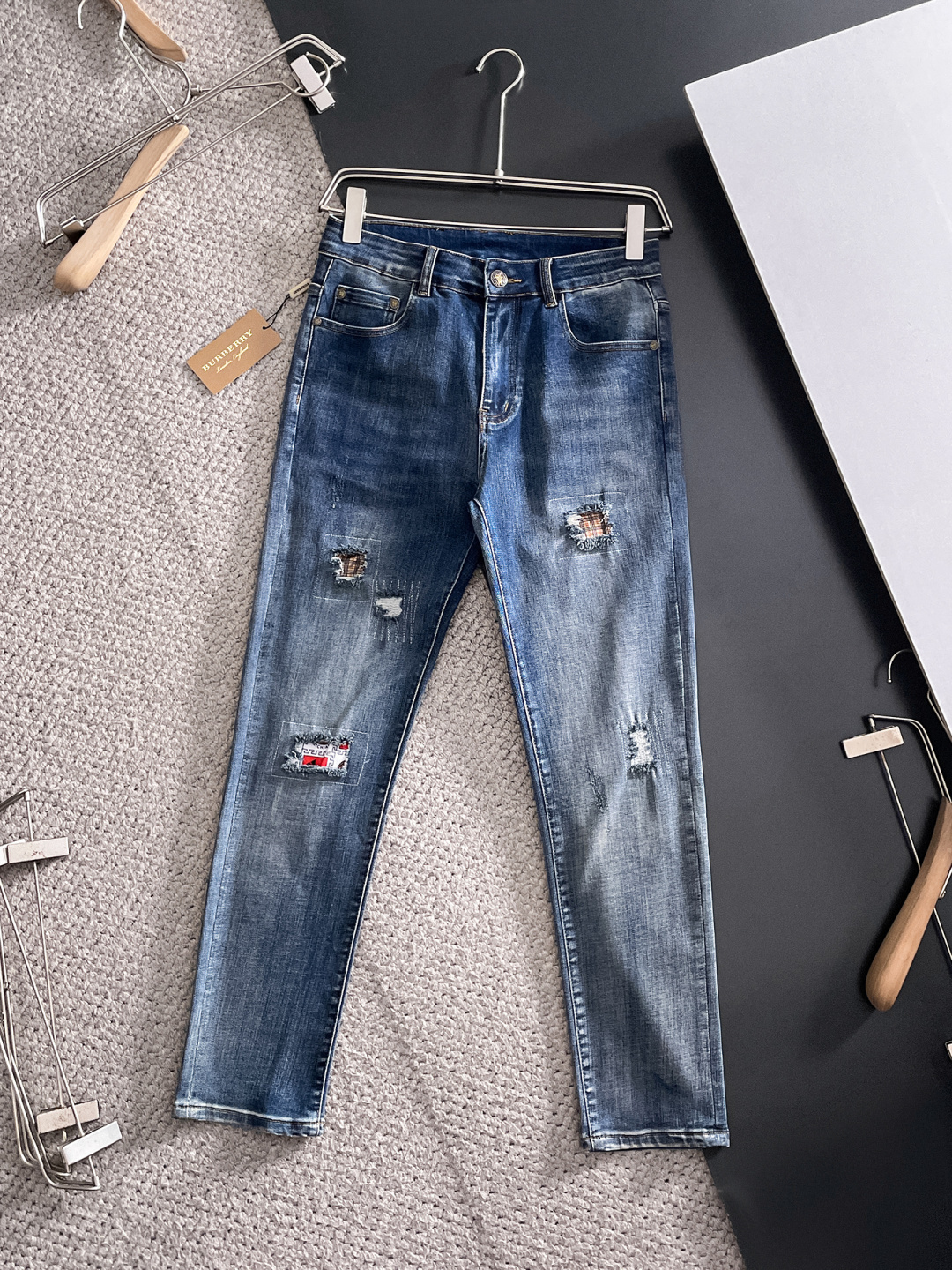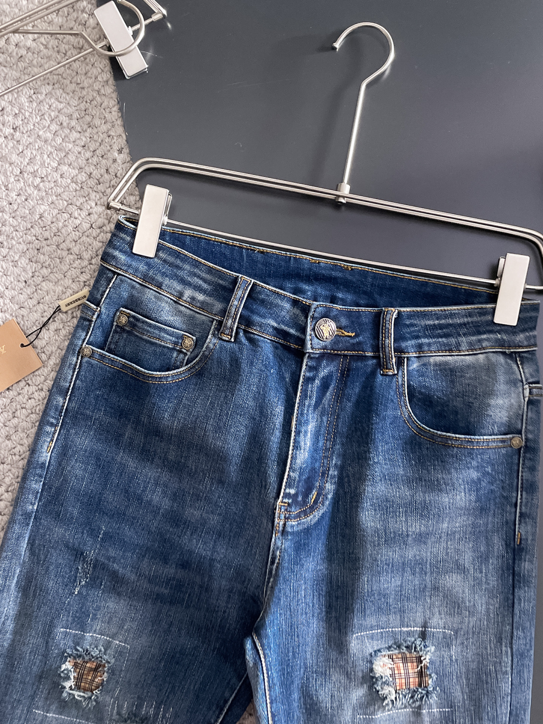 这款衣服是AAAAA 1:1 质量 (非常棒). 使用了和原版一模一样的材料. 商标部分也保持了和巴宝莉/Burberry一样. 图片拍摄是实物衣服拍摄, 您所收到的实物保证和我们图片一模一样.