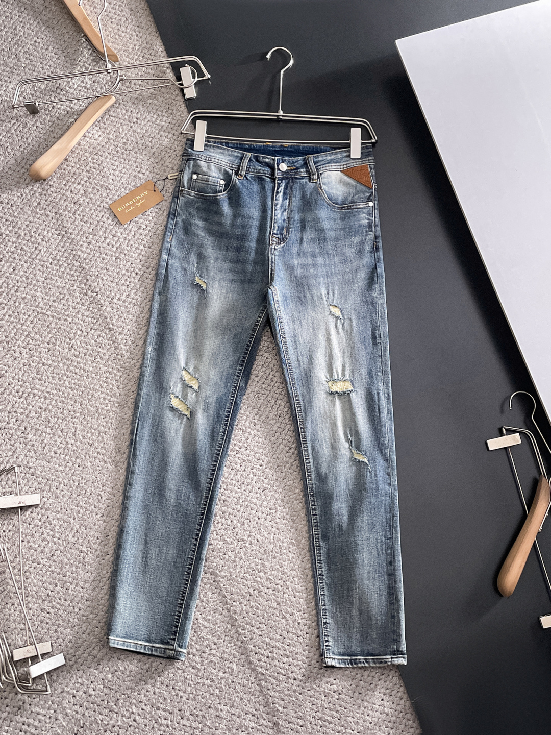 这款衣服是AAAAA 1:1 质量 (非常棒). 使用了和原版一模一样的材料. 商标部分也保持了和巴宝莉/Burberry一样. 图片拍摄是实物衣服拍摄, 您所收到的实物保证和我们图片一模一样.