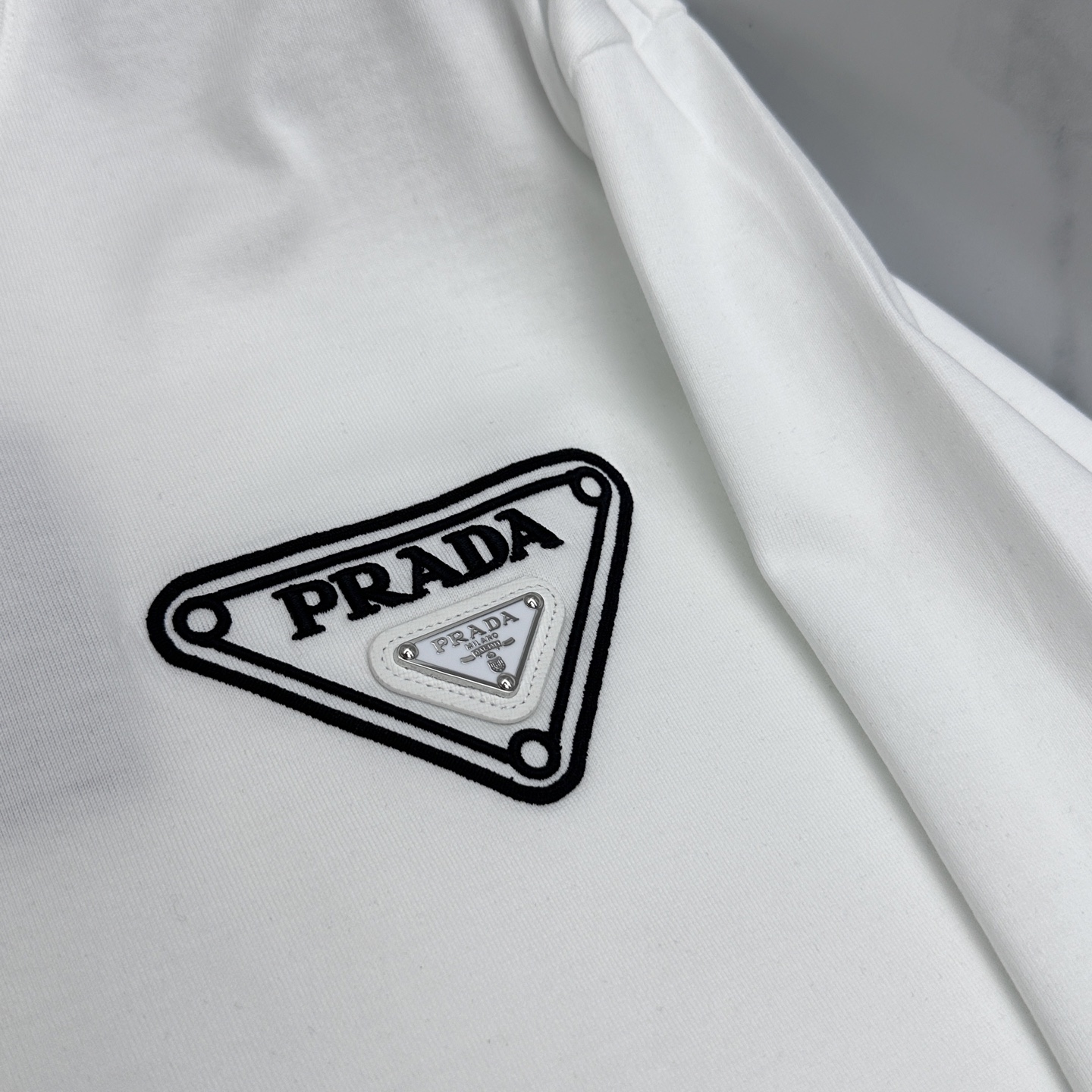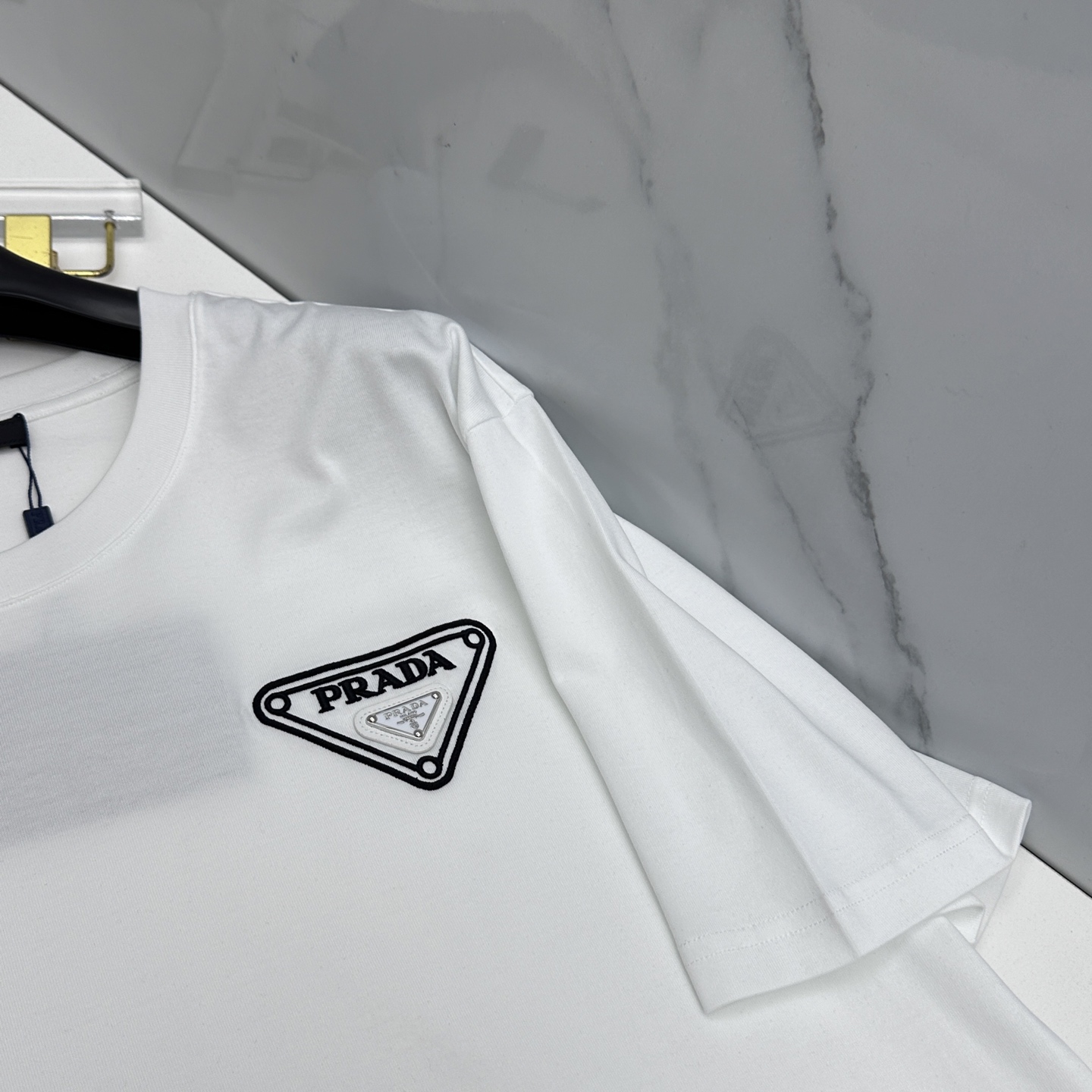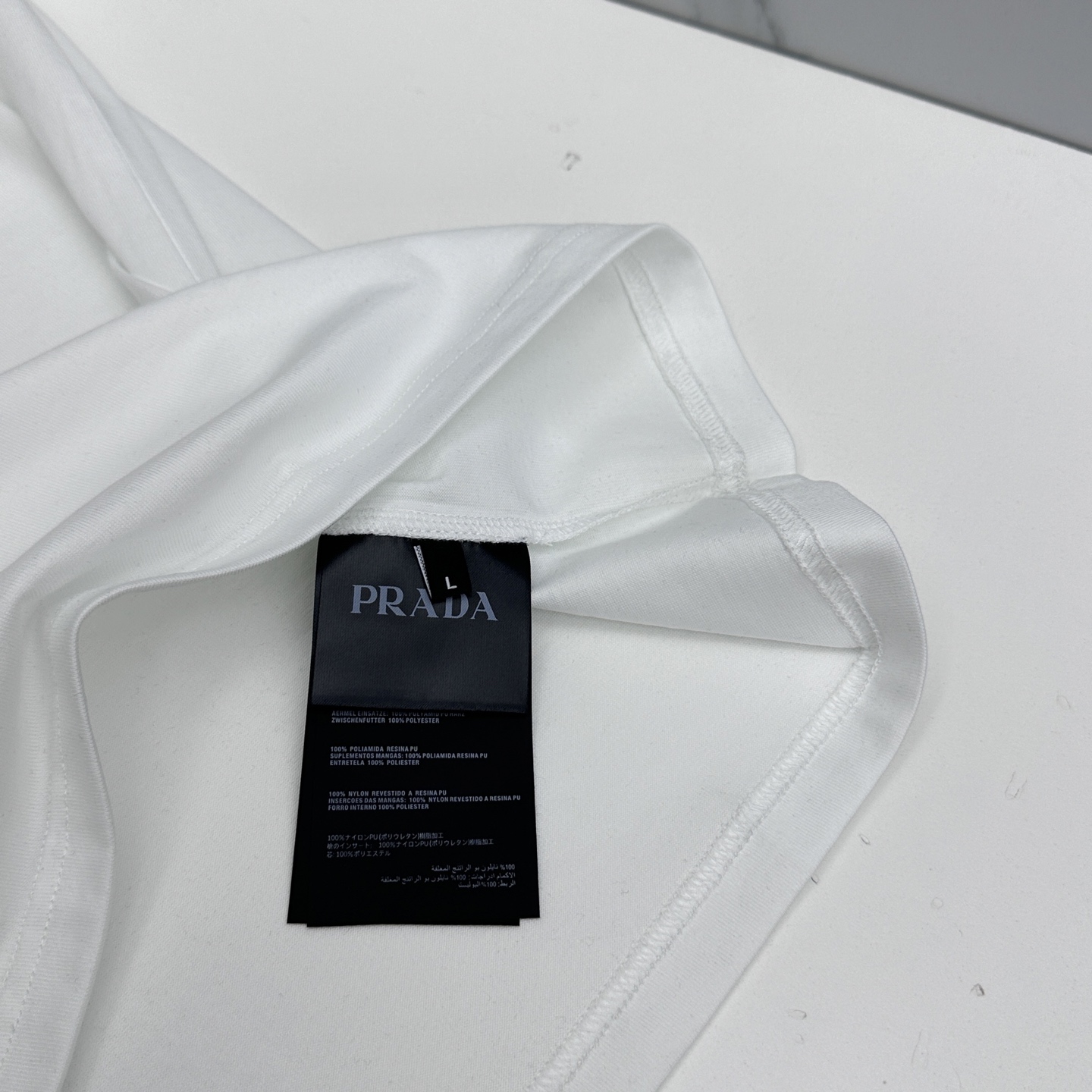 这款衣服是AAAAA 1:1 质量 (非常棒). 使用了和原版一模一样的材料. 商标部分也保持了和普拉达/Prada一样. 图片拍摄是实物衣服拍摄, 您所收到的实物保证和我们图片一模一样.