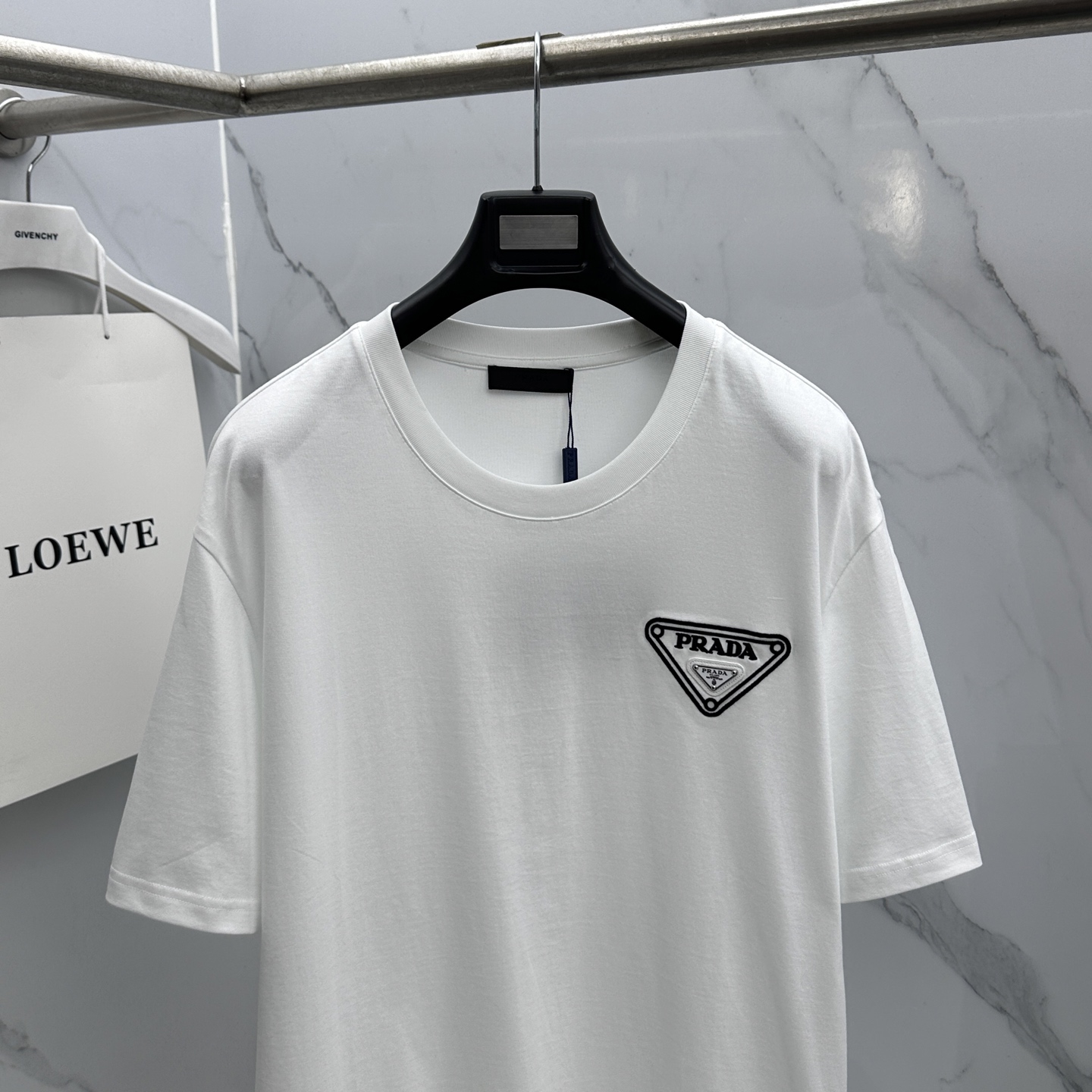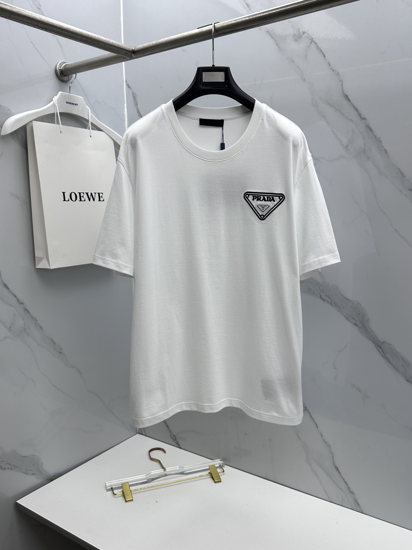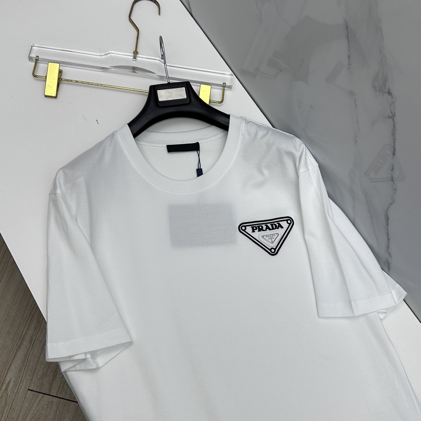 这款衣服是AAAAA 1:1 质量 (非常棒). 使用了和原版一模一样的材料. 商标部分也保持了和普拉达/Prada一样. 图片拍摄是实物衣服拍摄, 您所收到的实物保证和我们图片一模一样.